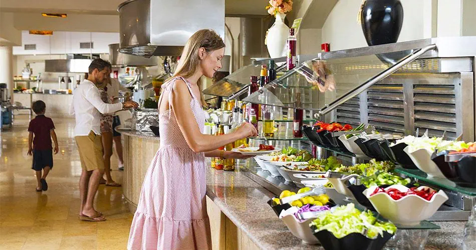 All Inclusive: Śniadanie, obiad, kolacja w formie bufetu w restauracji głównej Przekąski dostępne w określonych godzinach w barach wskazanych przez hotel Napoje bezalkoholowe i alkohole lokalnej produkcji w barach wskazanych przez hotel w godzinach ich otwarcia między 10:00-24:00 Możliwość skorzystania z restauracji a'la carte włoskiej lub orientalnej po wcześniejszej rezerwacji Soki ze świeżych owoców oraz napoje importowane są płatne dodatkowo