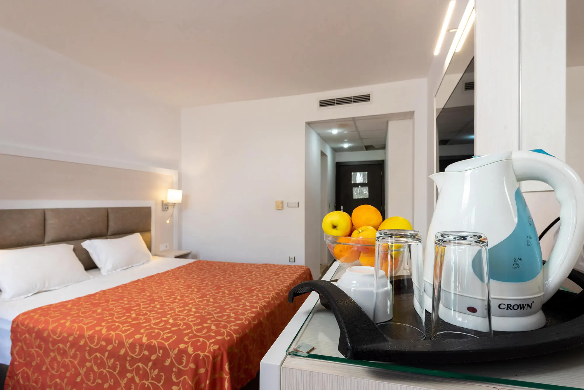 Dla max. 3 osób, Przestrzeń zewnętrzna: Balkon lub taras, Kanały telewizji: Angielski, prysznic, Powierzchnia pokoju: ok. 18 - 25 m2, Dostawka: łóżko standardowe, Rodzaj podłogi: wykładzina, Sprzątanie codziennie, 1 sypialnia, 1, Maksymalna liczba osób dorosłych: 3, Maksymalna liczba dzieci: 1, Widok niesprecyzowany , Liczba łazienek: 1, Liczba toalet: 1, Zestaw do parzenia kawy i herbaty (dodatkowo płatne), Klimatyzacja: Klimatyzacja centralna, Działa w godzinach: 00:00-00:00, przez cały rok