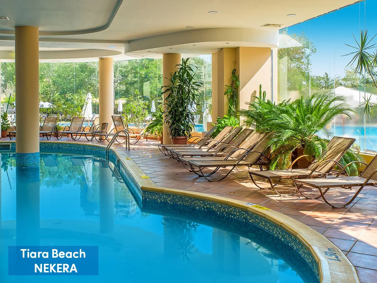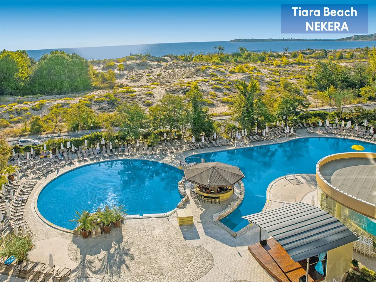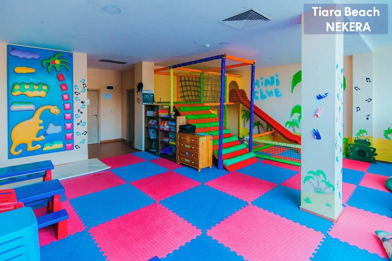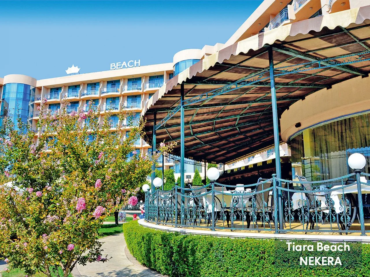 Hotel rodzinny, położony w spokojnej dzielnicy Słonecznego Brzegu, zaledwie 150 m od plaży. Oferuje komfortowe pokoje oraz bogatą ofertę rekreacyjną, w tym baseny, zjeżdżalnie, animacje i mini klub dla dzieci. Goście mogą korzystać z wyżywienia w systemie All Inclusive, obejmującego posiłki, przekąski i lokalne napoje alkoholowe oraz bezalkoholowe. Na terenie obiektu znajduje się spa, siłownia oraz szeroka oferta sportów wodnych. Dodatkowo, hotel oferuje bezpłatne Wi-Fi, a także płatne usługi takie jak masaże i wypożyczalnia sprzętu.