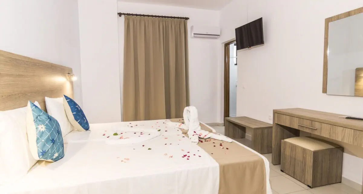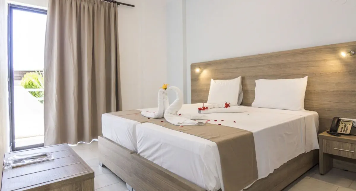 Dla max. 3 osób, Przestrzeń zewnętrzna: Balkon lub taras, Kanały telewizji: Angielski, prysznic, Powierzchnia pokoju: ok. 17 - 22 m2, Dostawka: łóżko standardowe, Rodzaj podłogi: płytki, Sprzątanie codziennie, 1 sypialnia, Maksymalna liczba osób dorosłych: 2, Maksymalna liczba dzieci: 2, Widok niesprecyzowany , Liczba łazienek: 1, Liczba toalet: 1, Klimatyzacja: Klimatyzacja indywidualna (dodatkowo płatne)