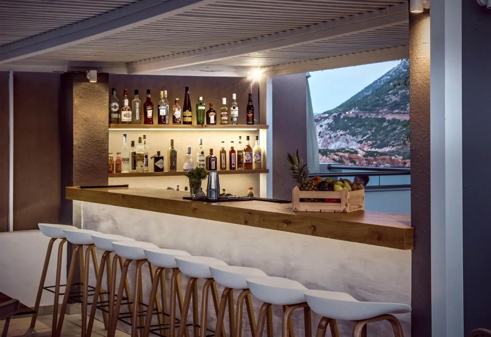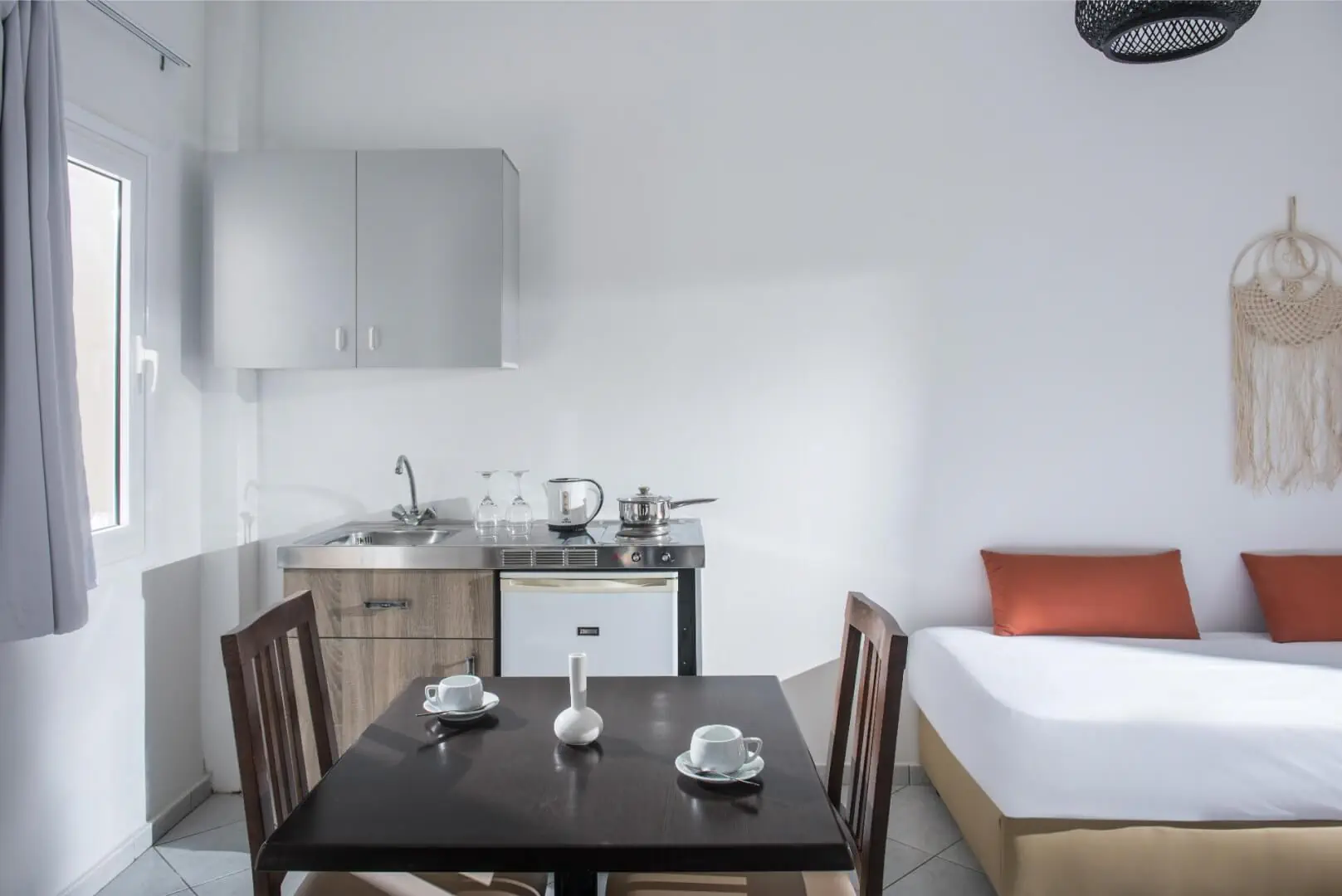 Dla max. 2 osób, Przestrzeń zewnętrzna: Balkon lub taras, Kanały telewizji: Angielski, Aneks kuchenny, prysznic, Powierzchnia pokoju: ok. 18 - 32 m2, Rodzaj podłogi: płytki, Sprzątanie codziennie, 1 sypialnia, Maksymalna liczba osób dorosłych: 2, Maksymalna liczba dzieci: 1, Widok na morze, Liczba łazienek: 1, Liczba toalet: 0, Klimatyzacja: Klimatyzacja indywidualna