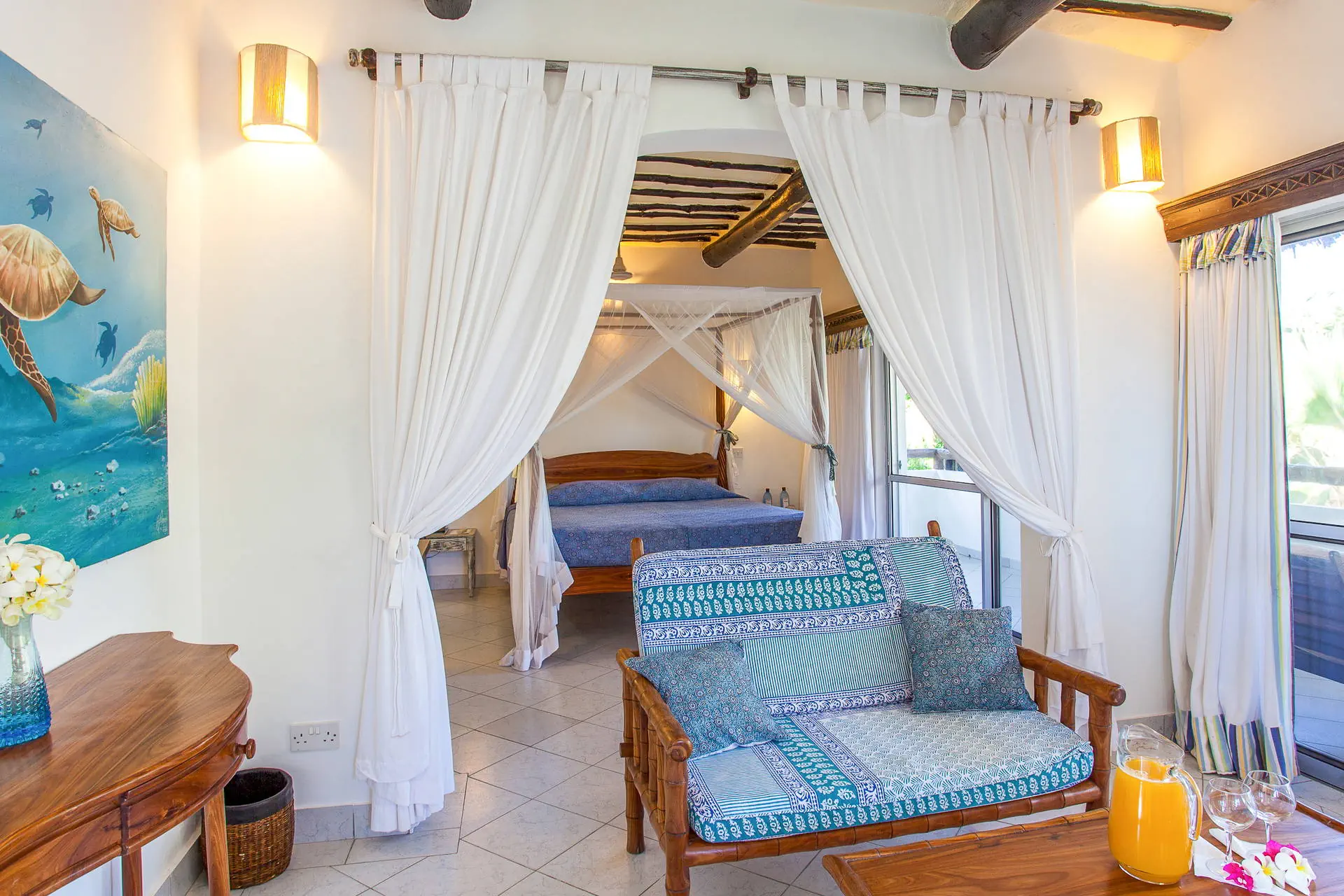 Do dyspozycji gości Recepcja z przestronnym lobby. 2 baseny: główny oraz dla dorosłych zlokalizowany blisko pokoi typu Lamu, brodzik dla dzieci.Restauracje: restauracja główna, pizzeria, restauracja a’la carte serwująca głównie owoce morza (płatna dodatkowo), 3 bary: przy basenie (10:00-00:30), przy Pizzerii (11:00-14:00 oraz 18:00-23:00) i na plaży (10:00-12:30).Pozostałe informacje: sala telewizyjna, sklep z pamiątkami, sala konferencyjna. Internet Bezpłatny Internet Wi-Fi na terenie całego hotelu. Kategoria lokalna ***+ Naszym zdaniem Komfortowy hotel, który przez lata działalności zaskarbił sobie sympatię i dobre opinie wśród Gości. Zlokalizowany nieopodal Parku Narodowego Marine, gdzie podczas snurkowania można podziwiać przepiękny świat podwodnej przyrody. Hotel polecamy głównie rodzinom z dziećmi ze względu na bogate animacje oraz przestronne pokoje. Plaża Plaża tuż przy hotelu. Prywatna, szeroka, z drobnym piaskiem. Leżaki, parasole oraz ręczniki dostępne bezpłatnie. Położenie Hotel znajduje się około 120 km od lotniska w Mombasie. Obiekt położony jest tuż przy Parku Narodowym Marine. Do miejscowości Malindi jest około 20 km. Hotel usytuowany jest na rozległym terenie, otoczony bujnym, tropikalnym ogrodem, w pobliżu niewielkiej miejscowości Watamu. Program sportowy i animacyjny Dla każdego: Hotel prowadzi bogaty dzienny i wieczorny program animacyjny: siatkówka plażowa, tenis stołowy, bilard, rzutki oraz sporty wodne tj. kajaki i rowery wodne. Dla dzieci: mini klub (4-12 lat) w języku angielskim. Za dodatkową opłatą: windsurfing, centrum nurkowe, snurkowanie (sprzęt bezpłatny) na terenie Parku Narodowego Marine (ok. 20 USD/os), przy hotelu bezpłatne. Strona www www.turtlebaykenya.com Wyżywienie Rodzaje wyżywienia i posiłki: All Inclusive: Śniadania, lunche i obiadokolacje w formie bogatego bufetu.Przekąski serwowane w ciągu dnia w godzinach 12:00-18:00 oraz wieczorem ok. 23:00. Napoje bezalkoholowe i lokalne napoje alkoholowe dostępne w godzinach otwarcia barów (10:00-00:30).