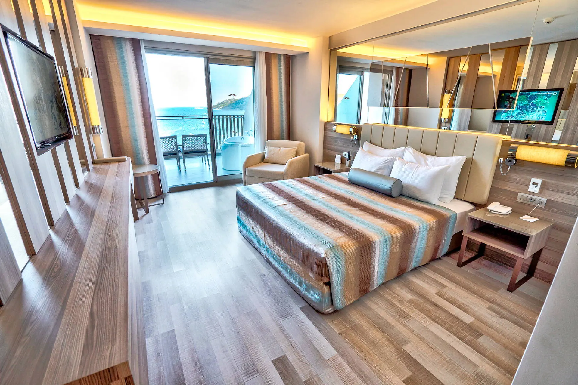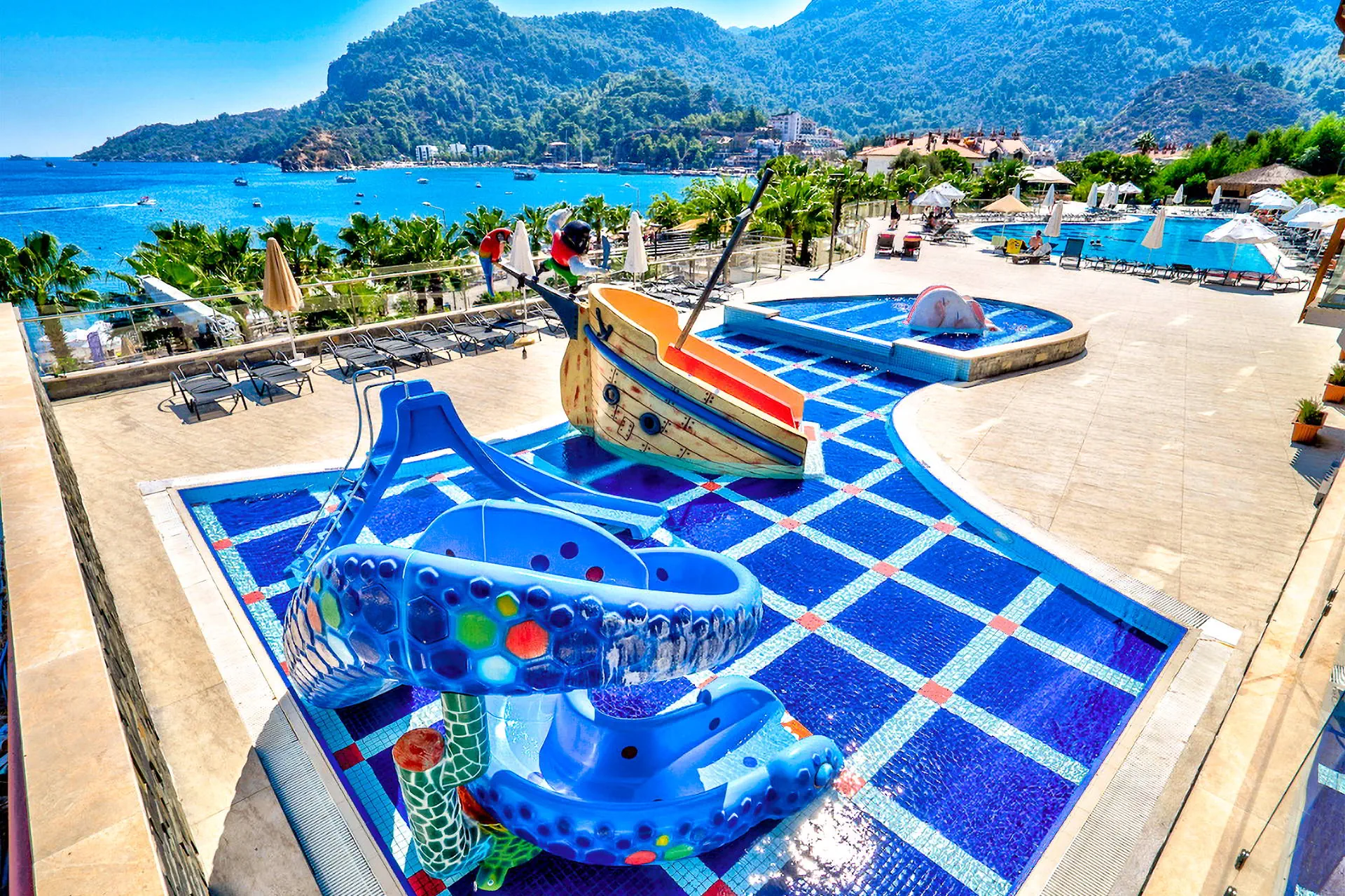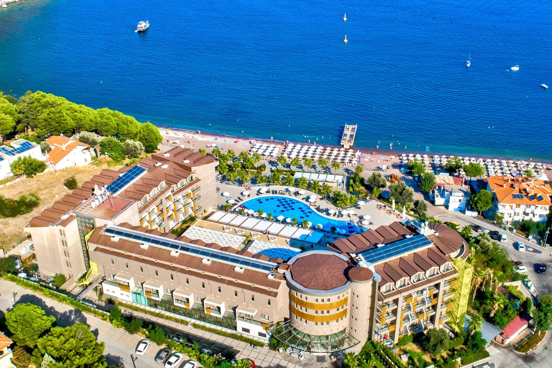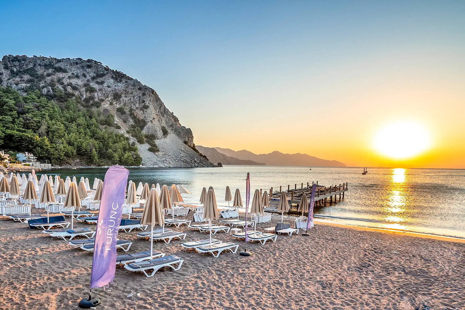 Położenie Obiekt położony jest zaledwie około 100 m od centrum Turunc. Do centrum Marmaris jest około 20 km. Do lotniska w Dalamanie jest około 120 km, a transfer trwa około 2,5 godziny z przesiadką do busów w Marmaris. Plaża Plaża tuż przy hotelu. Piaszczysto-żwirowa, prywatna. Leżaki i parasole bezpłatne, ręczniki plażowe dostępne za depozytem ok. 20 TL (ok. 10 EUR). Do dyspozycji gości Recepcja 24h, 3 windy. 1 basen ze słodką wodą, 1 basen kryty, brodzik dla dzieci ze zjeżdżalniami, bezpłatne leżaki i parasole przy basenach, ręczniki kąpielowe dostępne po uiszczeniu depozytu. Atrakcje dla dzieci: brodzik dla dzieci ze zjeżdżalniami. Restauracje: restauracja główna, turecka restauracja a’la carte (płatna dodatkowo, czynna od początku czerwca), 5 barów: przy basenie, Lotus bar, lobby bar, Panorama bar i bar w centrum Spa. Pozostałe informacje: sejf, za dopłatą: sala konferencyjna, pralnia, lekarz, market. Wyżywienie Rodzaje wyżywienia i posiłki: Ultra All Inclusive: Śniadanie: 07:00 - 10:00. Późne śniadanie: 10:00 - 11:00. Lunch: 12:00 - 14:00. Obiadokolacja: 19:00 - 21:00; posiłki w formie bufetu.Przekąski w ciągu dnia: 14:00 - 16:00. Lody: 16:00 - 17:00. Nocna przekąska (zupa): 24:00 - 02:00. Bary: Lobby bar: lokalne napoje bezalkoholowe dostępne 24 h oraz lokalne napoje alkoholowe dostępne do 02:00. Pozostałe informacje: Pozostałe importowane napoje bezalkoholowe i alkoholowe dodatkowo płatne. Program sportowy i animacyjny Dla każdego: tenis stołowy, rzutki, wieczorne show, muzyka na żywo, boccia, pilates, sauna, łaźnia turecka, sauna parowa, grota solna (bezpłatne od 09:00 do 13:00). Dla dzieci: mini klub (4-12 lat), plac zabaw. Za dodatkową opłatą: bilard, masaże i zabiegi w centrum SPA, sporty wodne na plaży. Internet Bezpłatny Internet Wi-Fi dostępny na terenie całego hotelu. Kategoria lokalna ***** Naszym zdaniem Ekskluzywny hotel dla wymagających Klientów. Niewątpliwym atutem hotelu jest bliskość centrum miasta oraz lokalnych atrakcji. Bogate oferta All Inclusive, przestronne pokoje i wyśmienita obsługa sprawi, że poczują się tu Państwo jak na prawdziwych tureckich wakacjach. Strona www www.turunchotels.com.