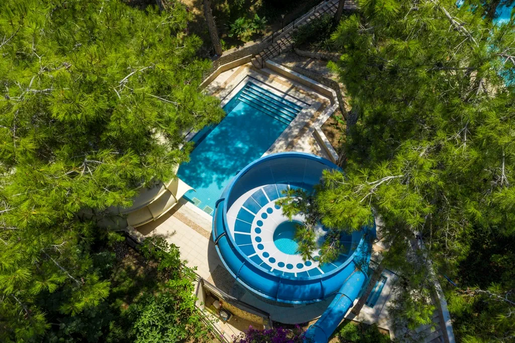 Wysokiej klasy hotel, usytuowany na wzgórzu, pośród malowniczego, sosnowego lasu oferuje zapierające dech w piersiach widoki. Rozbudowana infrastruktura, liczne baseny i aquapark z 12 zjeżdżalniami sprawiają, że czas tutaj płynie pod znakiem wakacyjnej frajdy i radości. Dopełnieniem całości jest różnorodna i smaczna kuchnia serwowana w restauracjach i barach.