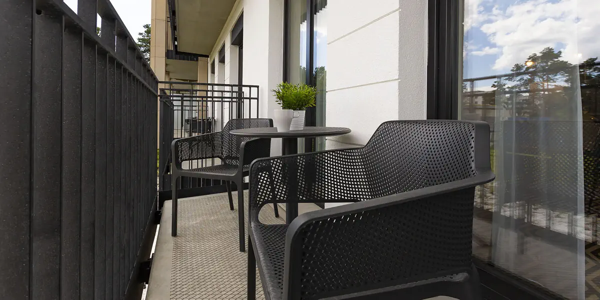 Klimatyzowany 2-pokojowy apartament (37-42 m2): 1 sypialnia, salon z rozkładaną sofą, kącikiem TV, w pełni wyposażonym aneksem kuchennym, stołem jadalnym, łazienka z przestronnym prysznicem, balkon