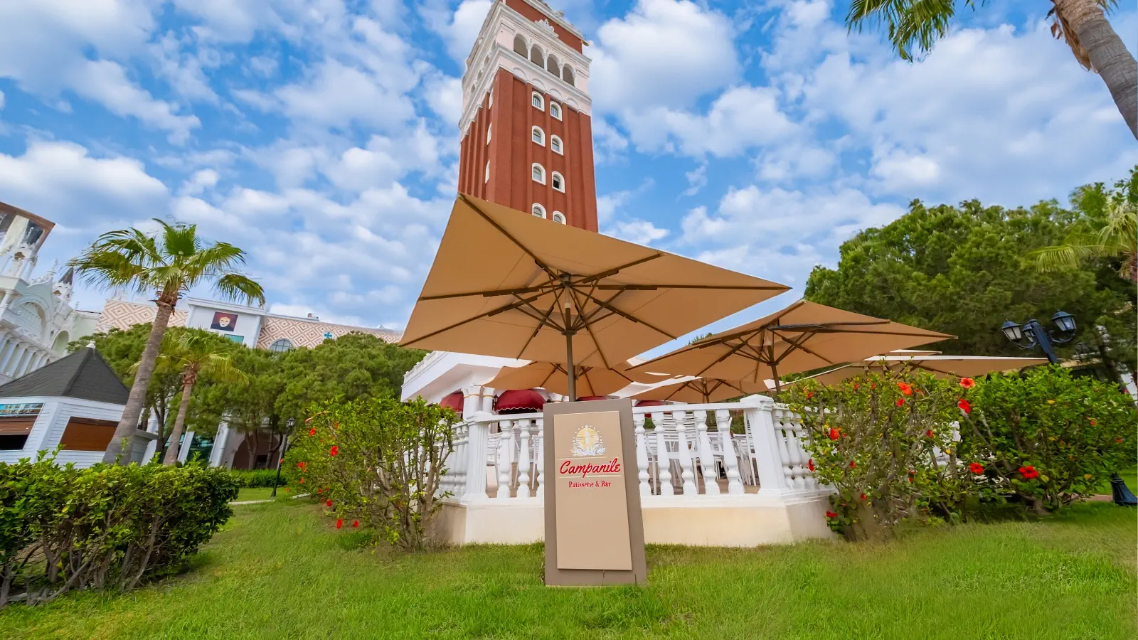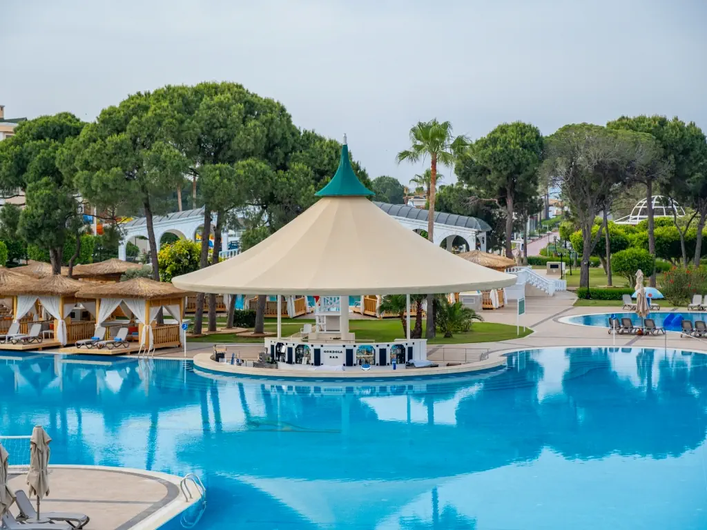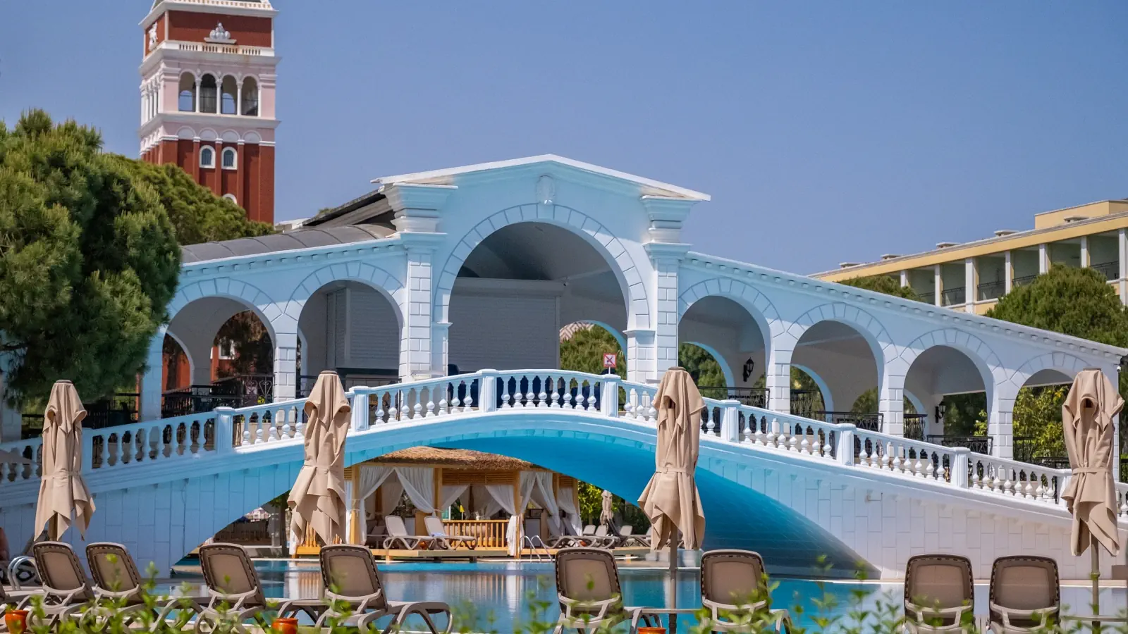 Hotel zaprojektowany w stylu weneckim. Oferuje stylowe, przytulne pokoje, ogromny basen, zadbany ogród i kompleks zjeżdżalni wodnych dla dorosłych i dzieci. Obiekt usytuowany jest przy szerokiej plaży z pomostem i romantycznymi pawilonami. Hotel polecany na rodzinne wakacje pełne frajdy, zabawy w wodzie, atrakcji sportowych i pięknego tureckiego słońca.
