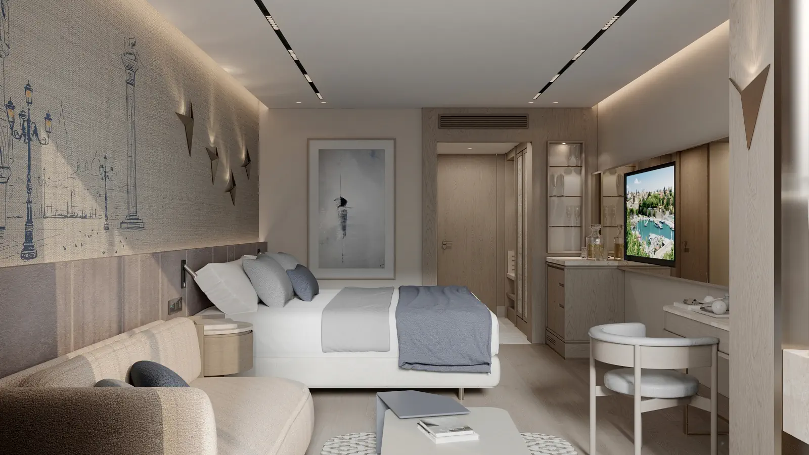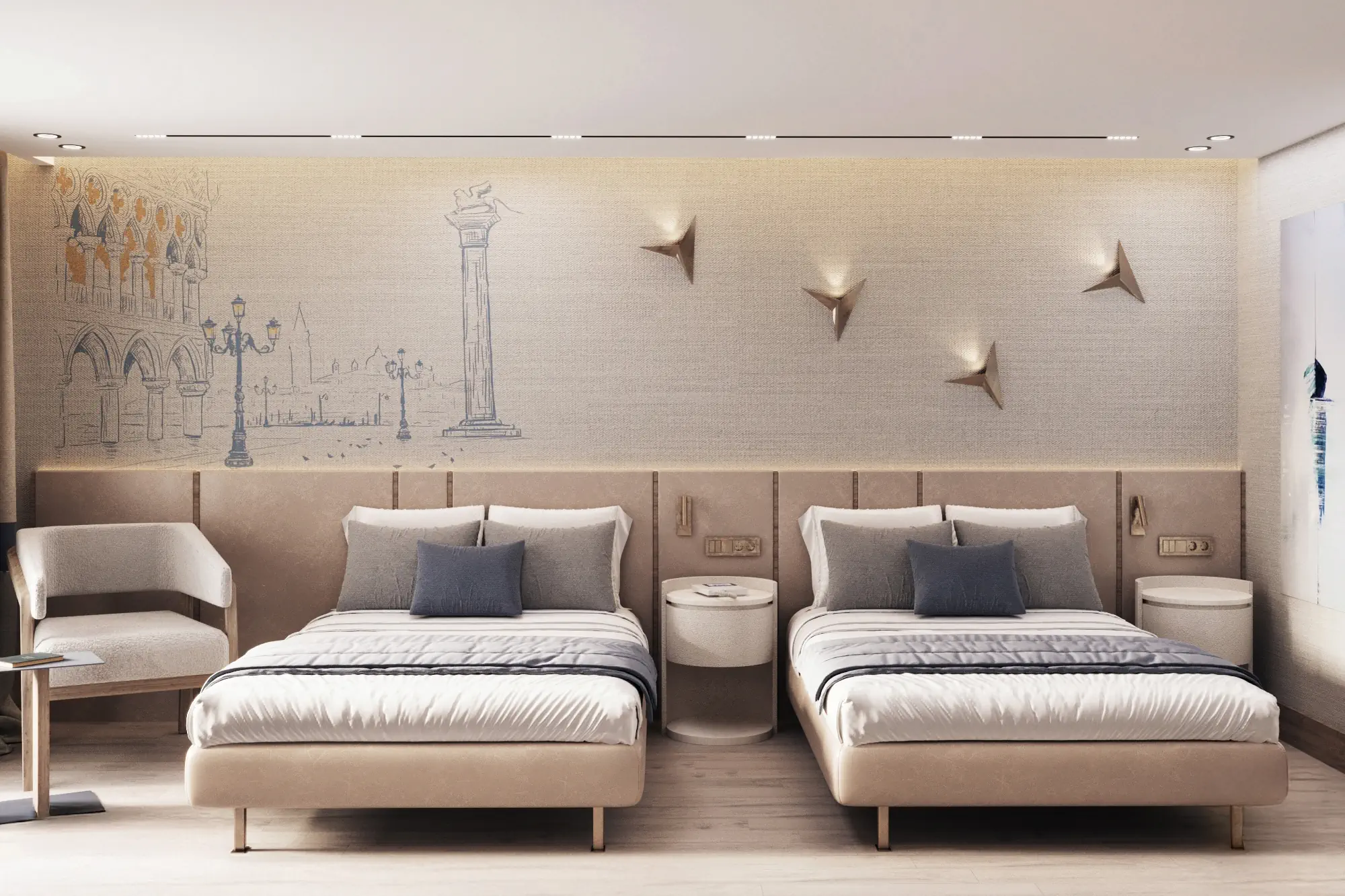 Dla max. 4 osób, Przestrzeń zewnętrzna: Balkon, Kanały telewizji: Angielski, Telefon w pokoju, prysznic, Powierzchnia pokoju: ok. 28 - 30 m2, Dostawka: łóżko rozkładane, Rodzaj podłogi: laminat, Sprzątanie codziennie, 1 sypialnia, Maksymalna liczba osób dorosłych: 3, Maksymalna liczba dzieci: 2, Widok na krajobraz, Liczba łazienek: 1, Liczba toalet: 1, Zestaw do parzenia kawy i herbaty, Klimatyzacja: Klimatyzacja centralna, Działa w godzinach: 24hKwiecień, Maj, Czerwiec, Lipiec, Sierpień, Wrzesień, Październik