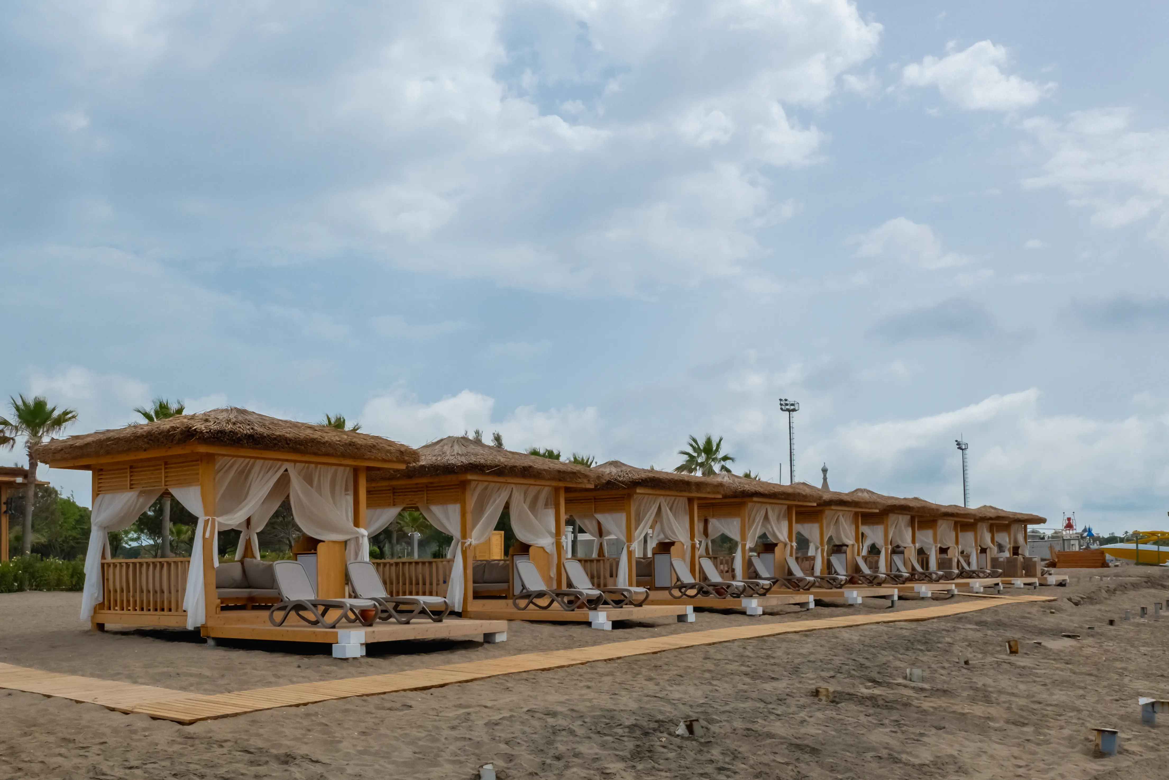 Prywatna, Piaszczysta, Piaszczyste zejście do morza, długość plaży: 216 m, pomost na plaży, Parasole - bezpłatnie, Leżaki - bezpłatnie, Ręczniki - bezpłatnie, Pawilony na plaży - płatne, Beach Bar - bezpłatnie, Prysznic
