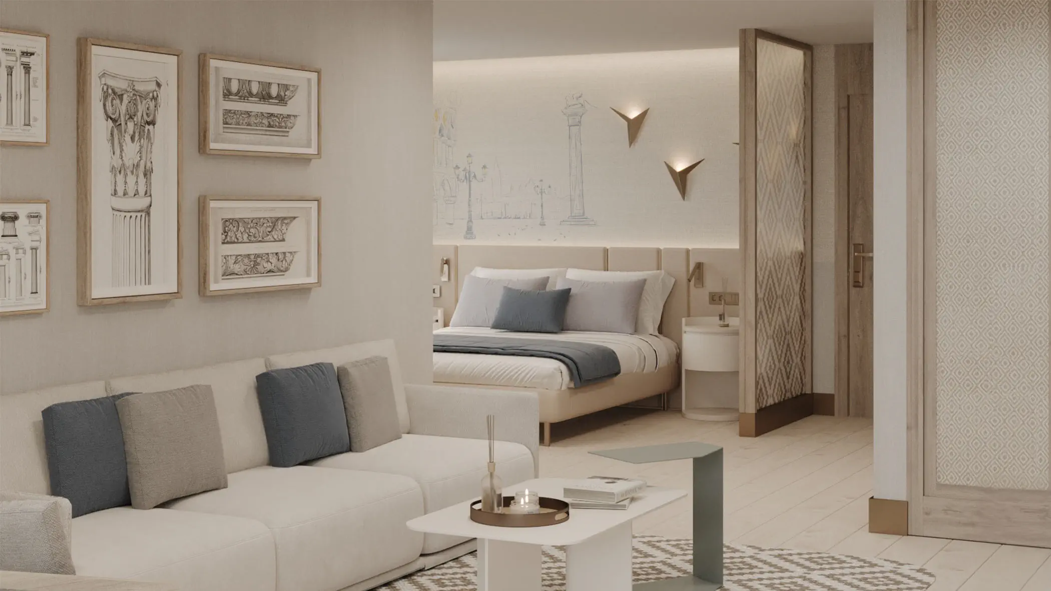 Dla max. 4 osób, Przestrzeń zewnętrzna: Balkon i taras, Kanały telewizji: Angielski, Telefon w pokoju, prysznic, jacuzzi, Powierzchnia pokoju: ok. 55 m2, Dostawka: sofa, Rodzaj podłogi: laminat, Sprzątanie codziennie, Salon, 1 sypialnia, Drzwi łączące między pokojami, Maksymalna liczba osób dorosłych: 4, Maksymalna liczba dzieci: 2, Widok na krajobraz, Liczba łazienek: 2, Liczba toalet: 2, Zestaw do parzenia kawy i herbaty, Klimatyzacja: Klimatyzacja centralna, Działa w godzinach: 24hKwiecień, Maj, Czerwiec, Lipiec, Sierpień, Wrzesień, Październik