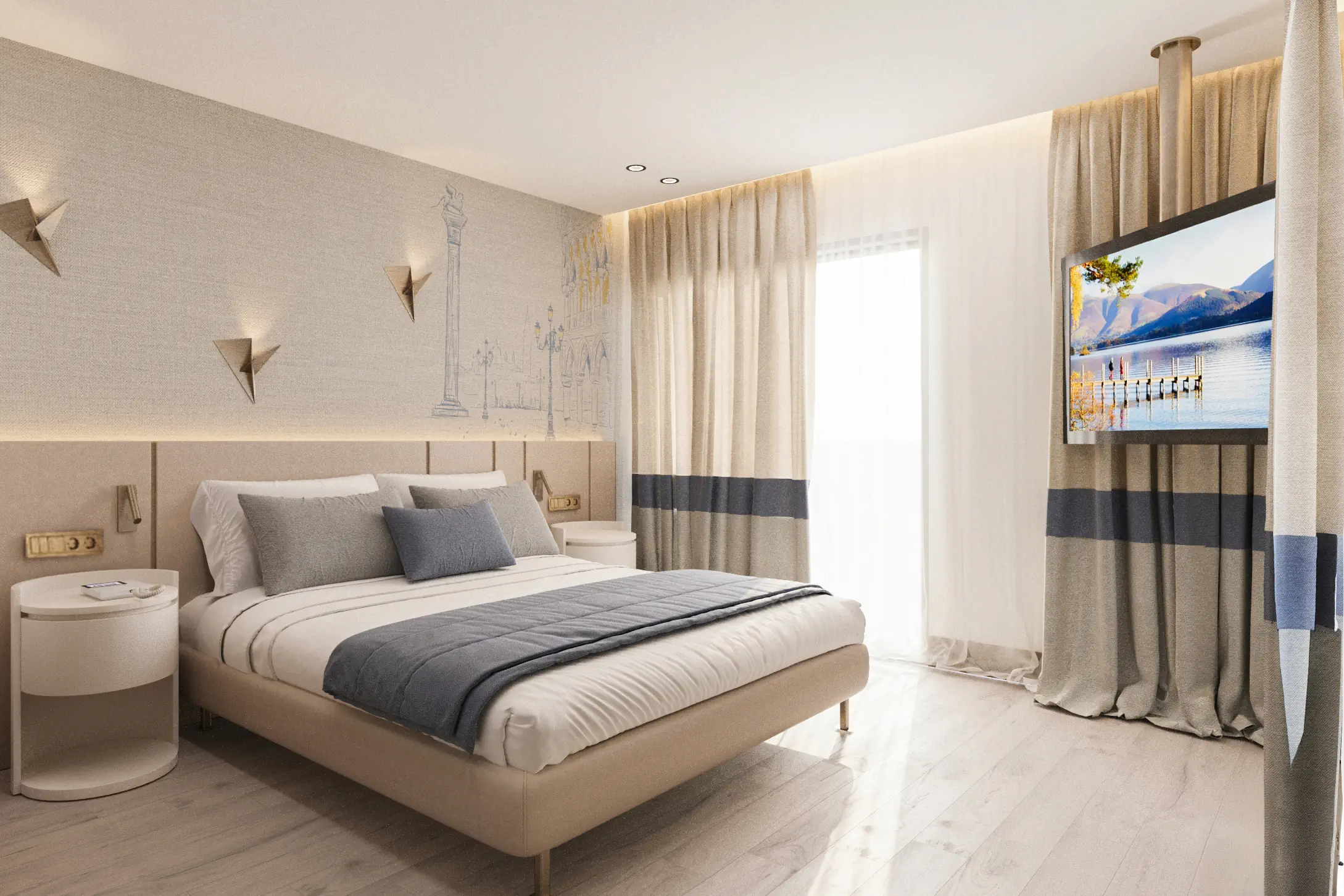 Dla max. 2 osób, Kanały telewizji: Angielski, Telefon w pokoju, prysznic, jacuzzi, Powierzchnia pokoju: ok. 21 m2, Rodzaj podłogi: laminat, Sprzątanie codziennie, 1 sypialnia, Maksymalna liczba osób dorosłych: 2, Maksymalna liczba dzieci: , Widok na basen i morze, Liczba łazienek: 1, Liczba toalet: 1, Zestaw do parzenia kawy i herbaty, Klimatyzacja: Klimatyzacja centralna, Działa w godzinach: 24hKwiecień, Maj, Czerwiec, Lipiec, Sierpień, Wrzesień, Październik