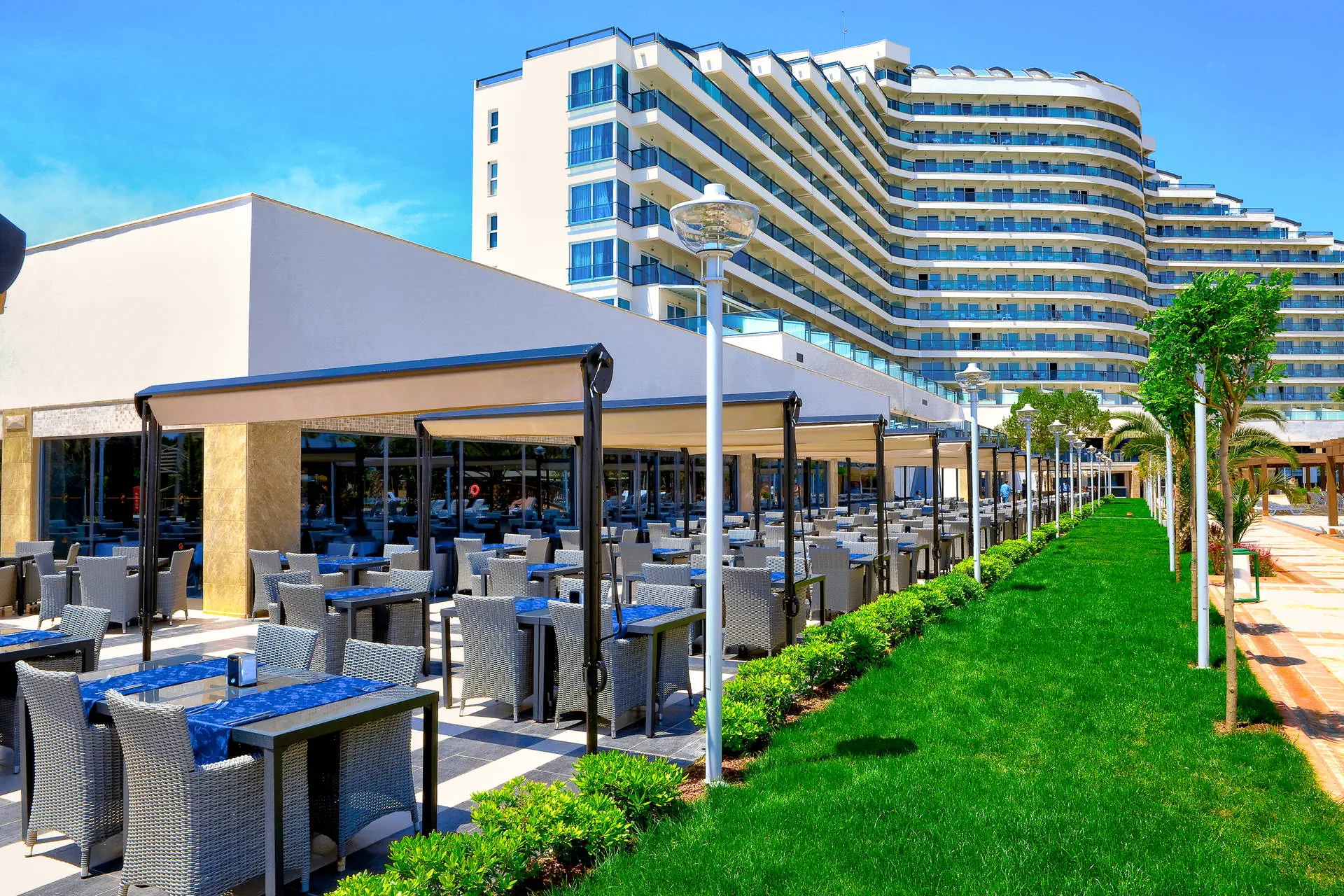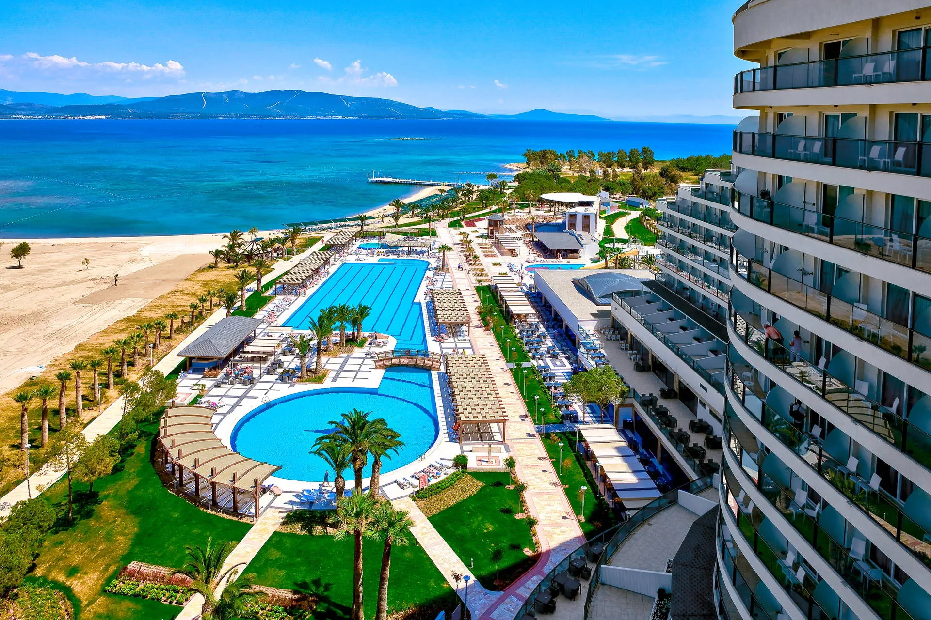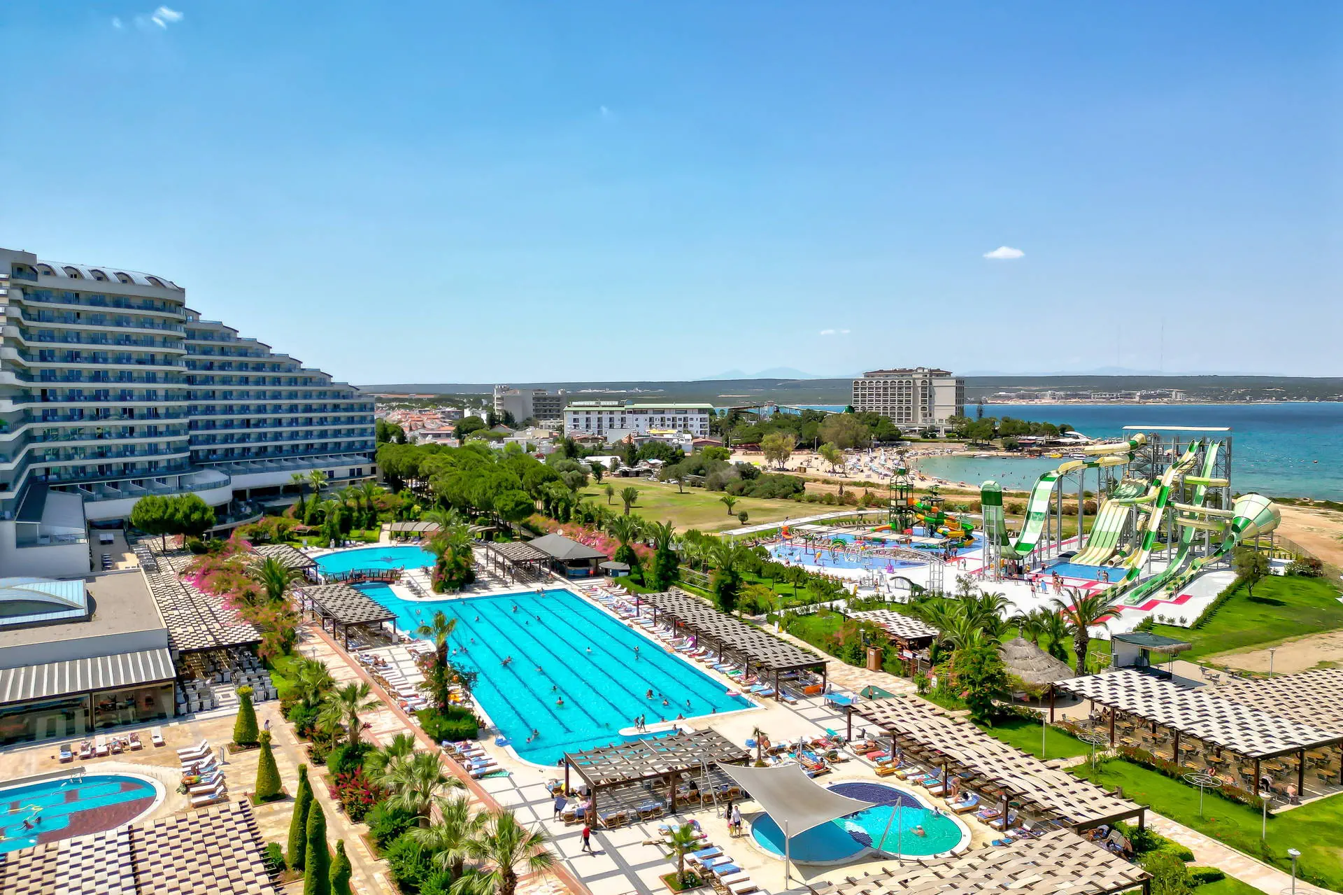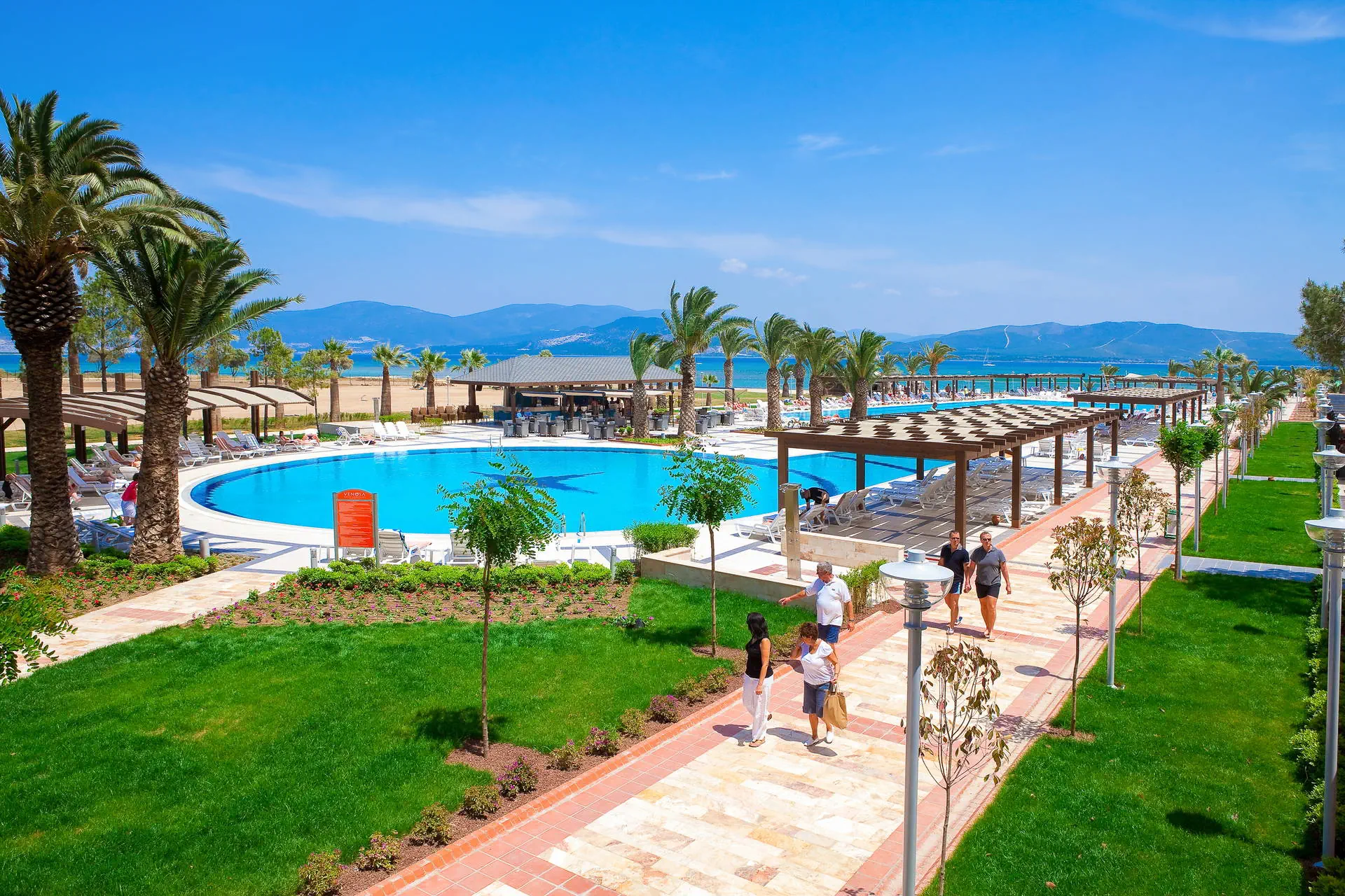 Położenie Hotel położony jest w miejscowości Yesilkent, która była dawniej wioską rybacką, a obecnie jest popularnym ośrodkiem turystycznym. Obiekt znajduje się około 5 km od centrum Altinkum. Dogodny dojazd do centrum miasta Altinkum zapewnia komunikacja lokalna, z busami kursującymi co około 15 minut w sezonie letnim, oraz taksówki. Od miasta Didim, znanego ze starożytnych ruin świątyni Apollina, dzieli go około 5 km. Odległość od lotniska Bodrum-Milas wynosi około 70 km. Plaża Plaża bezpośrednio przy hotelu. Szeroka, piaszczysto-żwirowa, z łagodnym zejściem do morza. Bezpłatne leżaki i parasole. Do dyspozycji gości Recepcja 24h, przestronne lobby. 1 basen ze zjeżdżalniami, 1 basen olimpijski, Aquapark ze strefą dla dzieci i dorosłych, 1 basen kryty, brodzik dla dzieci, bezpłatne leżaki, parasole i ręczniki kąpielowe przy basenie. Atrakcje dla dzieci: Aquapark ze strefą dla dzieci. Atrakcje dla dorosłych: dyskoteka. Restauracje: restauracja główna, 5 restauracji a'la carte, 5 barów: lobby, pool, snack, bar z tureckimi naleśnikami, bar przy plaży. Pozostałe informacje: za opłatą: lekarz, fryzjer, sklepiki z pamiątkami. Wyżywienie Rodzaje wyżywienia i posiłki: Ultra All Inclusive: Śniadanie, późne śniadanie, lunch, obiadokolacja w restauracji głównej w formie bogatego bufetu. Przekąski w ciągu dnia. Lody dla dzieci. Kawa/herbata. Nocna przekąska. Tureckie słodkości. Restauracje: Raz na pobyt możliwość skorzystania z restauracji a’la carte (przy min. 7-dniowym pobycie, wymagana rezerwacja). Dania dla dzieci oraz wysokie krzesła dostępne w restauracji. Bary: Lobby bar: lokalne napoje bezalkoholowe i alkoholowe oraz niektóre importowane napoje alkoholowe dostępne 24 h. Za opłatą: pozostałe importowane napoje bezalkoholowe i alkoholowe, napoje butelkowane i w puszkach, wybrane napoje w dyskotece oraz świeżo wyciskane soki. Program sportowy i animacyjny Dla każdego: aerobik, aqua aerobik, fitness, koszykówka, siatkówka, tenis stołowy, strzelanie z łuku, wieczorne show, dyskoteka, bogato wyposażone SPA (sauna i łaźnia turecka bezpłatnie). Dla dzieci: mini klub hotelowy, plac zabaw. Za dodatkową opłatą: tenis ziemny (oświetlenie oraz wypożyczenie sprzętu), masaże i zabiegi w centrum SPA, sporty wodne na plaży. Internet Bezpłatny Internet Wi-Fi w lobby oraz w pokojach. Kategoria lokalna ***** Naszym zdaniem Bardzo elegancki, przyjazny rodzinom z dziećmi hotel. Posiada wiele udogodnień dla najmłodszych oraz bogatą infrastrukturą sportowo-rekreacyjną. Położony przy pięknej plaży, doskonały na spokojny, rodzinny wypoczynek. Hotel słynie z wyśmienitej kuchni. Sprawdzony i doceniony przez naszych Klientów w poprzednich sezonach, chętnie wybierany ponownie. Strona www www.venosa.com.tr