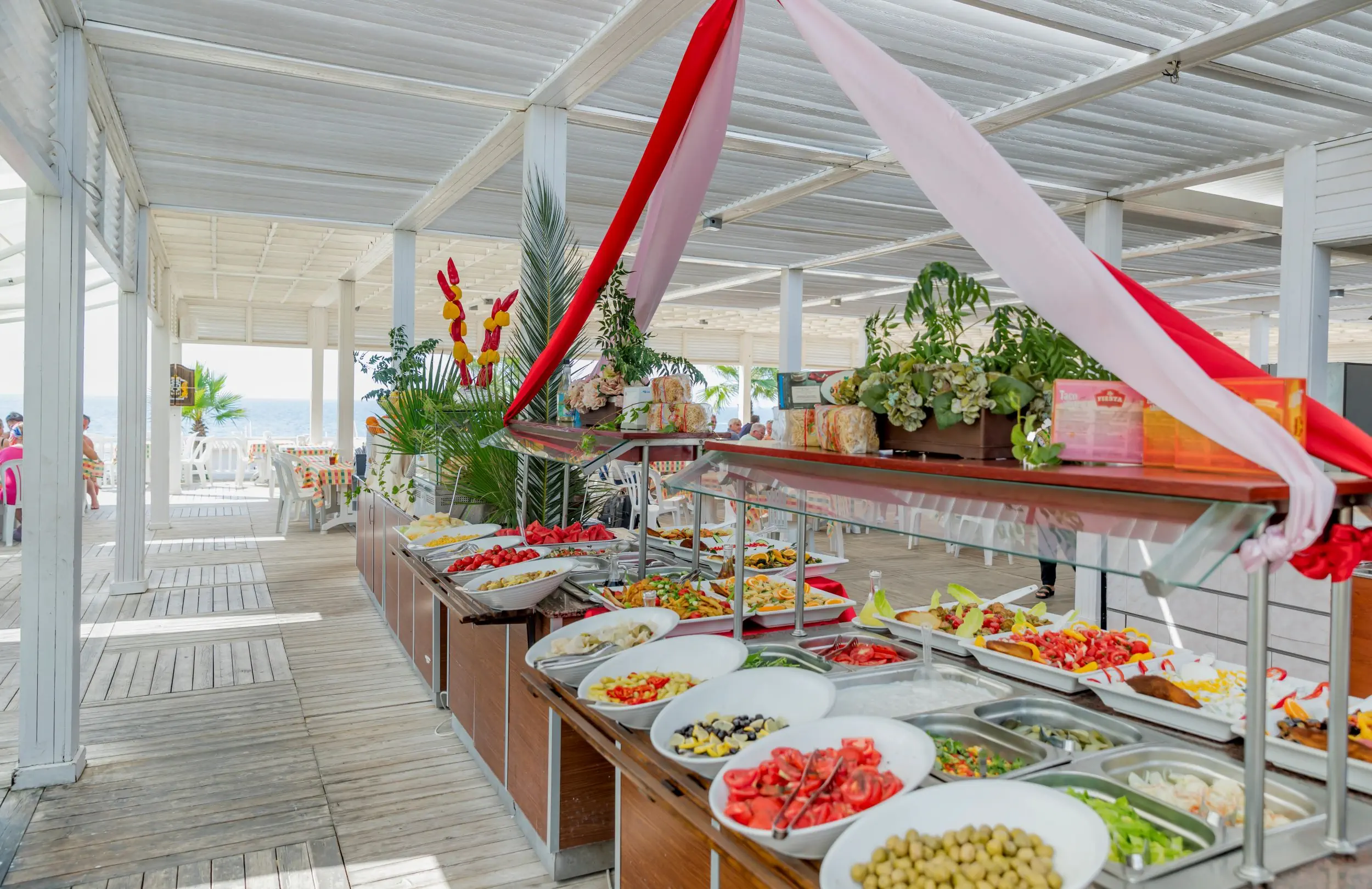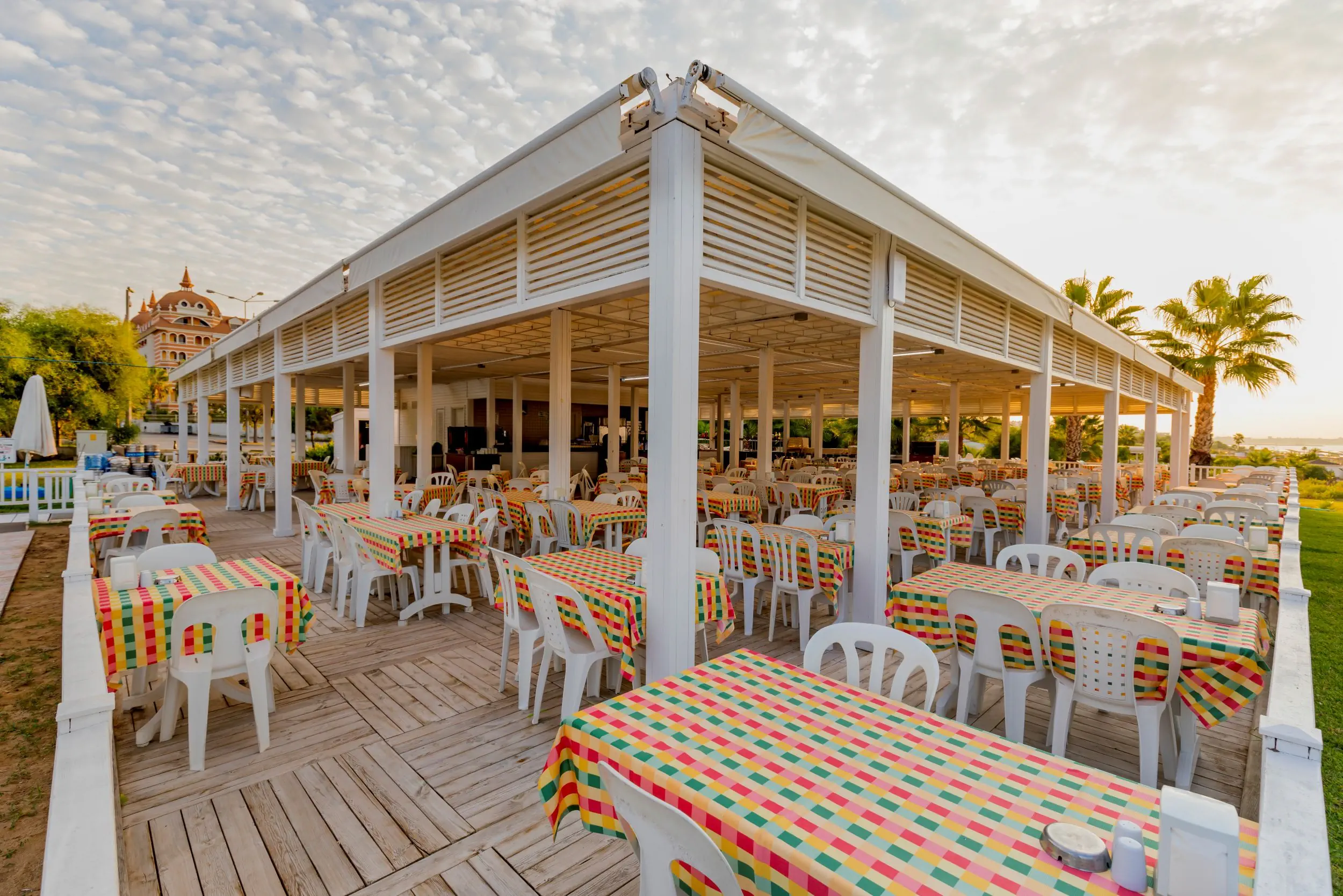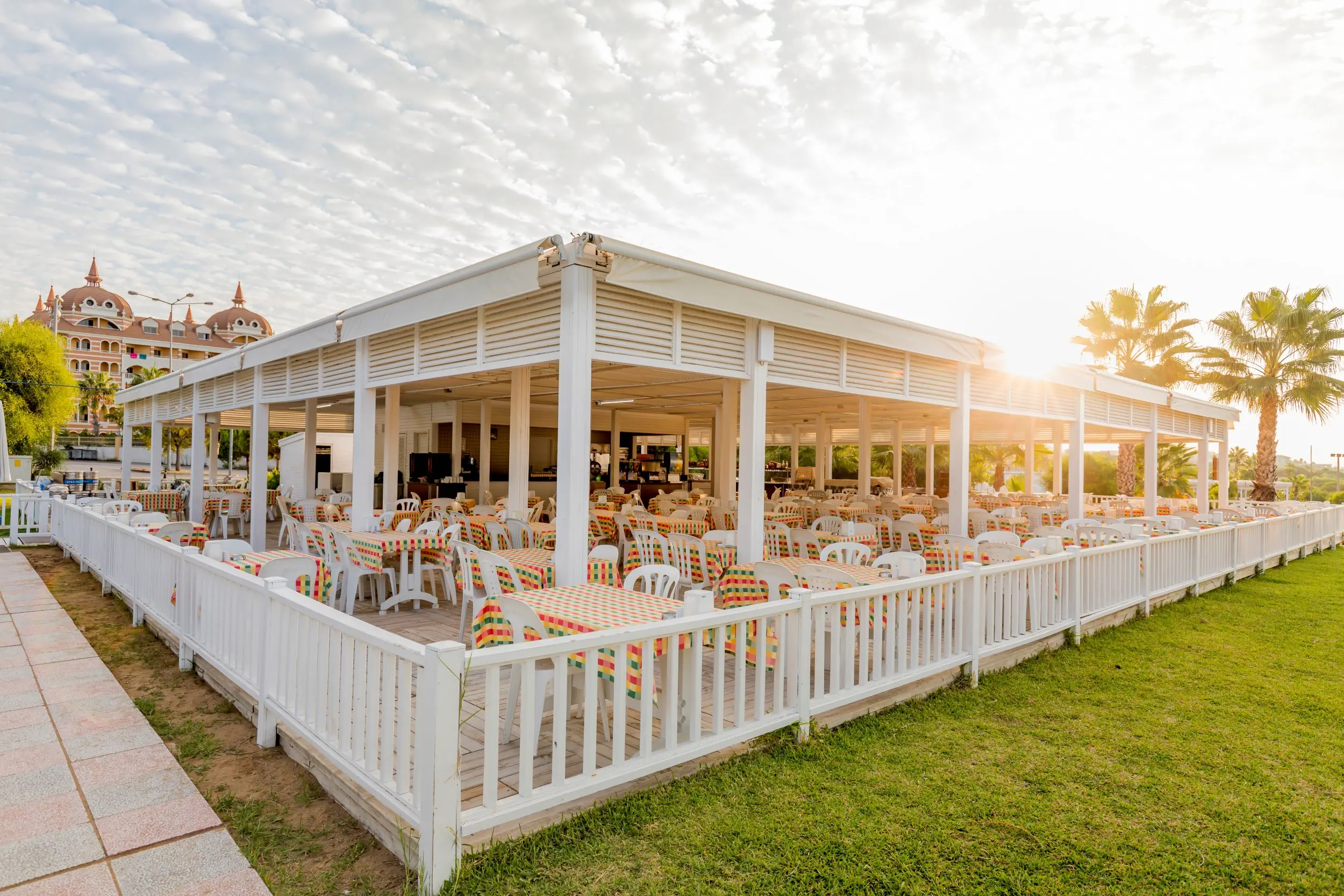 Śniadanie (07:00 - 10:00) - Troya Restaurant, stół szwedzki, Późne śniadanie (10:00 - 10:30) - Troya Restaurant, stół szwedzki, Obiad (12:30 - 14:00) - Troya Restaurant, stół szwedzki, Przekąski (12:30 - 15:00) - Snack Restaurant, stół szwedzki, Przekąski (12:30 - 14:30) - Beach restaurant, stół szwedzki, Podwieczorek (16:00 - 17:00) - Snack Restaurant, stół szwedzki, Kolacja (19:00 - 21:00) - Troya Restaurant, stół szwedzki, Późna kolacja (23:30 - 23:59) - Troya Restaurant, określone menu, Ottoman A la Carte (19:00 - 21:00) (19:00 - 21:00), raz w tygodniu, Kuchnia: Turecka, Wymagana rezerwacja: Tak, Mexica A la Carte (19:00 - 21:00) (19:00 - 21:00), raz w tygodniu, Kuchnia: Meksykańska, Wymagana rezerwacja: Tak, Lobby Bar (24h), Napoje: alkohole lokalne, wybrane alkohole importowane, napoje bezalkoholowe (24h), Pool Bar (10:00 - 23:59), Napoje: alkohole lokalne, wybrane alkohole importowane, napoje bezalkoholowe (10:00 - 23:59), Snack Bar (10:00 - 23:59), Napoje: alkohole lokalne, wybrane alkohole importowane, napoje bezalkoholowe (10:00 - 23:59), Beach Bar (10:00 - 17:30), Napoje: alkohole lokalne, wybrane alkohole importowane, napoje bezalkoholowe (10:00 - 17:30), Disco Bar (23:59 - 01:59), Napoje: alkohole lokalne, wybrane alkohole importowane, napoje bezalkoholowe (23:59 - 01:59), napoje bezalkoholowe, alkohole lokalne, wybrane alkohole importowane, lody, pakiety dla nowożeńców, pakiety urodzinowe (na życzenie), cukiernia, Minibar w pokoju