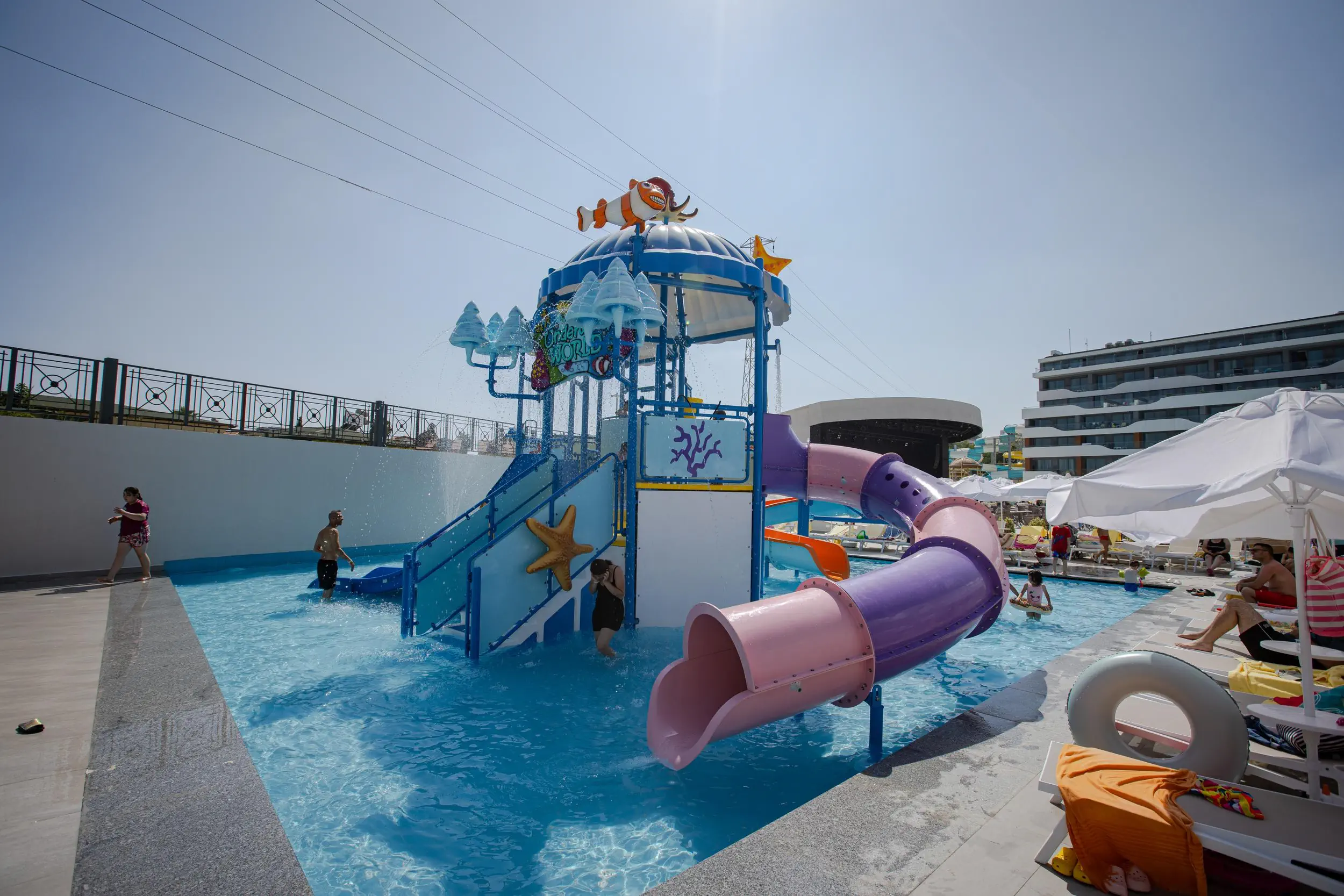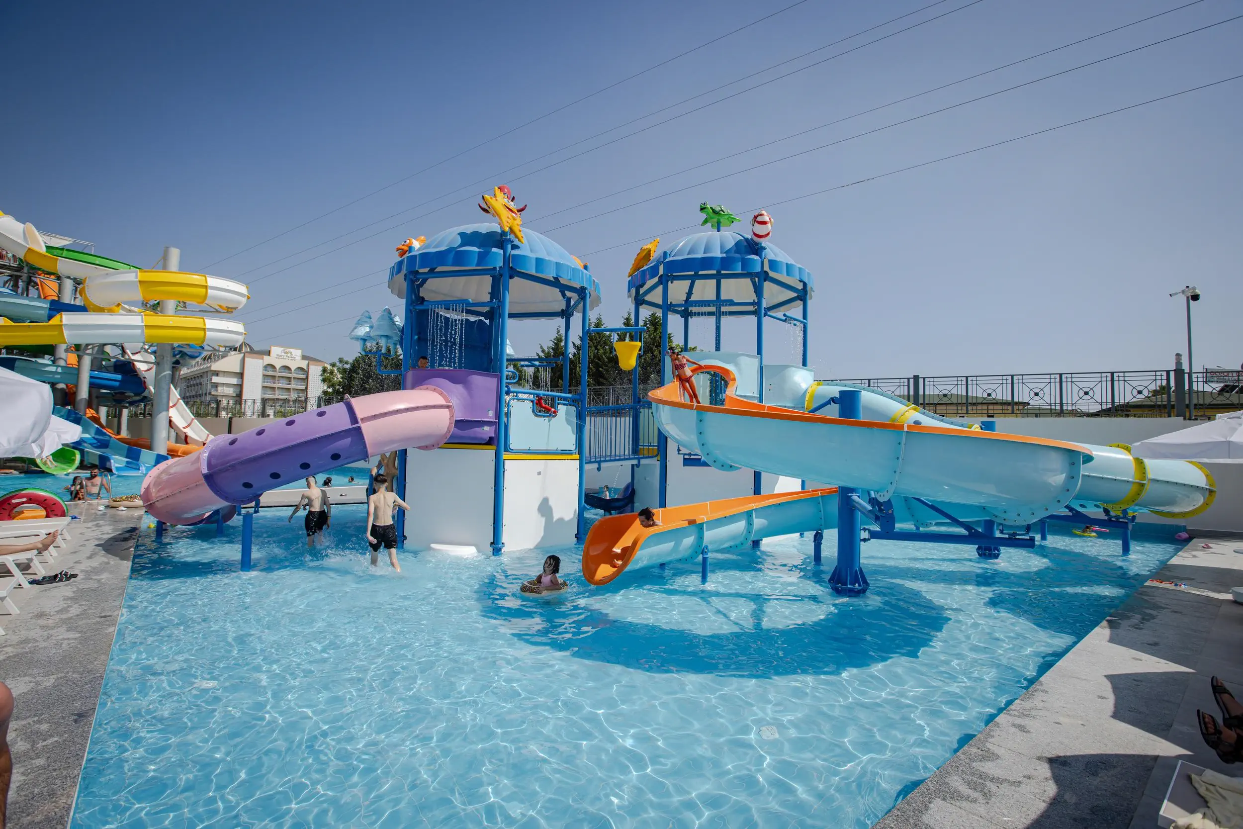 Baseny: Brodzik odkryty 100 m2 niepodgrzewany Minikluby: Klub dla dzieci 4-4 lat (4), Klub dla dzieci 4-4 lat (4)