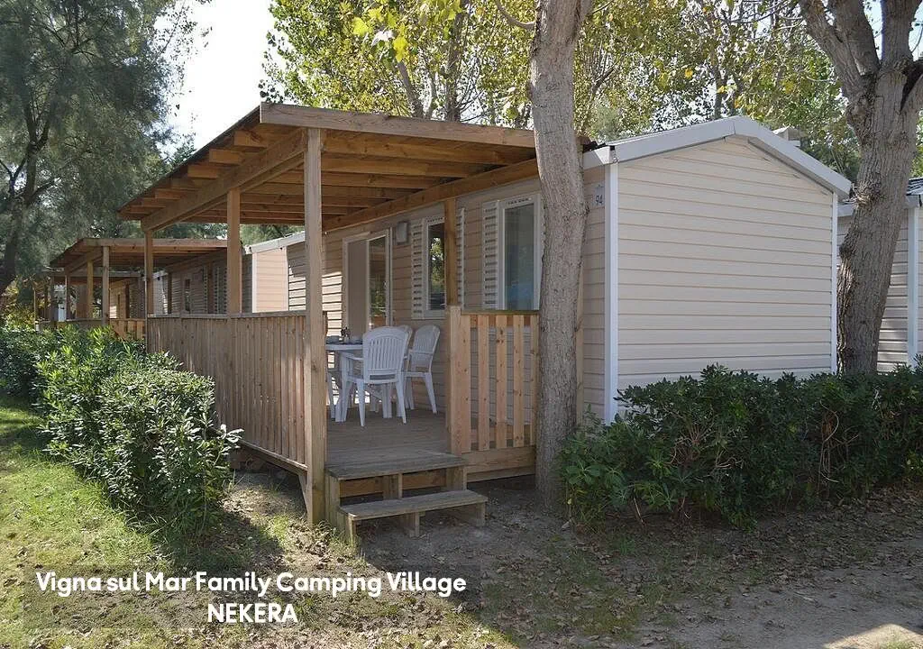 mobile home standard (ok. 25 m2): prysznic, WC, klimatyzacja, taras, TV, WiFi, wnęka kuchenna (kuchenka gazowa lub elektryczna, lodówka), pomieszczenie mieszkalne, 2 sypialnie. Kaucja (płatna w gotówce) ok. 100 EUR/mobil home/pobyt, końcowe sprzątanie ok. 50 EUR,