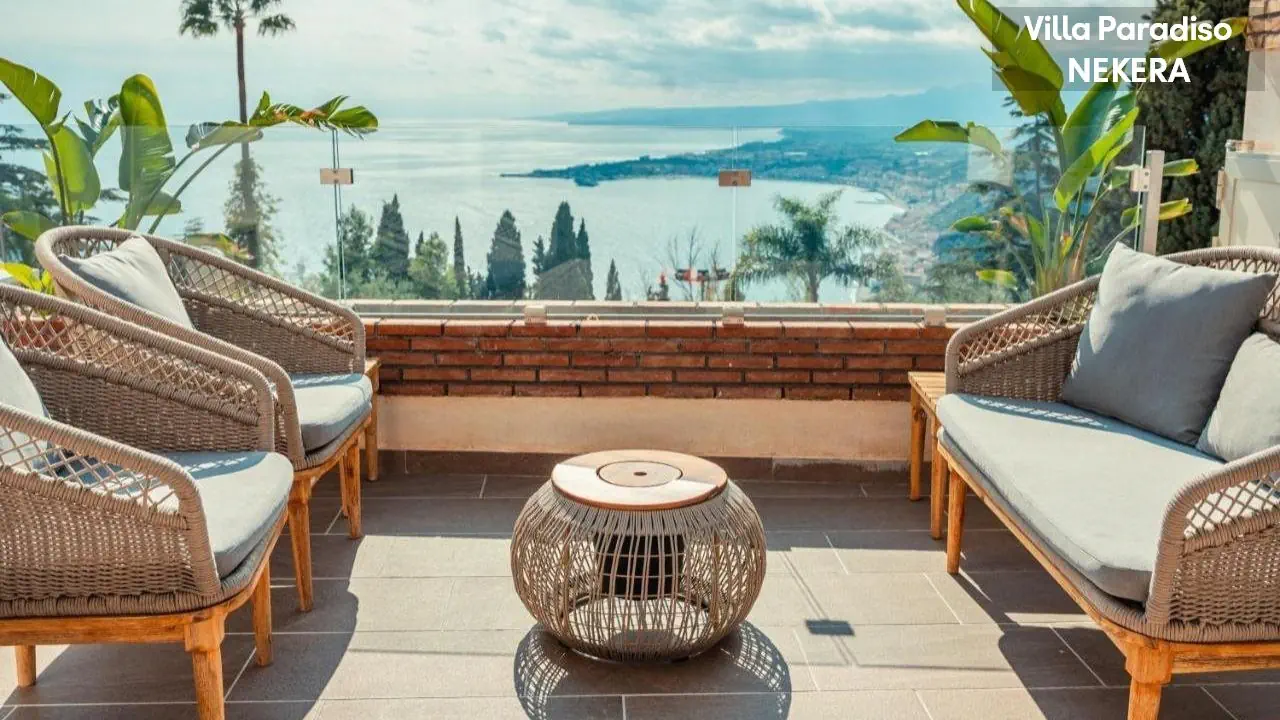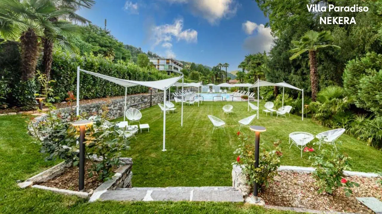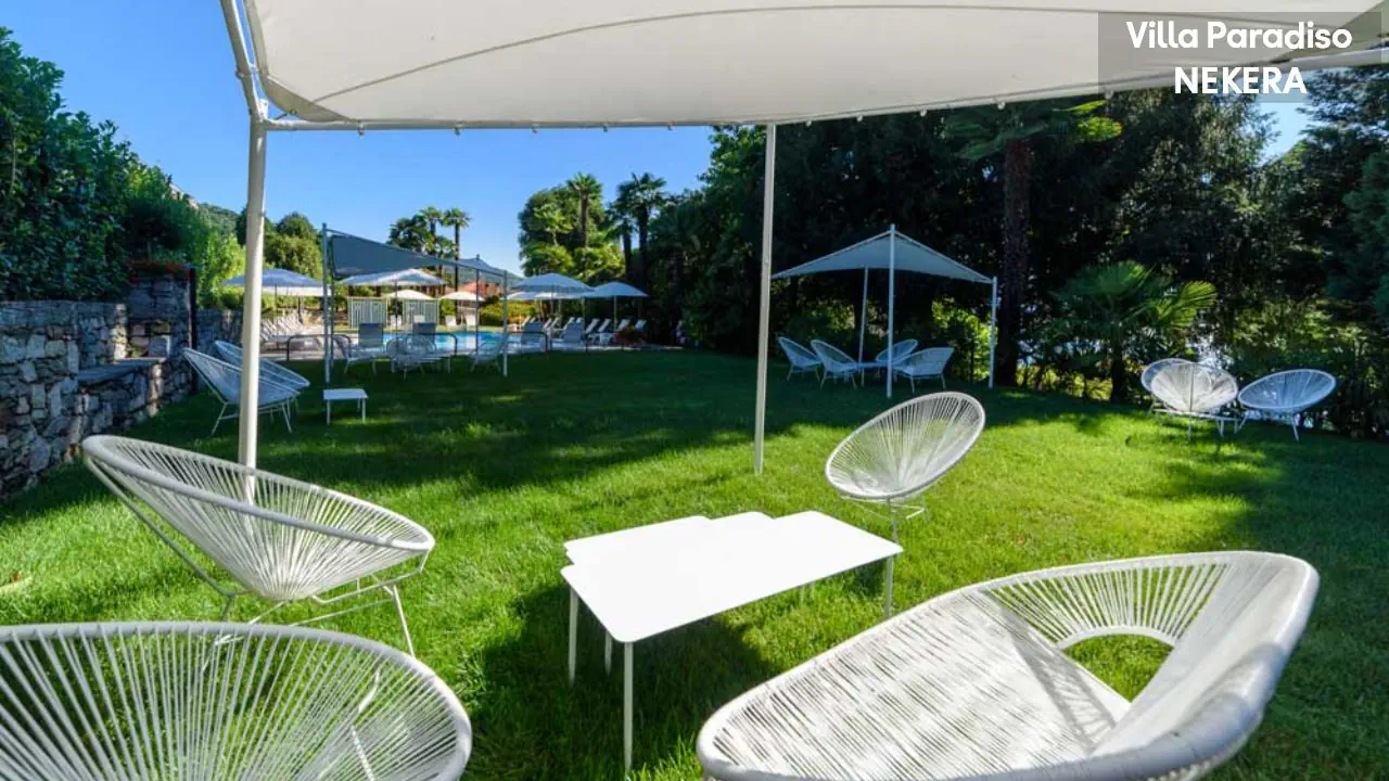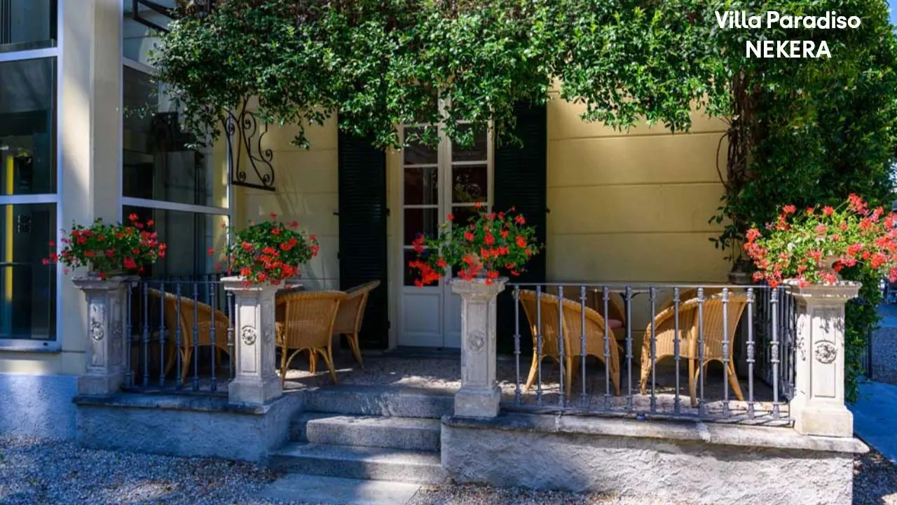 Położony jest bezpośrednio nad brzegiem Jeziora Maggiore, w miejscowości Meina, w otoczeniu ogrodu i zieleni. Do centrum Meina ze sklepami i restauracjami ok 500m, do Arony – ok. 4 km, do Stresy – ok. 15 km. Port lotniczy Mediolan-Malpensa oddalony jest o ok. 35 km.