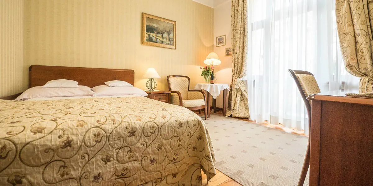 Komfortowy pokój wyposażony w: telewizor, dostęp do internetu, telefon, lodówkę, sejf, suszarkę do włosów oraz łazienkę.