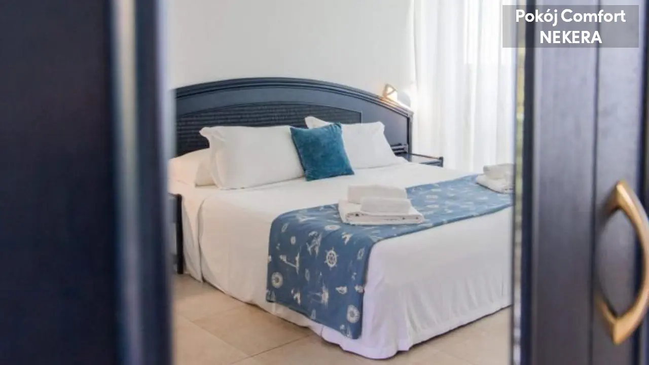 Noclegi, wyżywienie zgodnie z rezerwacją, telefoniczną opiekę rezydenta. Dodatkowo w przypadku imprez pakietowych z przelotem, oprócz ww. świadczeń w cenie zawarty jest: przelot, opłata lotniskowa, opłata za wylot z lotniska lokalnego, transfer lotnisko-hotel-lotnisko (chyba, że dana oferta stanowi inaczej), ubezpieczenie dla imprez turystycznych, bezpośrednia opieka polskojęzycznego rezydenta - w sezonie letnim (wakacyjnym): Kreta, Rodos, Turcja (Riwiera), Majorka, Bułgaria, całorocznie: Malta, na pozostałych kierunkach opieka telefoniczna lub przez czat w serwisie moja.nekera.pl. W przypadku imprez turystycznych opartych o przeloty przewóz bagażu może być nieuwzględniony w cenie. Cena uzależniona jest m.in. od przewoźnika oraz terminu wyjazdu, należy ją zweryfikować podczas zakupu. Linie lotnicze, w których bagaż jest w cenie (20 kg bagaż główny oraz bagaż podręczny) - przeloty czarterowe: Enter Air, LOT (dla wylotów na Rodos), Sky Express, Holiday Europe, European Air Charter, Ryan Sun (dla wylotów na Rodos) oraz przeloty rejsowe: Sun Express, Corendon, Pegasus Airlines, Emirates, Fly Dubai, Quatar Airlines, Air France, Austrian Airlines.Przykładowe linie lotnicze, gdzie bagaż jest dodatkowo płatny to: FR (Ryanair), W6 (WizzAir), Easy Jet. Podane godziny serwowania posiłków oraz funkcjonowania poszczególnych elementów infrastruktury hotelowej mogą ulec nieznacznym zmianom, ze względu na sezonowość, siły wyższe i inne okoliczności.