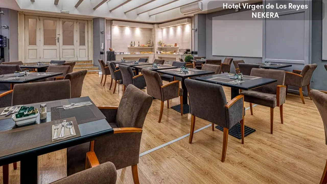Czterogwiazdkowy hotel Virgen de Los Reyes posiada wewnętrzne patio, oraz odkryty basen. Ponadto, do dyspozycji gości jest także wyciszona strefa czytelni. W hotelu znajduje się restauracja bufetowa oraz kawiarnia bar. Recepcja jest dostępna przez całą dobę, hotel dysponuje także przechowalnią bagażu. Dodatkowo, w hotelu goście mają do wyboru szereg dodatkowych usług za dodatkową opłatą takich jak pranie i prasowanie, wymiana walut, wynajem samochodów, wózków dziecięcych itp. a także minibar.
