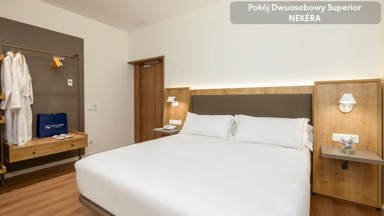Pokój Jednoosobowy - ok. 9-12 m2 powierzchni, jedno łóżko pojedyncze, TV, biurko, klimatyzacja, prywatna łazienka z prysznicem i suszarką do włosów, sejf za dodatkową opłatą, bezpłatne WiFi Pokój Dwuosobowy - ok. 16m2 powierzchi, jedno łóżko podwójne lub dwa łóżka pojedyncze w zależności od dostępności, poza tym wyposażony tak, jak pokój Jednoosobowy. Pokój Dwuosobowy Superior - jedno łóżko typu King Size, taca z czajnikiem i kawą, herbatami, TV, bezpłatny sejf, minibar za dodatkową opłatą, poza tym wyposażony tak, jak pokój Jednoosobowy. Pokój Dwuosobowy Ekonomiczny - ok. 16m2 powierzchni, wa łóżka pojedyncze, brak możliwości dodatkowego łóżka, dostawki, poza tym wyposażony tak, jak pokój Jednoosobowy. Pokój Trzyosobowy - ok. 18m2 powierzchni, trzy łóżka pojedyncze, dla trzech osób dorosłych lub trzyosobowej rodziny. Poza tym wyposażony tak, jak pokój Jednoosobowy. Pokój Rodzinny - ok. 18m2 powierzchni, cztery łóżka pojedyncze, poza tym wyposażony tak, jak pokój Jednoosobowy Apartament Junior - sypialnia z jednym łóżkiem podwójnym lub dwoma pojedynczymi łóżkami, Internet Premium, czajnik i taca z bezpłatnymi naparami i kawą, minibar za dodatkową opłatą, poza tym wyposażony tak jak pozostałe.