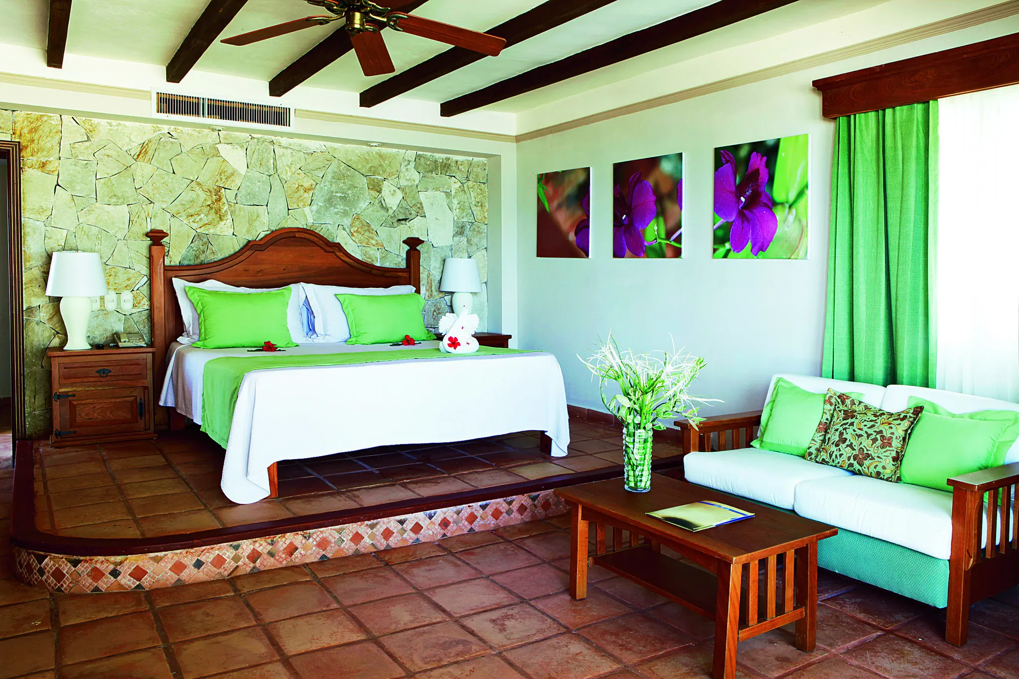 Pokoje standardowe z widokiem na morze: ok. 22 mkw, klimatyzacja, TV satelitarna, telefon i minibar, internet za opłatą, możliwość wynajęcia sejfu, balkon lub taras. Wanna, prysznic, WC, suszarka. Pokoje komfort: ok. 22 mkw, bardziej elegancko wyposażone. Junior suity beach front: ok. 40 mkw, położone bliżej plaży, wyposażone w jacuzzi i minibar (uzupełniony w dniu przyjazdu), dysponują małą wydzieloną częścią mieszkalną, dużym balkonem lub tarasem z widokiem na morze. Pokoje rodzinne: ok. 40 mkw, położone na 2 poziomach (na parterze rozkładana sofa, na piętrze łóżko typu king size), 2 x TV. Pokoje rodzinne: położone na 2 poziomach (na parterze rozkładana sofa, na piętrze 2 łóżka queen size), 2 x TV.