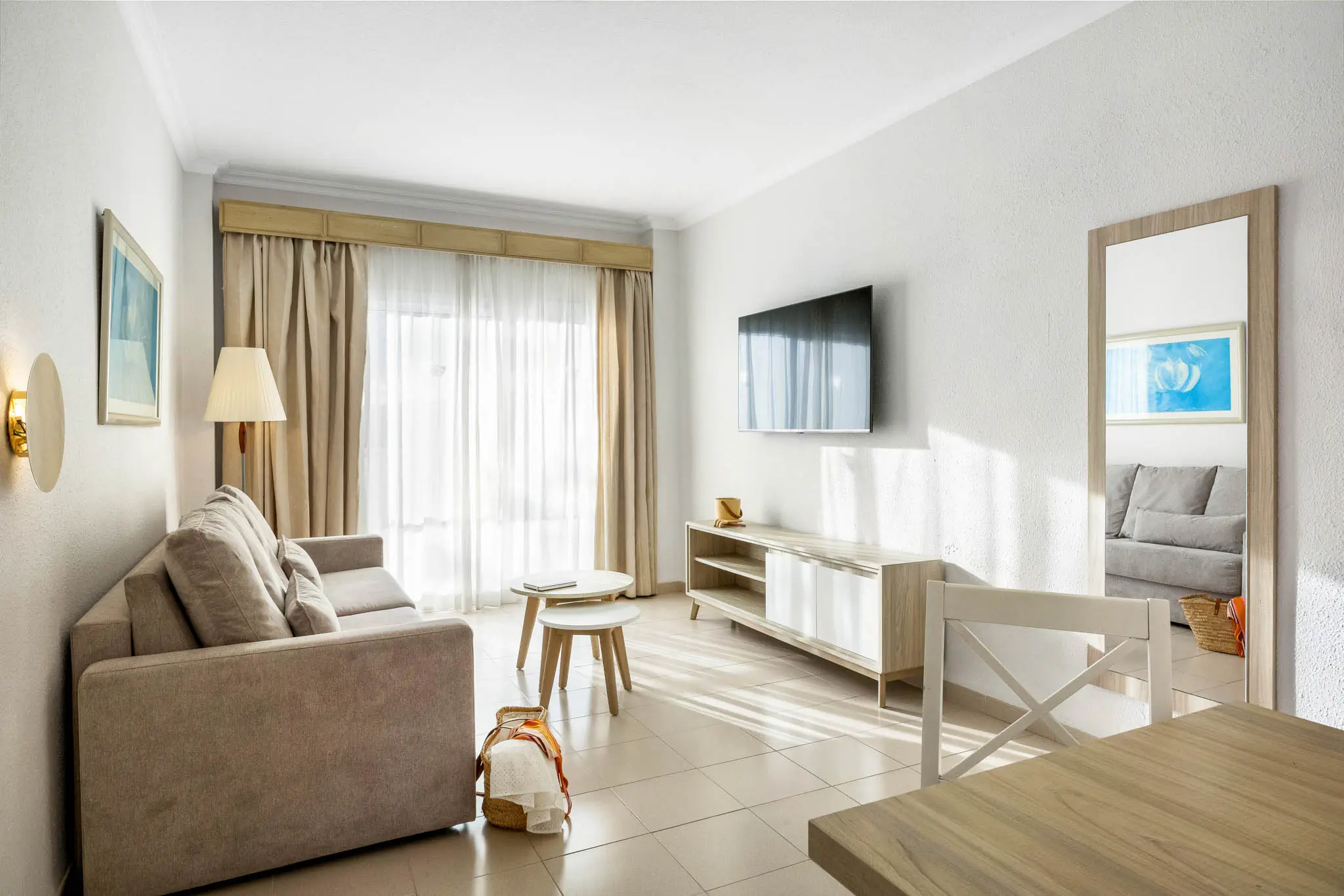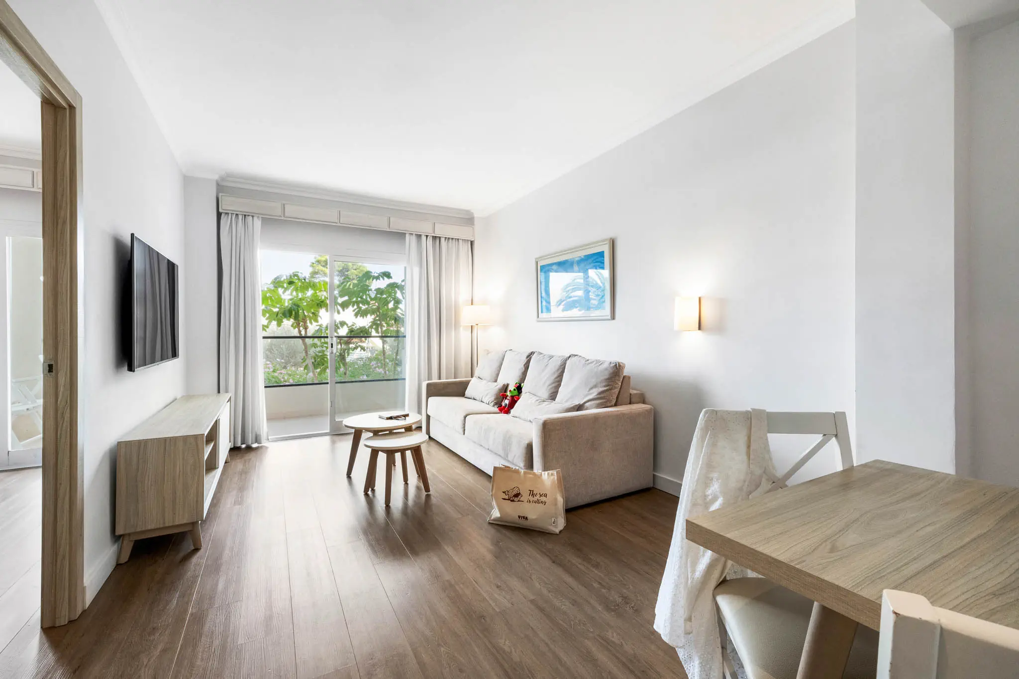 Dla max. 4 osób, Przestrzeń zewnętrzna: Balkon, Kanały telewizji: Angielski, Telefon w pokoju, Aneks kuchenny, prysznic, Powierzchnia pokoju: ok. 50 - 53 m2, Dostawka: sofa, Rodzaj podłogi: laminat, Sprzątanie codziennie, Salon, część jadalniana, 1 sypialnia, Drzwi przesuwne, Maksymalna liczba osób dorosłych: 3, Maksymalna liczba dzieci: 2, Widok na ogród, Liczba łazienek: 1, Liczba toalet: 1, Kuchenka mikrofalowa, Klimatyzacja: Klimatyzacja centralna, Działa w godzinach: 24h, Czerwiec, Lipiec, Sierpień