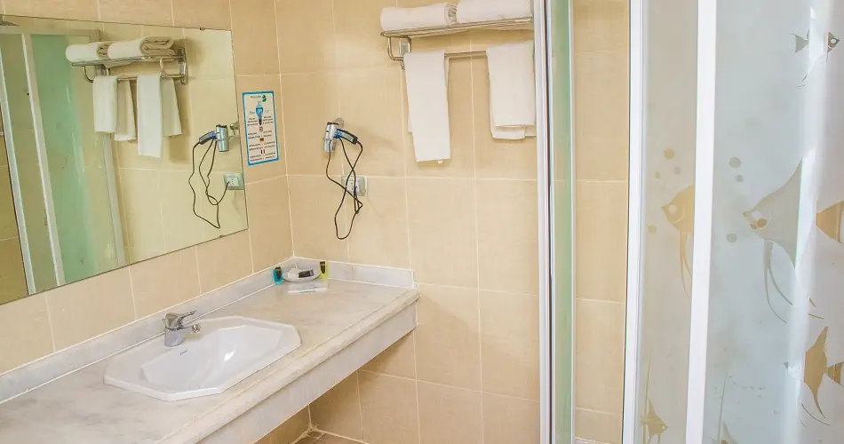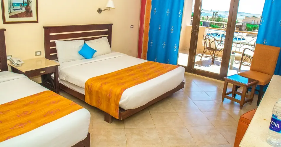 Pokój standard ok 45 m² Łazienka, suszarka do włosów, WC TV-SAT, telefon Balkon lub taras Minilodówka Minibar - płatny Sejf - bezpłatnie Standard GV - widok na ogród Standard PV/SSV - widok na basen i boczny widok na morze Standard SV - widok na morze