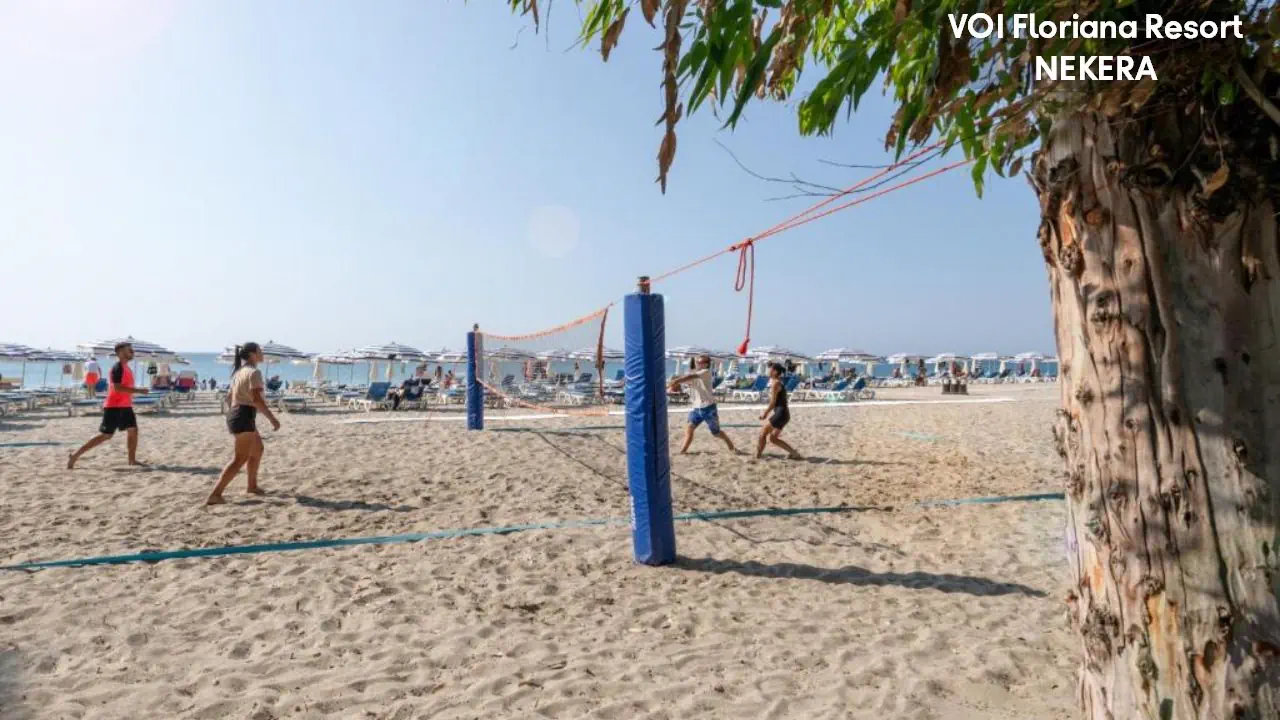 prywatna, szeroka, piaszczysto–żwirowa plaża z łagodnym zejściem do morza, położona bezpośrednio przy hotelu. Bezpłatne: 2 leżaki i parasol na pokój, bar. Dodatkowo płatne: sporty wodne.