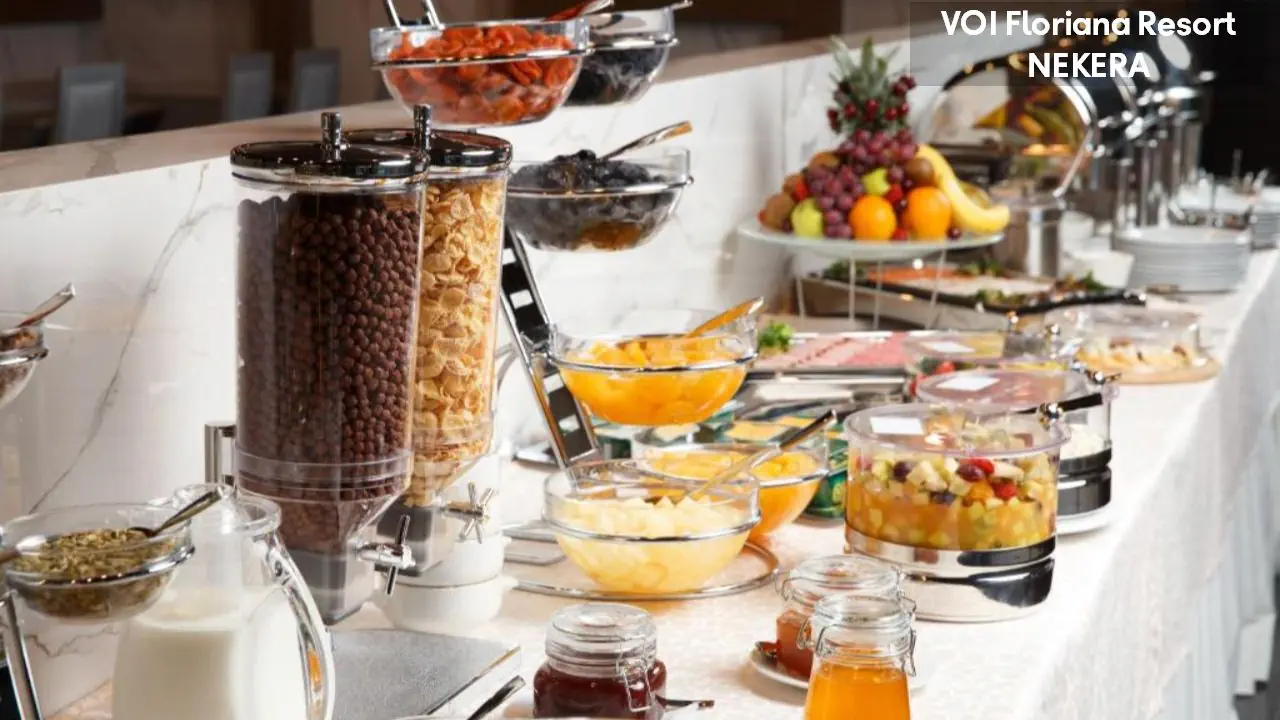 All Inclusive – śniadanie, obiad i kolacja w formie bufetu w restauracji głównej, do posiłków lokalne napoje bezalkoholowe oraz wybrane lokalne napoje alkoholowe (np. wino stołowe, piwo) z dystrybutorów. W ciągu dnia przekąski słone i słodkie w wyznaczonych barach , lokalne napoje bezalkoholowe i alkoholowe serwowane od ok. 10:00 do 23:00. Dodatkow płatne: międzynarodowe i markowe alkohole, świeżo wyciskane soki, napoje w butelkach lub puszkach, lody, a także wszystkie dania i napoje spoza karty All Inclusive są dodatkowo płatne.