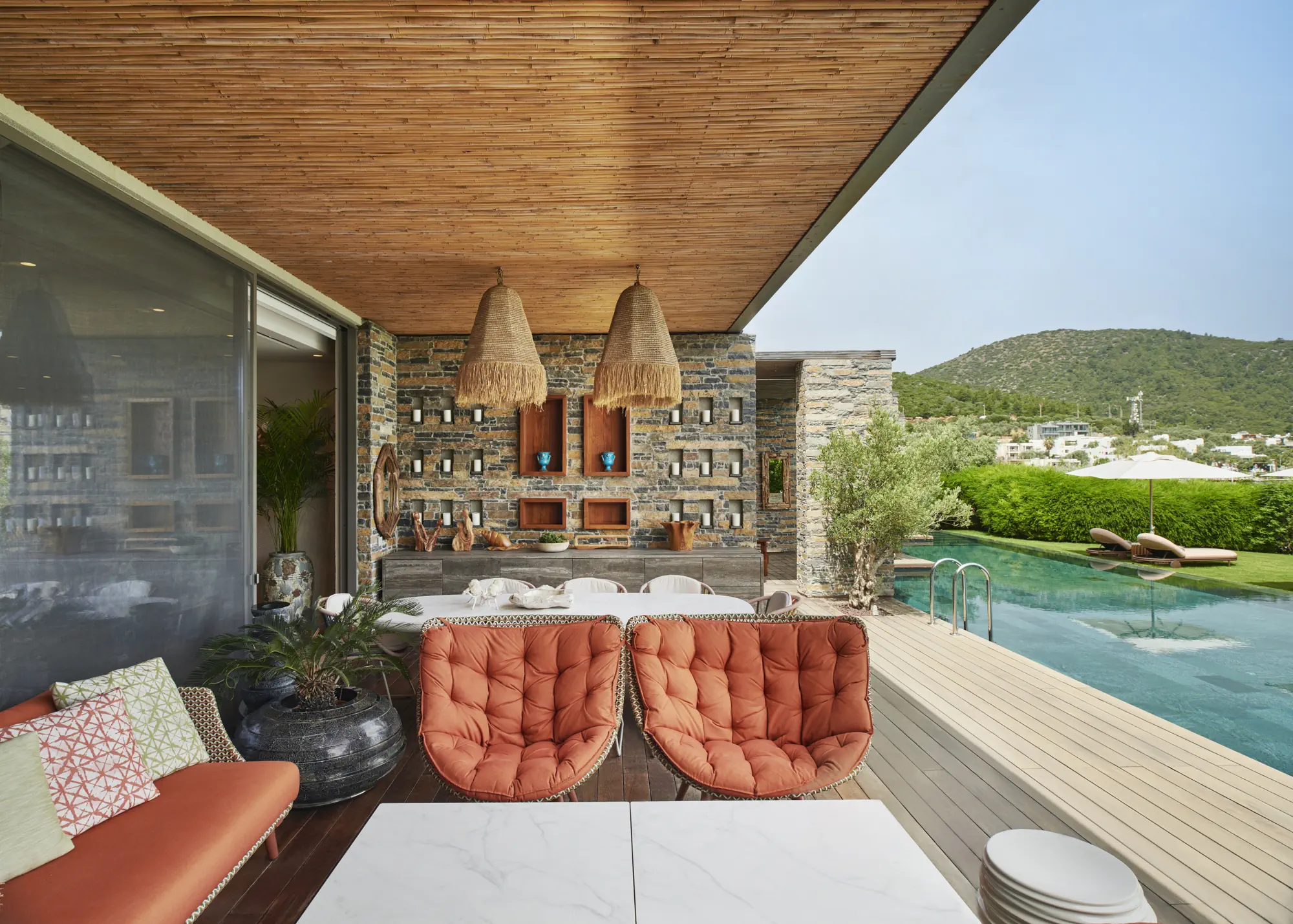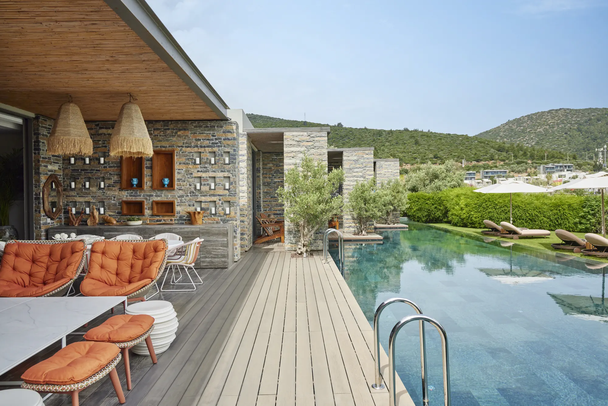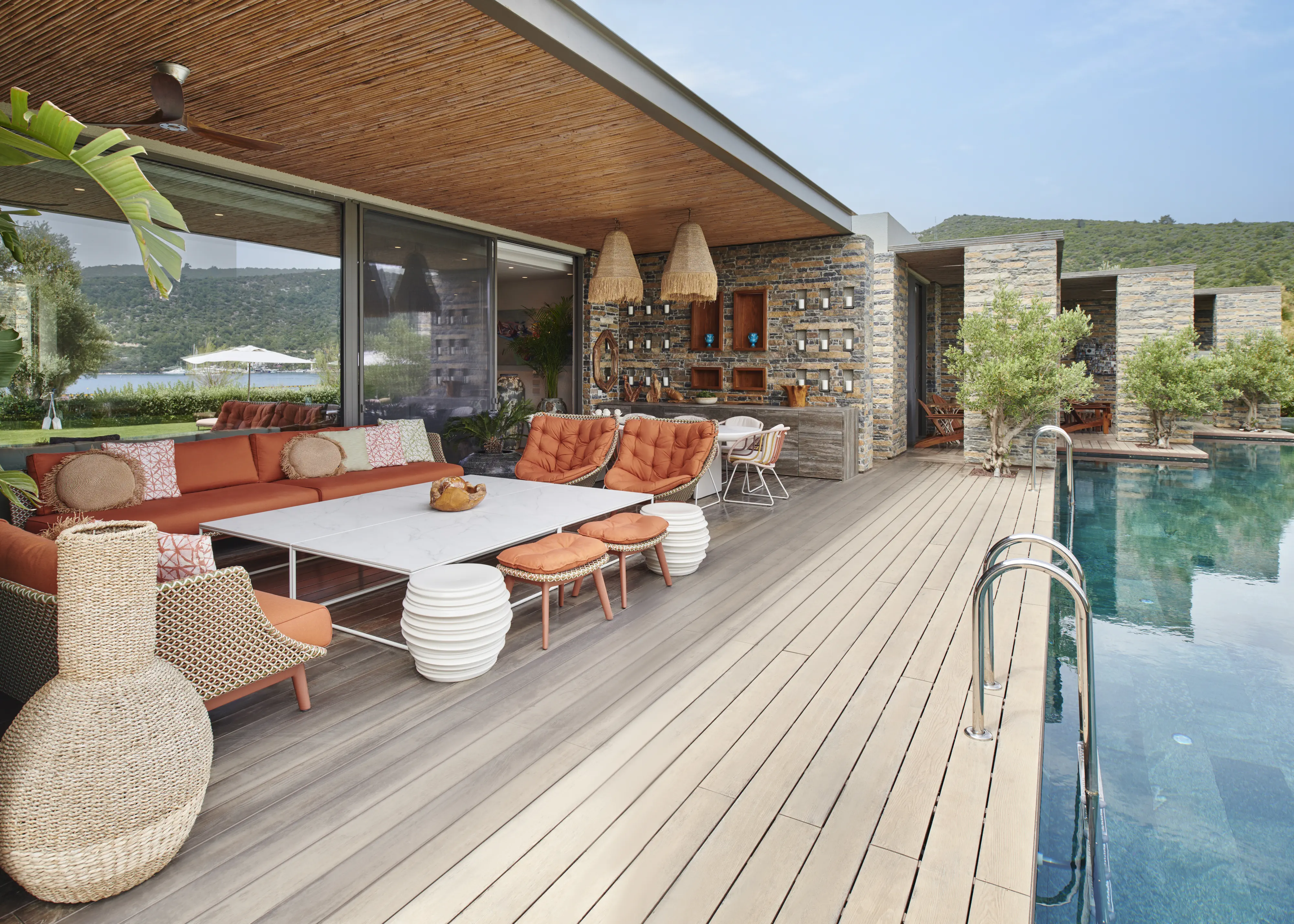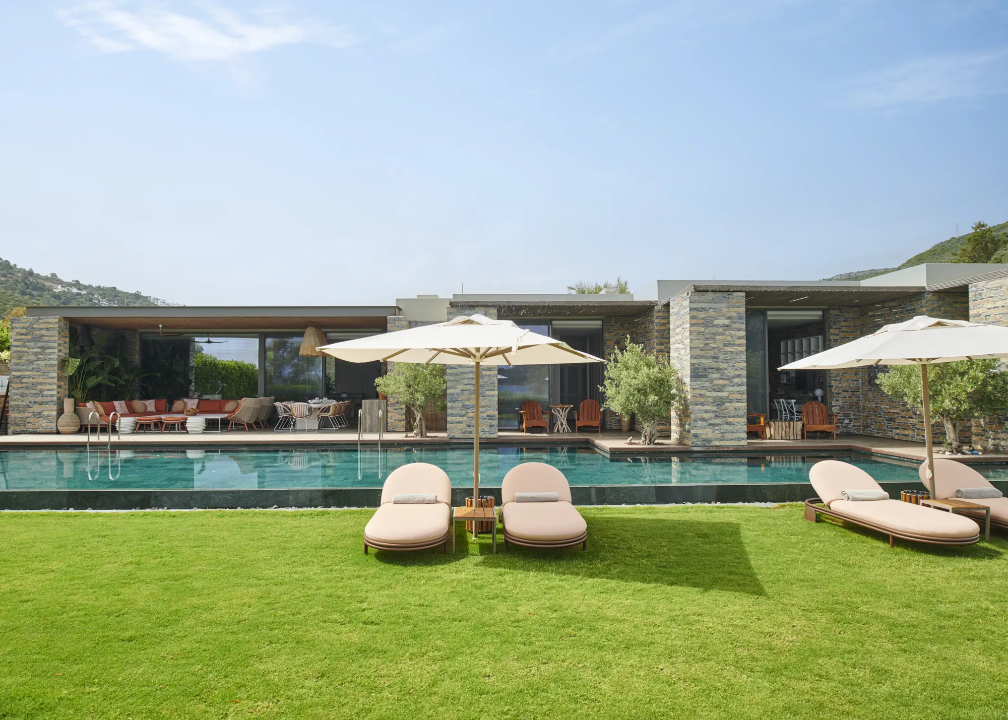 Dla max. 8 osób, Przestrzeń zewnętrzna: Balkon i taras, Kanały telewizji: Angielski, Telefon w pokoju, Aneks kuchenny, wanna, Powierzchnia pokoju: ok. 325 m2, Dostawka: sofa, Rodzaj podłogi: płytki, Sprzątanie codziennie, Salon, Jadalnia , część jadalniana, miejsce do pracy, 4 sypialnie, Drzwi łączące między pokojami, Maksymalna liczba osób dorosłych: 8, Maksymalna liczba dzieci: 2, Concierge (bezpłatnie), Kwiaty i owoce, Bezpłatna pralnia, Pralka, Sauna, Prysznic na świeżym powietrzu, Frontalny widok na plażę, Bezpośredni dostęp do plaży, Wyjście do wspólnego basenu, Prywatny basen, Liczba łazienek: 3, Liczba toalet: 4, Kuchenka mikrofalowa, Zestaw do parzenia kawy i herbaty, Klimatyzacja: Klimatyzacja centralna, Działa w godzinach: , Kwiecień, Maj, Czerwiec, Lipiec, Sierpień, Wrzesień, Październik
