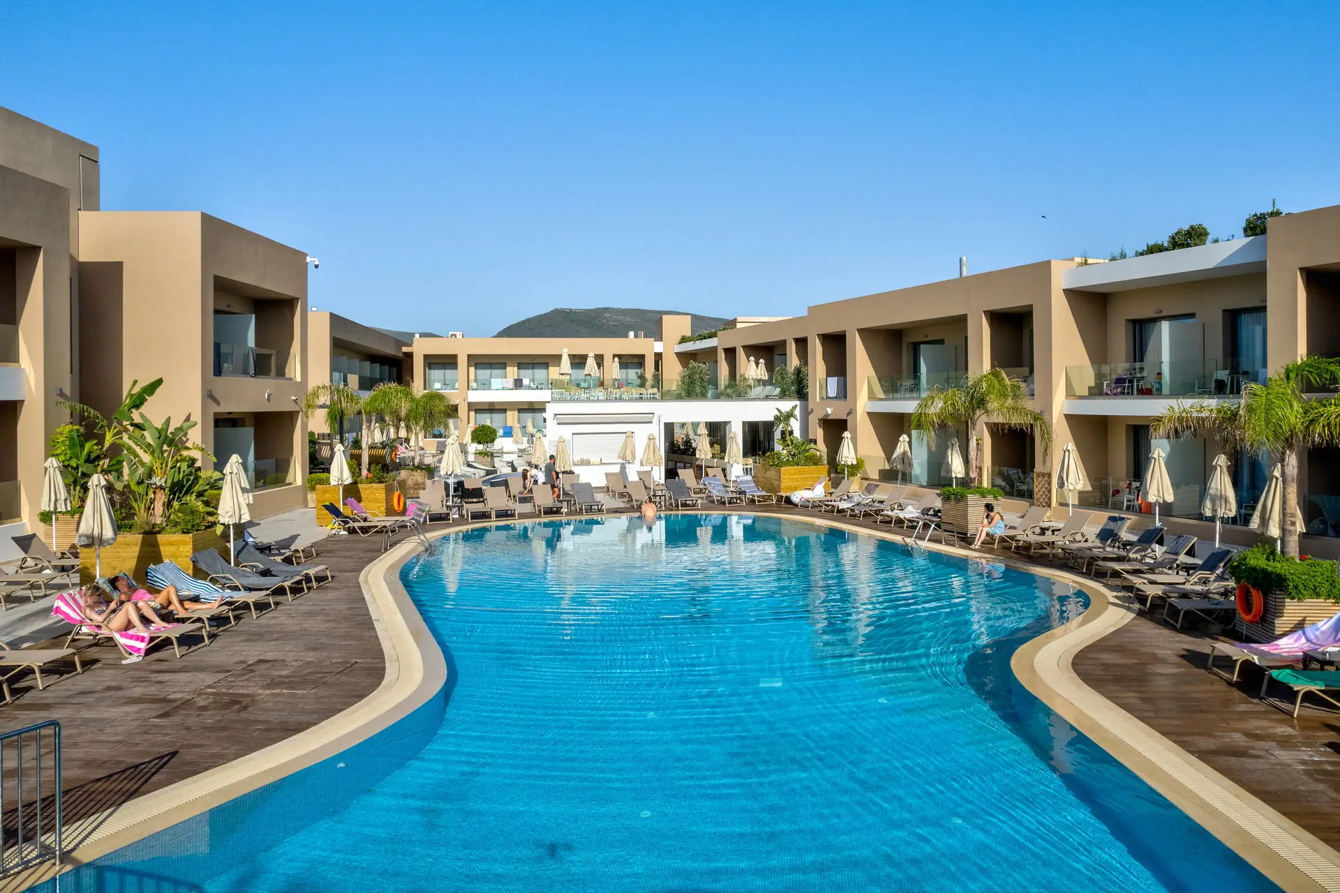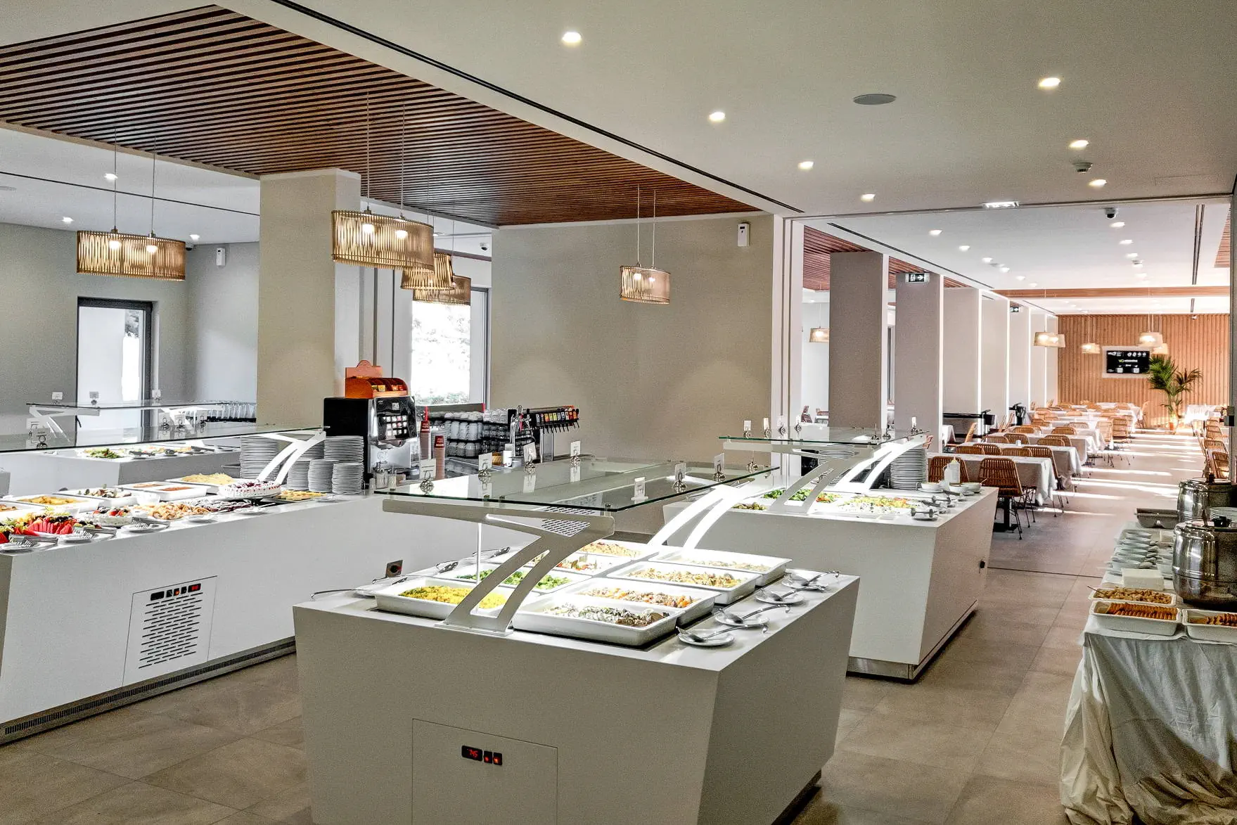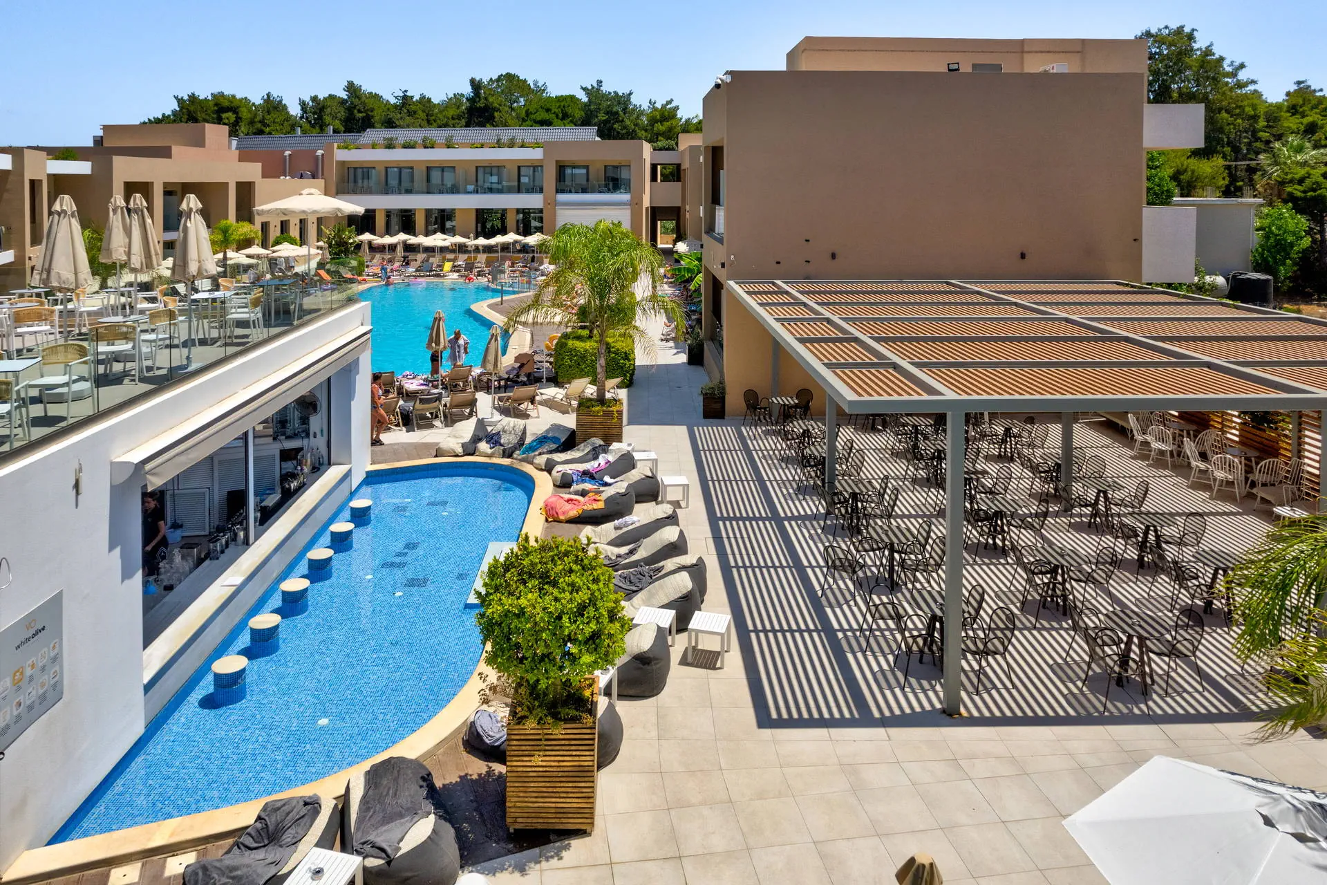 Wyżywienie Rodzaje wyżywienia i posiłki: All Inclusive: śniadania, lunche i kolacje w formie bogatego bufetu. Bary: Bar czynny w godzinach 10:00-23:00. Pozostałe informacje: Napoje bezalkoholowe: woda, soki, słodkie napoje typu cola, fanta, kawa, herbata. Napoje alkoholowe: lokalne piwo, wino, ouzo, wódka, gin, brandy, rum. Możliwość korzystania z All Inclusive od momentu przyjazdu do hotelu do momentu wyjazdu na lotnisko. Program sportowy i animacyjny Dla każdego: Bezpłatna siłownia, aqua aerobic i water polo w basenie, wielofunkcyjne boisko (tenis, koszykówka, piłka nożna), boisko do siatkówki plażowej. Dla dzieci: Aktywności plastyczne i zręcznościowe, konsola z zestawem gier, plac zabaw dla małych dzieci, zajęcia sportowe dla dzieci w Strefie Sportu i Zabawy w hotelu White Olive Premium Laganas, oddalonym o ok. 700 m. (od połowy czerwca do połowy września). Za dodatkową opłatą: Sauna oraz hotelowe SPA. Pozostałe informacje: Poza sezonem (do połowy czerwca oraz od połowy września) niektóre aktywności mogą być niedostępne. Internet Bezpłatna sieć Wi-Fi w pokojach i na terenie całego hotelu. Istnieje również możłiwość wykupienia indywidulanego pakietu Internetu o większej szybkości: 1 dzień = 5€ 3 dni = 10€ 5 dni = 15€ 7 dni = 15€ 14 dni = 25€ Kategoria lokalna ***** Naszym zdaniem Elitarny, designerski hotel został oddany do użytku w lipcu 2019 roku. Jego architektura, wyposażenie oraz wyśmienita lokalizacja w Laganas sprawiają, że można go zaliczyć do niewielkiego grona najlepszych hoteli na Zakynthos. Obiekt wyróżnia się ciekawymi animacjami i relaksującą atmosferą. Warto pamiętać, że tylko w naszych hotelach all inclusive działa od momentu wejścia do hotelu do transferu powrotnego. Gorąco polecamy! Położenie Odległość lotniska od hotelu wynosi około 6 km, a transfer z lotniska do hotelu trwa około 30 minut. Obiekt położony jest niedaleko centrum jednego z najpopularniejszych kurortów na wyspie – Laganas. Odległość do stolicy, miasta Zakynthos, wynosi około 8 km. Miejscowość Laganas jest dobrze skomunikowana z pozostałymi częściami wyspy. Plaża Plaża oddalona o ok. 300 m od hotelu. Szeroka, piaszczysta, z łagodnym zejściem do morza. Leżaki i parasole płatne. Na plaży dostępne bary plażowe. Popularne miejsce lęgowe żółwi Caretta Caretta. Dojście do plaży wymaga przejścia przez ulicę. Do dyspozycji gości Recepcja dostępna dla Gości hotelu2 baseny zewnętrzne (czynne 9:00-19:00, słodka woda, gł. 1,5m), brodzik dla dzieci w wydzielonej części basenu głównego (czynny 9:00-19:00, słodka woda, gł. 0,4m), leżaki i parasole przy basenie - bezpłatne, ręczniki basenowe dostępne w recepcji hotelowej (bezpłatne, wymagany depozyt ok. 10 eur). Atrakcje dla dzieci: brodzik dla dzieci w wydzielonej części basenu głównego. Restauracje: restauracja główna, restauracja a'la carte (dodatkowo płatna, konieczna rezerwacja na recepcji), bar w strefie basenów. Pozostałe informacje: przechowalnia bagażu, żelazko bezpłatne, wymagany depozyt 20 euro. Pokoje Hotel posiada 196 nowocześnie urządzonych i eleganckich pokoi usytuowanych w 1-piętrowych budynkach. Wyposażone są w łazienkę z prysznicem, indywidualnie sterowaną klimatyzację (bezpłatną), TV-sat LCD 32"(polskie kanały satelitarne), minisejf (bezpłatny), lodówkę, czajnik, telefon, suszarkę do włosów oraz balkony lub tarasy. Łóżeczka dla dzieci bezpłatnie (ilość ograniczona). Do dyspozycji oferujemy pokoje standardowe (ok. 23m2) z możliwością zakwaterowania do 3 osób dorosłych (dostawka w postaci normalnego łóżka), lub pokoje rodzinne (ok. 32m2), przeznaczone dla maksymalnie 4 osób (dwa dodatkowe łóżka pojedyncze). Pokoje rodzinne są większe od standardowych z częściowo oddzieloną sypialnią (przesuwne, ażurowe drzwi). Uwaga! Rezerwacje na pokoje rodzinne, które będą miały mniej niż 4 osoby - mogą być zamieniane na pokoje standardowe. Hotel posiada pokoje dla niepełnosprawnych (konieczna wcześniejsza rezerwacja). Strona www whiteolivehotels.com