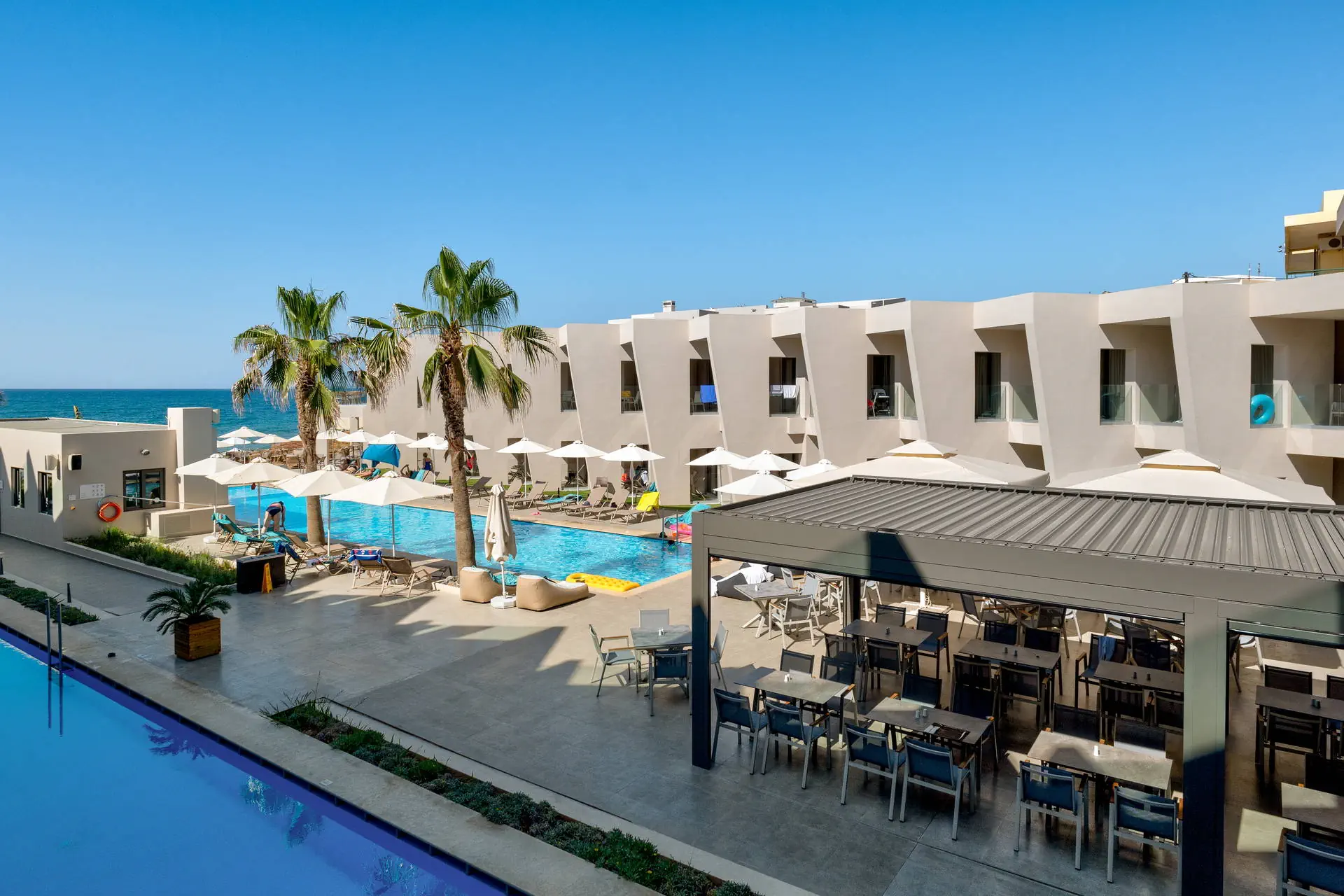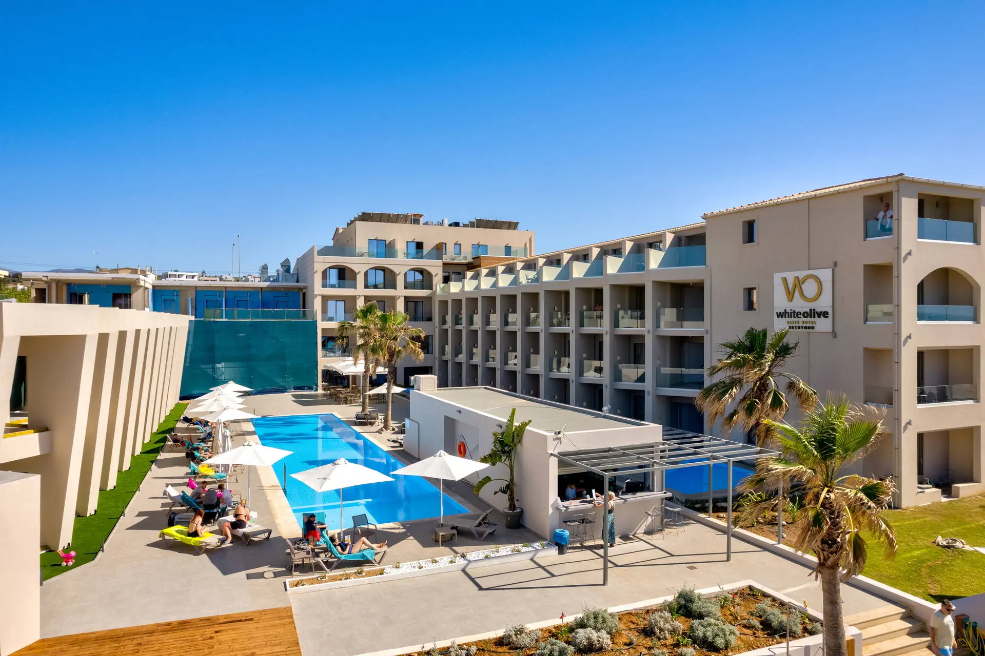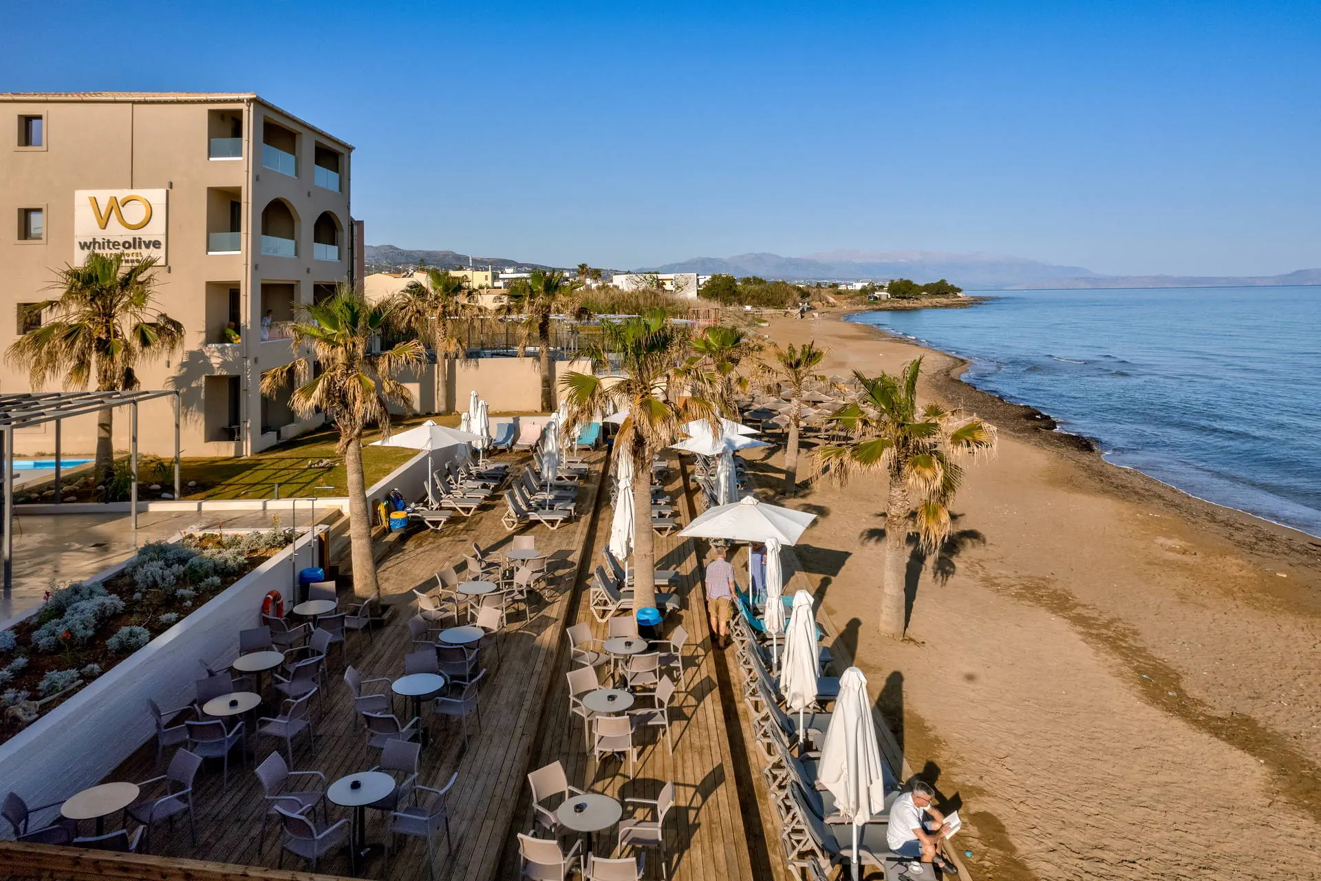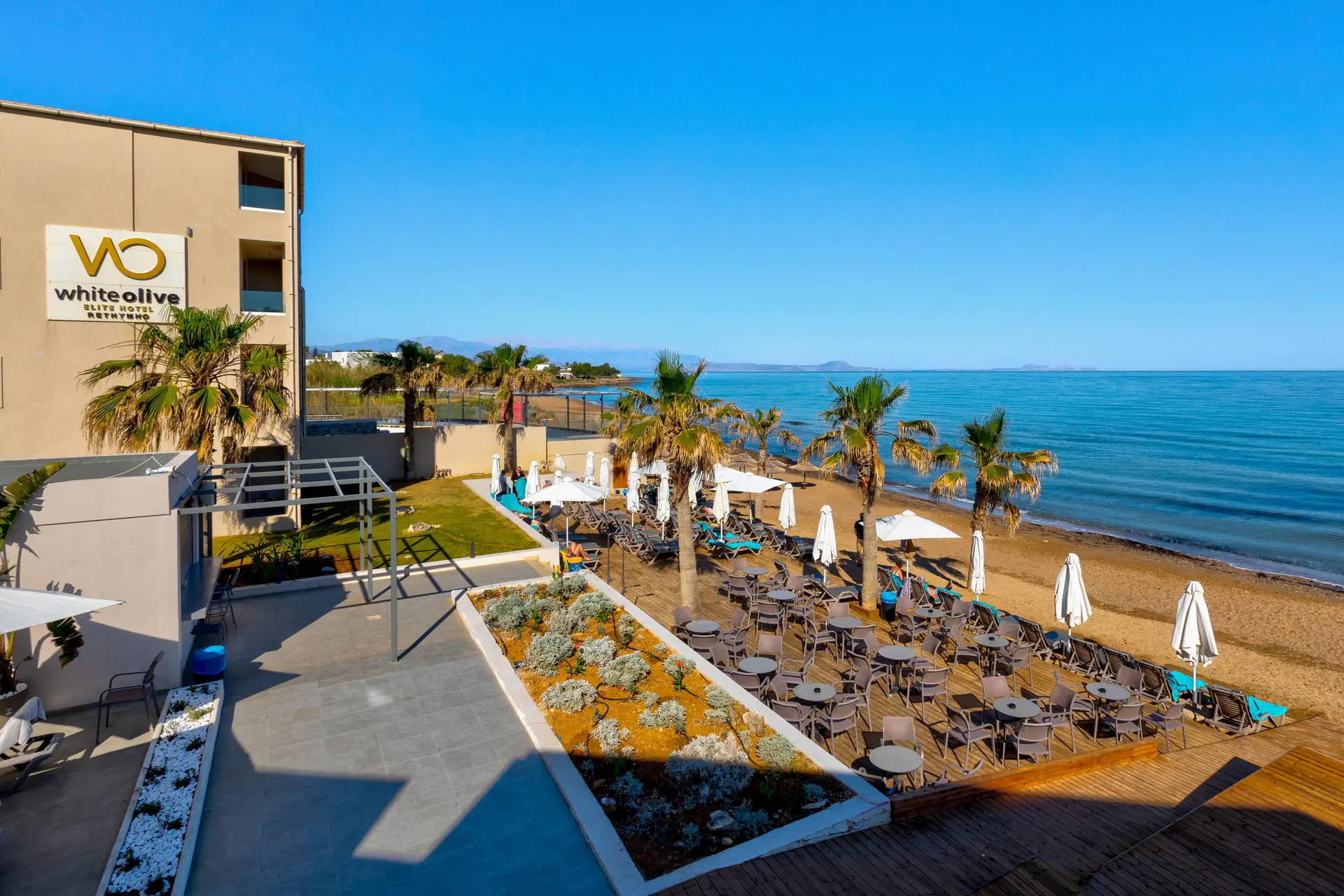 Położenie Odnowiony, świetnie utrzymany i zadbany hotel, który przeszedł gruntowny remont zimą 2020/2021.Obiekt położony jest w miejscowości Sfakaki.Hotel zlokalizowany jest ok. 9 km od centrum Rethymno, w którym znajdują się liczne restauracje, sklepy i dyskoteki. Przystanek autobusowy, z którego kursują autobusy do centrum miasta, znajduje się blisko hotelu (ok. 200 m). Do lotniska w Heraklionie ok. 72 km.Do lotniska w Chanii ok. 77 km. Plaża Plaża bezpośrednio przy hotelu. Kameralna, piaszczysto-żwirowa z łagodnym, kamienistym zejściem do morza. Parasole, leżaki i ręczniki plażowe dostępne bezpłatnie. Do dyspozycji gości Całodobowa recepcja, lobby, winda. Dwa baseny o powierzchni około 250 m2 i 150 m2, dwa brodziki dla dzieci, przy basenach bezpłatne parasole i leżaki. Restauracja główna, snack-bar przy basenie. Pozostałe informacje: sala konferencyjna, sklep. Pokoje Świeżo wyremontowany pięciopiętrowy hotel oferuje 70 komfortowo i nowocześnie urządzonych pokoi usytuowanych w budynku głównym. Pokoje są wyposażone w łazienkę (prysznic, suszarka do włosów, zestaw kosmetyków), klimatyzację, TV-sat, telefon, czajnik, sejf i lodówkę. Hotel oferuje: pokoje standardowe (część z widokiem na morze), duże pokoje rodzinne z dwoma sypialniami (część z widokiem na morze), obszerne pokoje typu junior suite (większość z widokiem na morze) oraz pokoje z bezpośrednim wyjściem na basen.Pokoje standardowe bez dopłaty do widoku na morze zlokalizowane są od strony ruchliwej drogi krajowej. Uwaga! Rezerwacje na pokoje rodzinne, które będą miały mniej niż 3 osoby - mogą być zamieniane na pokoje standardowe. Wyżywienie Rodzaje wyżywienia i posiłki: All Inclusive: śniadania, lunche i kolacje w formie bogatego bufetu. Restauracje: Restauracja główna - dania w formie bufetu (kuchnia międzynarodowa). Bary: Bar czynny w godzinach 10:00-23:00. Pozostałe informacje: Napoje bezalkoholowe: woda, soki, słodkie napoje typu cola, fanta, kawa, herbata. Napoje alkoholowe: lokalne piwo, wino, ouzo, wódka, gin, brandy, rum. Możliwość korzystania z All Inclusive od momentu przyjazdu do hotelu do momentu wyjazdu na lotnisko. Program sportowy i animacyjny Dla każdego: bezpłatna siłownia, konsola z zestawem gier. Dla dzieci: sala zabaw dla dzieci. Tylko dla dorosłych: nieduże centrum SPA. Za dodatkową opłatą: sucha sauna. Pozostałe informacje: dla dzieci nie ma miniklubu. Internet Bezpłatny dostęp do Wi-Fi w ogólnodostępnych miejscach w hotelu oraz w pokojach. Kategoria lokalna ***** Naszym zdaniem Należący do naszej własnej sieci hoteli - White Olive Elite Rethymno to miejsce, gdzie najlepiej możemy zadbać o naszych Klientów. Stworzyliśmy luksusowy kompleks gwarantujący komfortowy wypoczynek, błogi relaks oraz obsługę na wysokim poziomie. Strona www www.whiteolivehotels.com