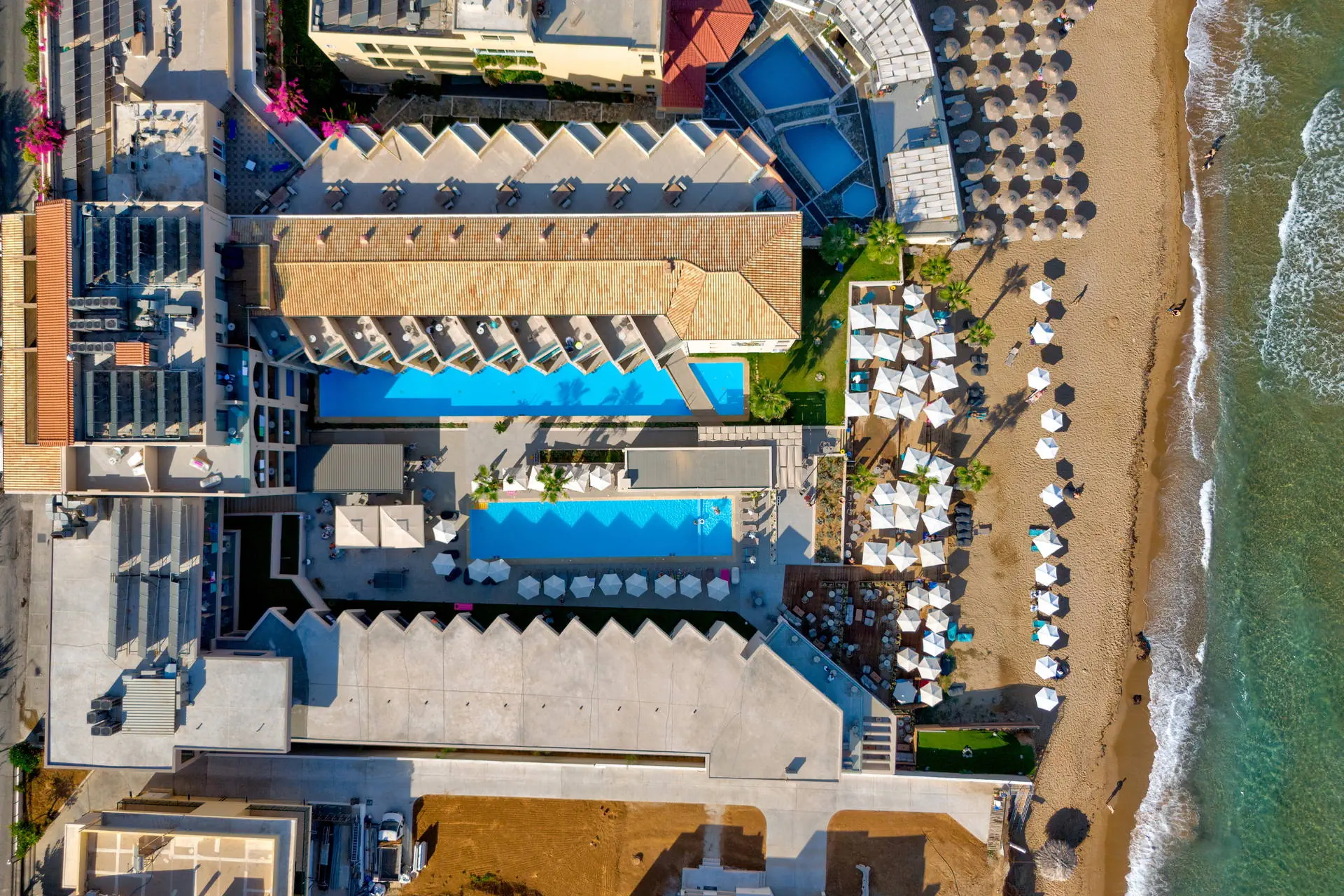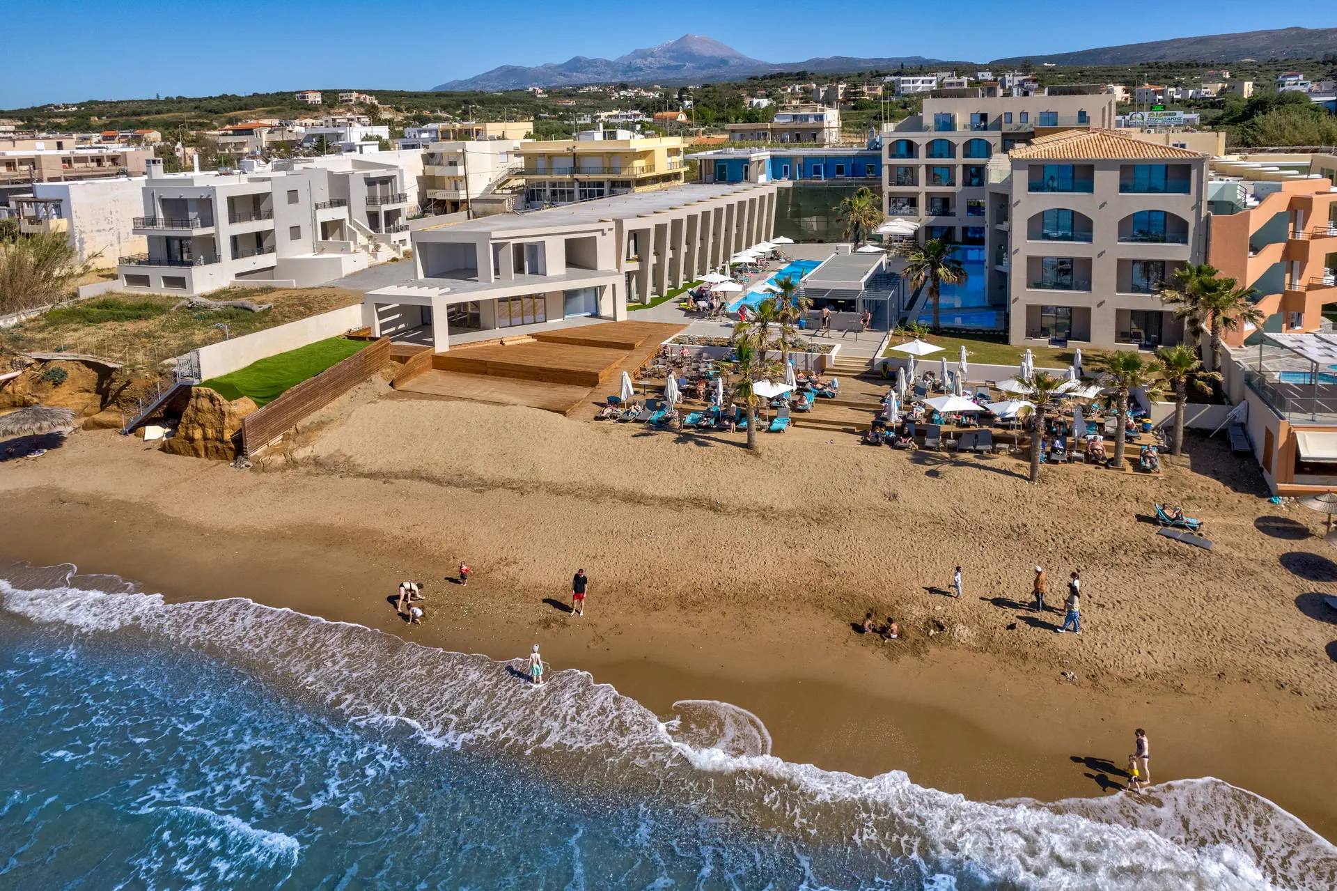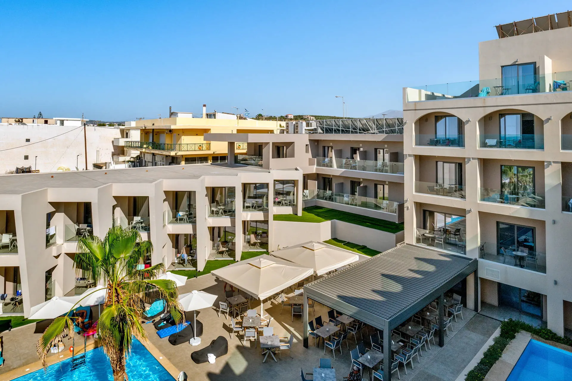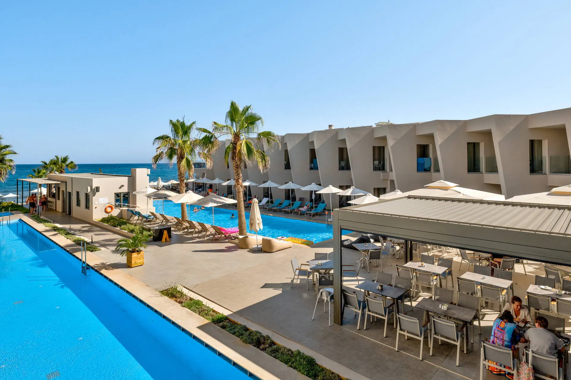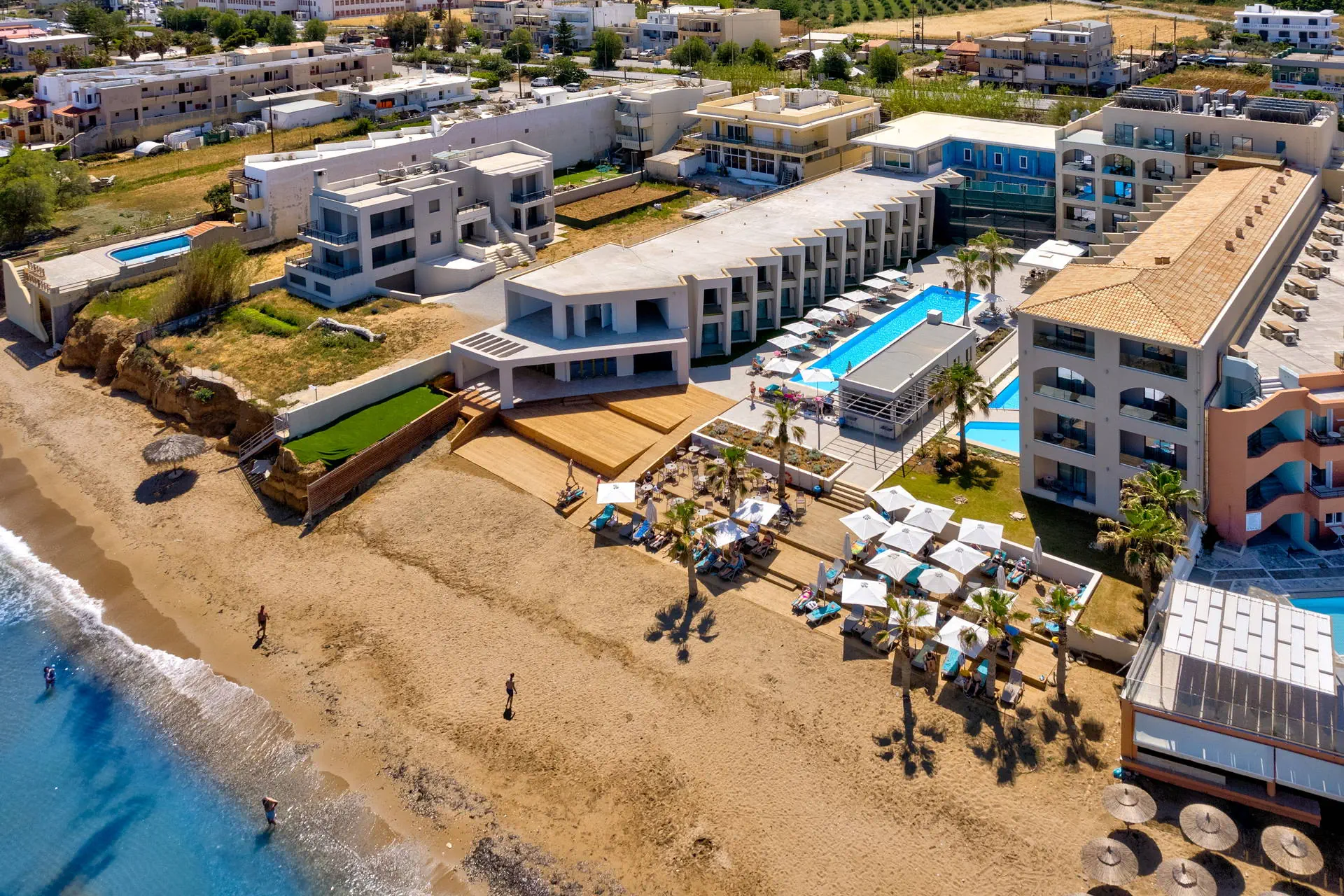 Położenie Odnowiony, świetnie utrzymany i zadbany hotel, który przeszedł gruntowny remont zimą 2020/2021.Obiekt położony jest w miejscowości Sfakaki.Hotel zlokalizowany jest ok. 9 km od centrum Rethymno, w którym znajdują się liczne restauracje, sklepy i dyskoteki. Przystanek autobusowy, z którego kursują autobusy do centrum miasta, znajduje się blisko hotelu (ok. 200 m). Do lotniska w Heraklionie ok. 72 km.Do lotniska w Chanii ok. 77 km. Plaża Plaża bezpośrednio przy hotelu. Kameralna, piaszczysto-żwirowa z łagodnym, kamienistym zejściem do morza. Parasole, leżaki i ręczniki plażowe dostępne bezpłatnie. Do dyspozycji gości Całodobowa recepcja, lobby, winda. Dwa baseny o powierzchni około 250 m2 i 150 m2, dwa brodziki dla dzieci, przy basenach bezpłatne parasole i leżaki. Restauracja główna, snack-bar przy basenie. Pozostałe informacje: sala konferencyjna, sklep. Pokoje Świeżo wyremontowany pięciopiętrowy hotel oferuje 70 komfortowo i nowocześnie urządzonych pokoi usytuowanych w budynku głównym. Pokoje są wyposażone w łazienkę (prysznic, suszarka do włosów, zestaw kosmetyków), klimatyzację, TV-sat, telefon, czajnik, sejf i lodówkę. Hotel oferuje: pokoje standardowe (część z widokiem na morze), duże pokoje rodzinne z dwoma sypialniami (część z widokiem na morze), obszerne pokoje typu junior suite (większość z widokiem na morze) oraz pokoje z bezpośrednim wyjściem na basen.Pokoje standardowe bez dopłaty do widoku na morze zlokalizowane są od strony ruchliwej drogi krajowej. Uwaga! Rezerwacje na pokoje rodzinne, które będą miały mniej niż 3 osoby - mogą być zamieniane na pokoje standardowe. Wyżywienie Rodzaje wyżywienia i posiłki: All Inclusive: śniadania, lunche i kolacje w formie bogatego bufetu. Restauracje: Restauracja główna - dania w formie bufetu (kuchnia międzynarodowa). Bary: Bar czynny w godzinach 10:00-23:00. Pozostałe informacje: Napoje bezalkoholowe: woda, soki, słodkie napoje typu cola, fanta, kawa, herbata. Napoje alkoholowe: lokalne piwo, wino, ouzo, wódka, gin, brandy, rum. Możliwość korzystania z All Inclusive od momentu przyjazdu do hotelu do momentu wyjazdu na lotnisko. Program sportowy i animacyjny Dla każdego: bezpłatna siłownia, konsola z zestawem gier. Dla dzieci: sala zabaw dla dzieci. Tylko dla dorosłych: nieduże centrum SPA. Za dodatkową opłatą: sucha sauna. Pozostałe informacje: dla dzieci nie ma miniklubu. Internet Bezpłatny dostęp do Wi-Fi w ogólnodostępnych miejscach w hotelu oraz w pokojach. Kategoria lokalna ***** Naszym zdaniem Należący do naszej własnej sieci hoteli - White Olive Elite Rethymno to miejsce, gdzie najlepiej możemy zadbać o naszych Klientów. Stworzyliśmy luksusowy kompleks gwarantujący komfortowy wypoczynek, błogi relaks oraz obsługę na wysokim poziomie. Strona www www.whiteolivehotels.com