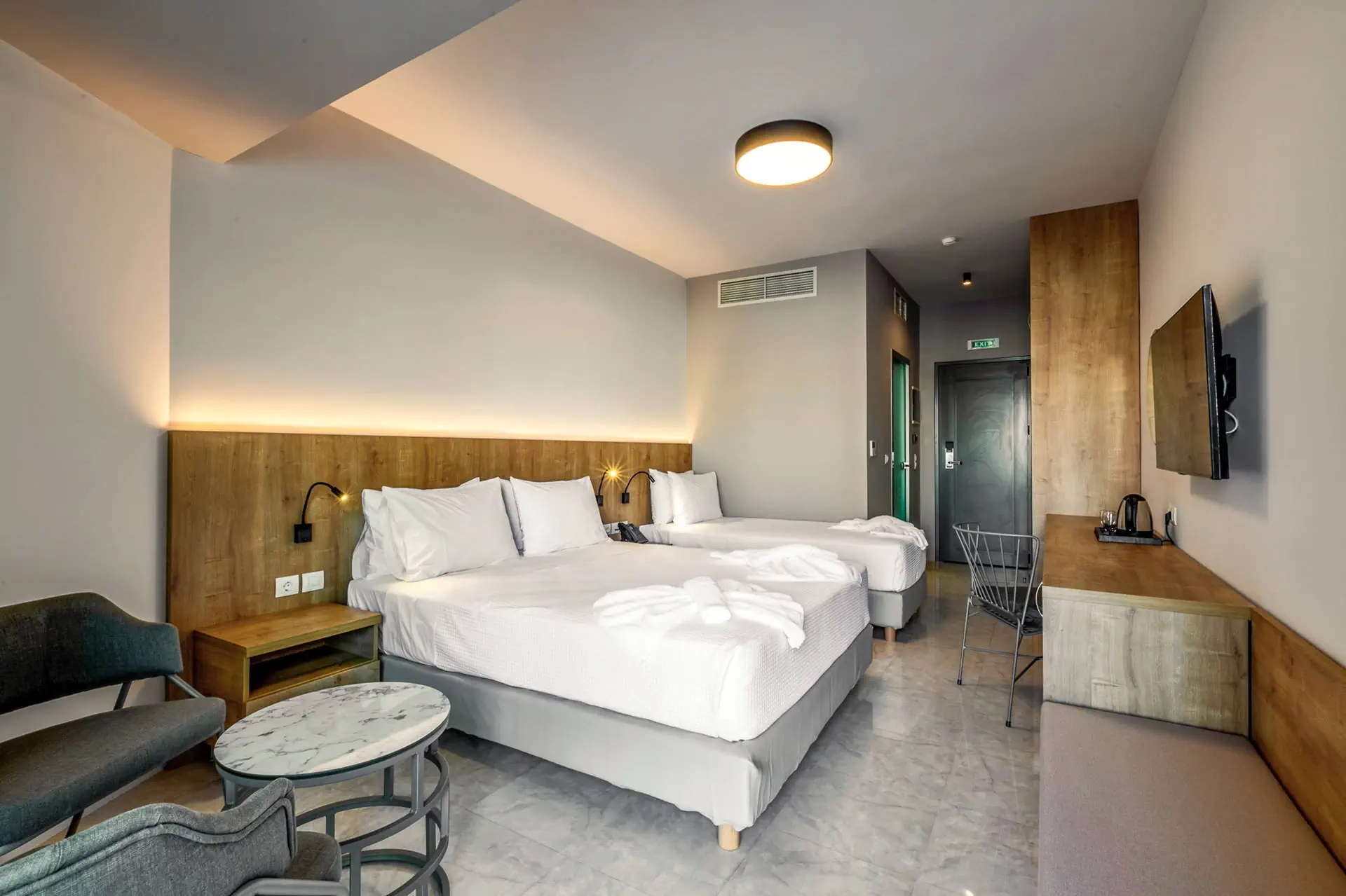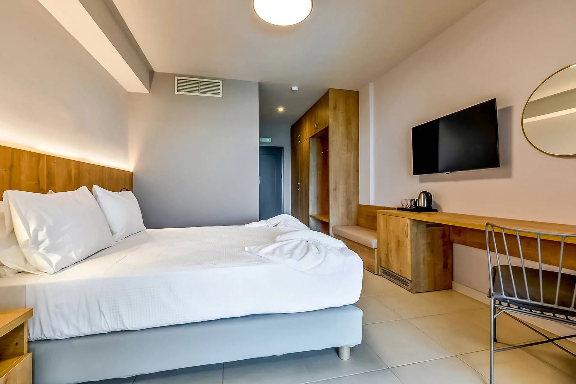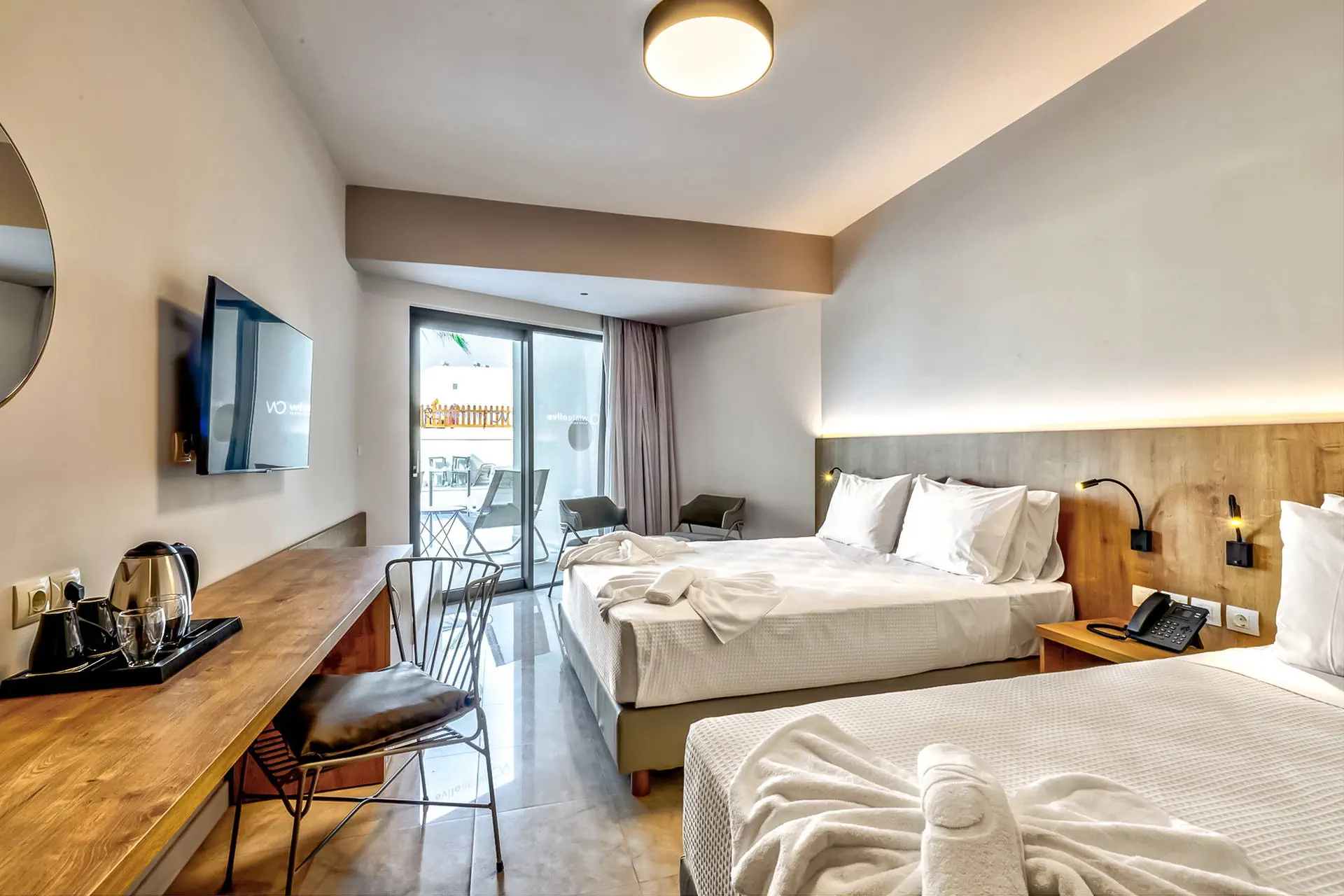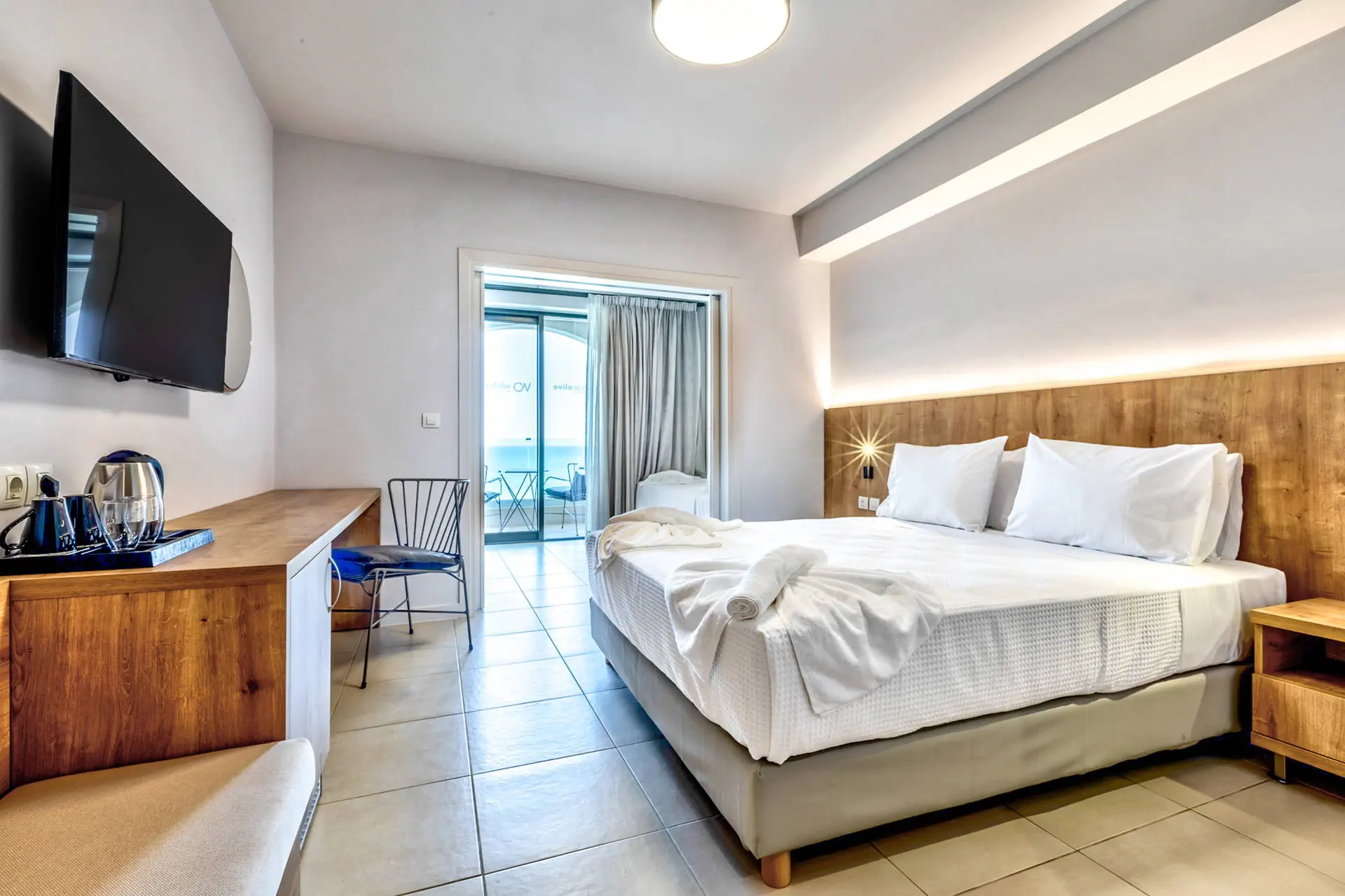 Położenie Odnowiony, świetnie utrzymany i zadbany hotel, który przeszedł gruntowny remont zimą 2020/2021.Obiekt położony jest w miejscowości Sfakaki.Hotel zlokalizowany jest ok. 9 km od centrum Rethymno, w którym znajdują się liczne restauracje, sklepy i dyskoteki. Przystanek autobusowy, z którego kursują autobusy do centrum miasta, znajduje się blisko hotelu (ok. 200 m). Do lotniska w Heraklionie ok. 72 km.Do lotniska w Chanii ok. 77 km. Plaża Plaża bezpośrednio przy hotelu. Kameralna, piaszczysto-żwirowa z łagodnym, kamienistym zejściem do morza. Parasole, leżaki i ręczniki plażowe dostępne bezpłatnie. Do dyspozycji gości Całodobowa recepcja, lobby, winda. Dwa baseny o powierzchni około 250 m2 i 150 m2, dwa brodziki dla dzieci, przy basenach bezpłatne parasole i leżaki. Restauracja główna, snack-bar przy basenie. Pozostałe informacje: sala konferencyjna, sklep. Pokoje Świeżo wyremontowany pięciopiętrowy hotel oferuje 70 komfortowo i nowocześnie urządzonych pokoi usytuowanych w budynku głównym. Pokoje są wyposażone w łazienkę (prysznic, suszarka do włosów, zestaw kosmetyków), klimatyzację, TV-sat, telefon, czajnik, sejf i lodówkę. Hotel oferuje: pokoje standardowe (część z widokiem na morze), duże pokoje rodzinne z dwoma sypialniami (część z widokiem na morze), obszerne pokoje typu junior suite (większość z widokiem na morze) oraz pokoje z bezpośrednim wyjściem na basen.Pokoje standardowe bez dopłaty do widoku na morze zlokalizowane są od strony ruchliwej drogi krajowej. Uwaga! Rezerwacje na pokoje rodzinne, które będą miały mniej niż 3 osoby - mogą być zamieniane na pokoje standardowe. Wyżywienie Rodzaje wyżywienia i posiłki: All Inclusive: śniadania, lunche i kolacje w formie bogatego bufetu. Restauracje: Restauracja główna - dania w formie bufetu (kuchnia międzynarodowa). Bary: Bar czynny w godzinach 10:00-23:00. Pozostałe informacje: Napoje bezalkoholowe: woda, soki, słodkie napoje typu cola, fanta, kawa, herbata. Napoje alkoholowe: lokalne piwo, wino, ouzo, wódka, gin, brandy, rum. Możliwość korzystania z All Inclusive od momentu przyjazdu do hotelu do momentu wyjazdu na lotnisko. Program sportowy i animacyjny Dla każdego: bezpłatna siłownia, konsola z zestawem gier. Dla dzieci: sala zabaw dla dzieci. Tylko dla dorosłych: nieduże centrum SPA. Za dodatkową opłatą: sucha sauna. Pozostałe informacje: dla dzieci nie ma miniklubu. Internet Bezpłatny dostęp do Wi-Fi w ogólnodostępnych miejscach w hotelu oraz w pokojach. Kategoria lokalna ***** Naszym zdaniem Należący do naszej własnej sieci hoteli - White Olive Elite Rethymno to miejsce, gdzie najlepiej możemy zadbać o naszych Klientów. Stworzyliśmy luksusowy kompleks gwarantujący komfortowy wypoczynek, błogi relaks oraz obsługę na wysokim poziomie. Strona www www.whiteolivehotels.com
