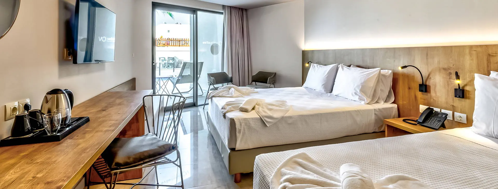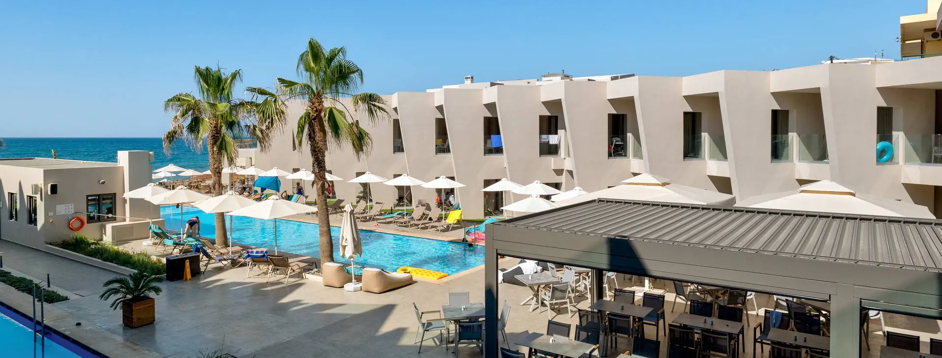 Położenie: Odnowiony, świetnie utrzymany i zadbany hotel, który przeszedł gruntowny remont zimą 2020/2021, położony w miejscowości Sfakaki, ok. 9 km od centrum Rethymno, w którym znajdują liczne restauracje, sklepy i dyskoteki. Przystanek autobusowy, z którego kursują autobusy do centrum miasta - znajduje się blisko hotelu (ok. 200 m). Lotnisko w Heraklionie oddalone jest od obiektu o ok. 70 km, a port lotniczy w Chanii o ok. 75 km. UWAGA! Cena nie obejmuje lokalnego podatku turystycznego w wysokości 4 EUR/pokój/dzień. Podatek jest obligatoryjny i płatny bezpośrednio w recepcji, przed zakwaterowaniem Klientów w hotelu. Plaża: Kameralna, piaszczysto-żwirowa plaża znajduje się bezpośrednio przy hotelu. Łagodne, kamieniste zejście do morza. Parasole, leżaki i ręczniki plażowe - bezpłatnie. Do dyspozycji gości: Całodobowa recepcja, lobby, winda, restauracja główna – dania w formie bufetu (kuchnia międzynarodowa), snack-bar przy basenie, dwa baseny o pow. ok. 250 m2 i 150 m2, dwa brodziki dla dzieci (przy basenach bezpłatne parasole i leżaki). Ponadto sala zabaw dla dzieci, nieduże centrum SPA, sauna, sala konferencyjna. Pokoje: Świeżo wyremontowany pięciopiętrowy hotel oferuje 70 komfortowo i nowocześnie urządzonych pokoi usytuowanych w budynku głównym. Pokoje są wyposażone w łazienkę (prysznic, suszarka do włosów, zestaw kosmetyków), klimatyzację, TV-sat, telefon, czajnik, sejf i lodówkę. Hotel oferuje: pokoje standardowe (część z widokiem na morze), duże pokoje rodzinne z dwoma sypialniami (część z widokiem na morze), obszerne pokoje typu junior suite (większość z widokiem na morze) oraz pokoje z bezpośrednim wyjściem na basen. Wyżywienie: All Inclusive: śniadania, lunche i kolacje w formie bogatego bufetu. Napoje bezalkoholowe - woda, soki, słodkie napoje typu cola, fanta, kawa, herbata oraz lokalne alkoholowe - piwo, wino, ouzo, wódka, gin, brandy, rum. Bar czynny w godzinach 10:00-23:00. Możliwość korzystania z All Inclusive od momentu przyjazdu do hotelu do momentu wyjazdu na lotnisko. Program sportowy i animacyjny: Bezpłatna siłownia i sucha sauna za dopłatą. Ponadto w hotelu dostępna jest również konsola z zestawem gier. Dla dzieci: miniklub. Internet: Bezpłatny dostęp do Wi-Fi w ogólnodostępnych miejscach w hotelu oraz w pokojach. Kategoria lokalna: ***** Strona www: