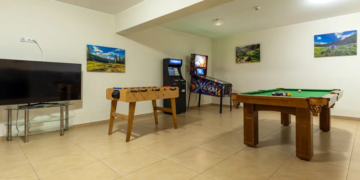 - Codzienne śniadanie w formie bufetu - Dostęp do basenu zewnętrznego (od 30 kwietnia) - Dostęp do sauny, jacuzzi, groty solnej - Dostęp do pokoju gier: bilard, piłkarzyki, flippery - Dostęp do sali zabaw i placu zabaw dla dzieci - Zniżki do Term Bania (informacja w recepcji obiektu) - Bezpłatny parking - Internet Wi-Fi - Podatek VAT