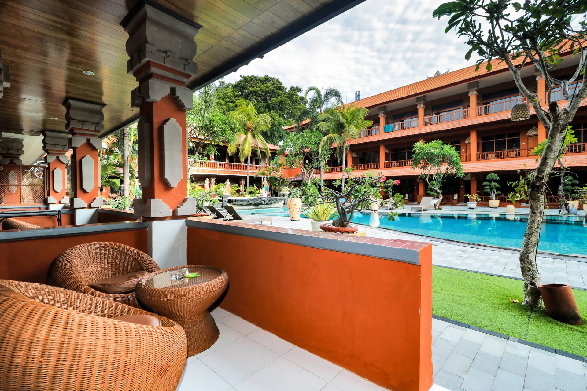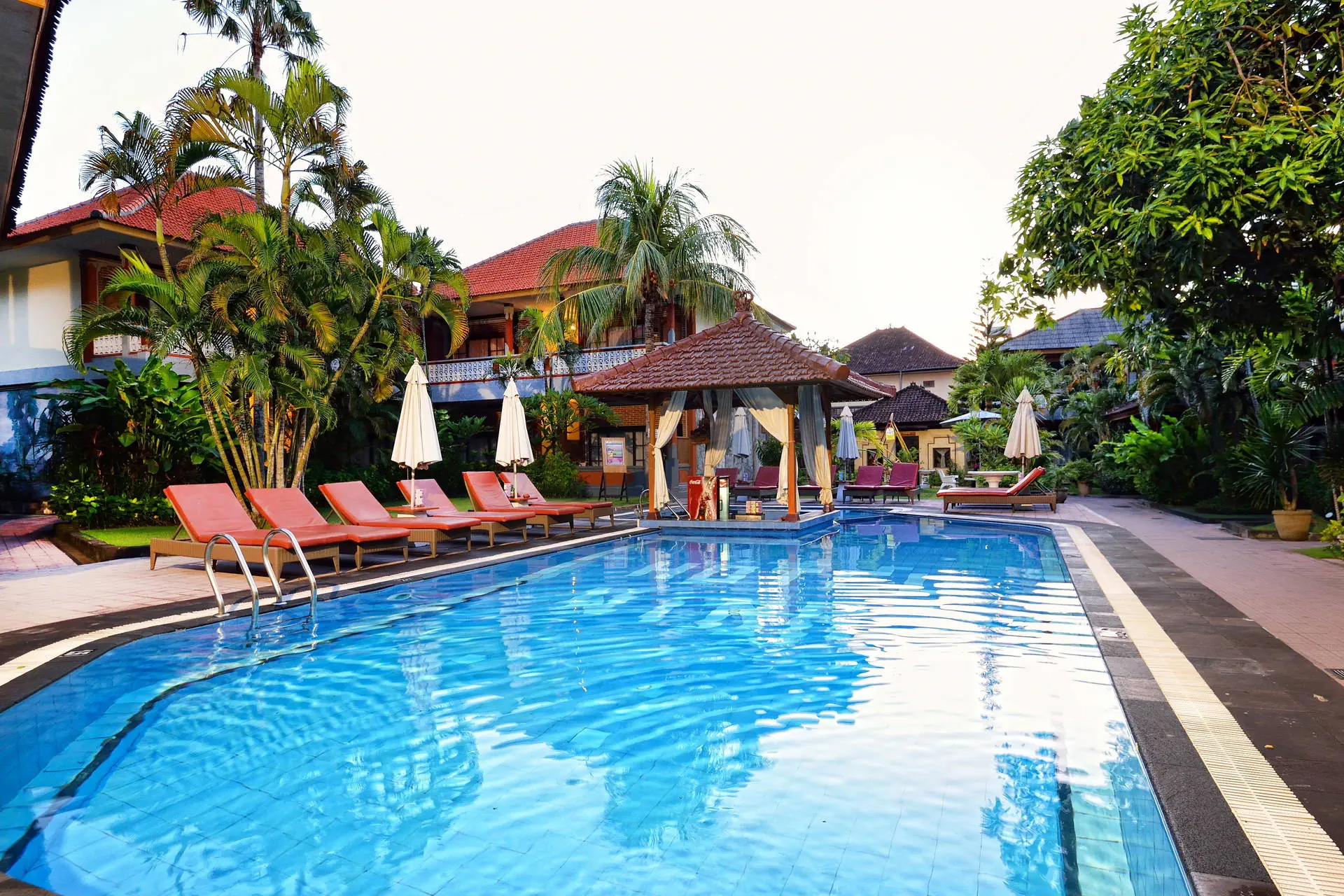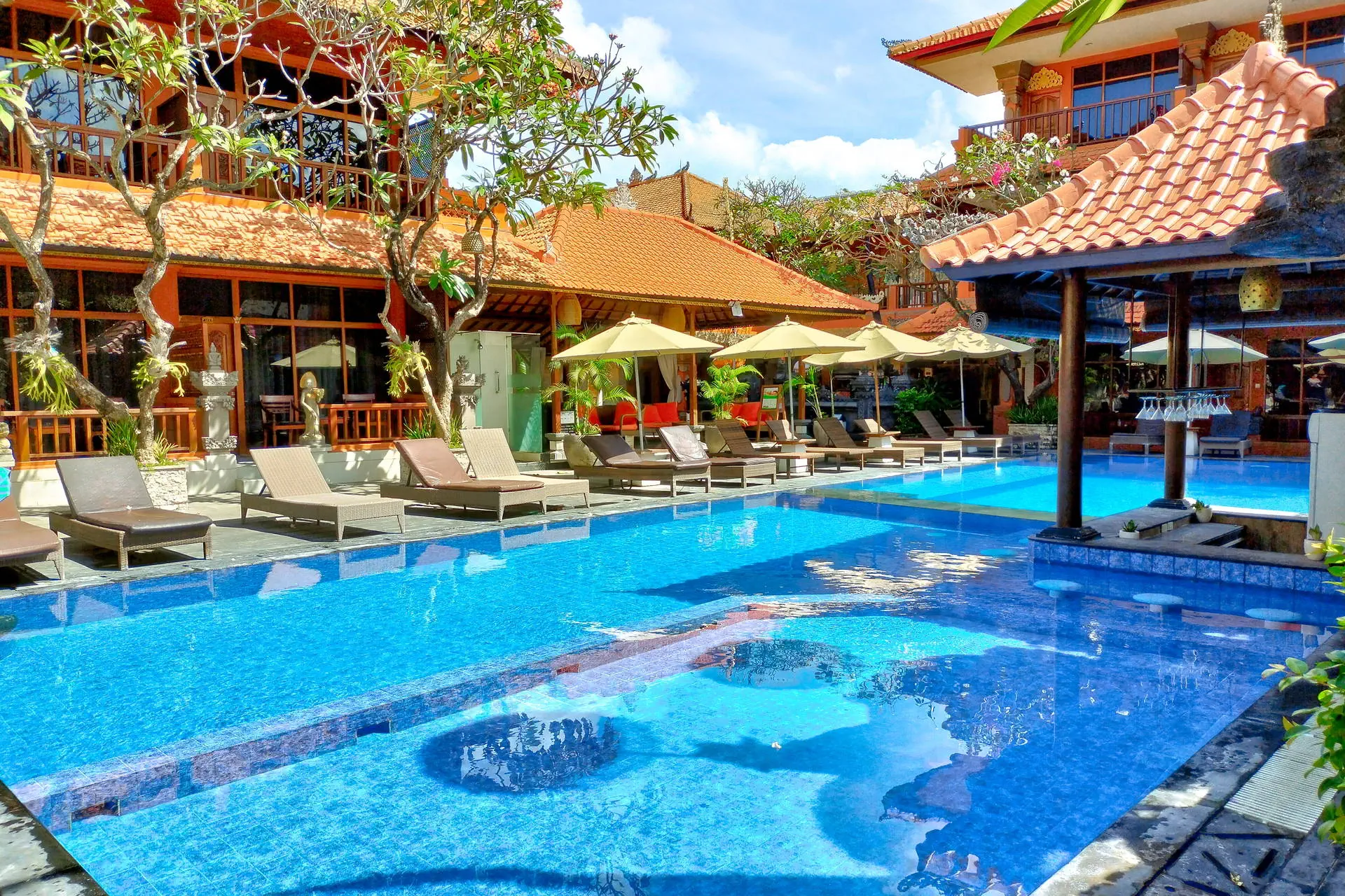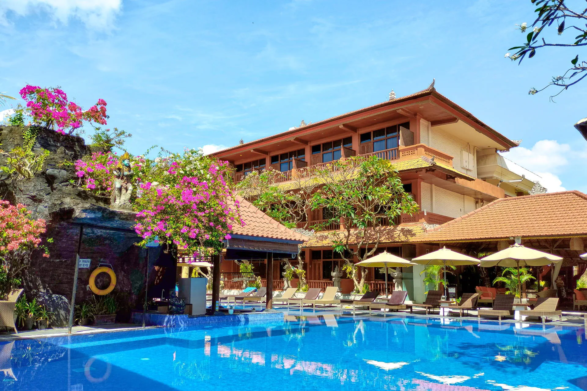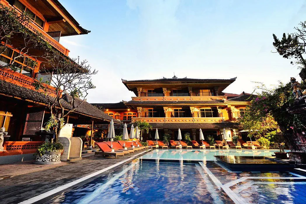 Do dyspozycji gości Całodobowa recepcja. 2 baseny zewnętrzne, 1 basen dla dzieci. Restauracje: restauracja, bar, bar przy basenie. Pozostałe informacje: centrum biznesowe, wypożyczalnia samochodów, wymiana walut, pralnia, bezpłatne transfery do przecznicy Legian oraz placu Kuta, punkt informacji turystycznej. Internet Bezpłatny Internet Wi-Fi we wszystkich pomieszczeniach hotelu. Kategoria lokalna *** Naszym zdaniem Hotel oferuje funkcjonalnie urządzone pokoje i przyjazną obsługę, co tworzy kameralną atmosferę. Położony blisko piaszczystej plaży, zapewnia łatwy dostęp do nadmorskich atrakcji. Otoczony starannie zagospodarowanym terenem z tropikalną roślinnością, jest doskonałym miejscem na relaksujący wypoczynek. Plaża Plaża Kuta Beach oddalona o około 200 metrów od hotelu. Słynna, szeroka, piaszczysta. Brak hotelowych leżaków i parasoli na plaży. Pokoje W obiekcie znajduje się 184 przytulnie urządzonych pokoi 2-osobowych z możliwością jednej dostawki. W każdym z nich jest łazienka (WC, prysznic/wanna), balkon/taras, indywidualnie sterowana klimatyzacja (bezpłatna), TV, telefon, mini bar, zestaw do przygotowania kawy lub herbaty, sejf (bezpłatny). Położenie Hotel o tradycyjnej, balijskiej architekturze zlokalizowany jest ok. 8 km od lotniska w Denpasar. Obiekt usytuowany jest w miejscowości Kuta, w południowej części Bali. Kuta jest jednym z najbardziej znanych kurortów na wyspie dzięki urozmaiconym i urokliwym restauracjom oraz licznym barom i dyskotekom. Program sportowy i animacyjny Siłownia i pokój gier. Płatne dodatkowo: SPA i salon piękności. Strona www Wyżywienie Rodzaje wyżywienia i posiłki: Śniadania w formie bufetu. Restauracje: Restauracja Lagenda Malaysian Food Garden serwująca potrawy kuchni malezyjskiej, indonezyjskiej oraz międzynarodowej. Mogą obowiązywać dodatkowe opłaty. Bary: Bar przy basenie: napoje i przekąski. The Beji Bar: napoje i przekąski.