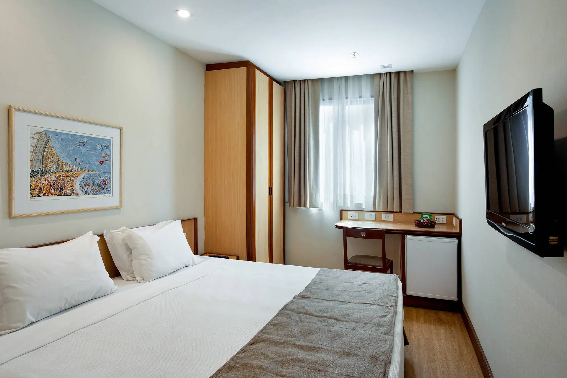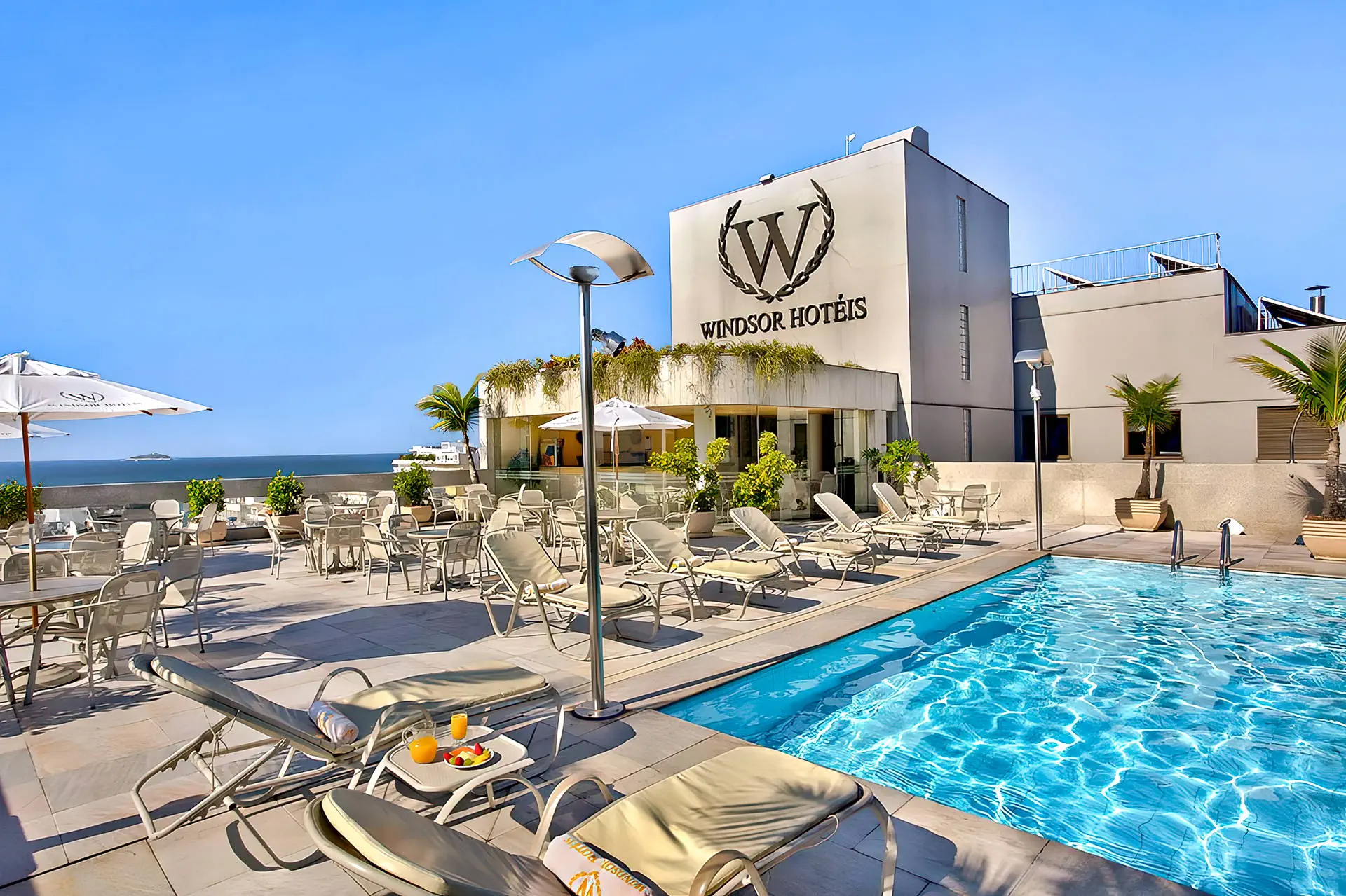 Położenie Transfer z lotniska trwa około 1 godzinę, a odległość wynosi ok. 30 km.Niedaleko znajduje się kolejka linowa na Górę Cukru. Obiekt położony jest w tętniącej życiem dzielnicy Rio de Janeiro – Copacabanie. W najbliższej okolicy znajdują się restauracje, bary, sklepy, dyskoteki i kluby. Plaża Odległość od hotelu wynosi 500 metrów (2 ulice). Piaszczysta, rozciągająca się na 4 kilometry wzdłuż wybrzeża plaża. Wiele barów plażowych, sklepików i kiosków. Do dyspozycji gości Recepcja dostępna dla Gości hotelu. 1 basen dostępny dla Gości hotelu, basen na dachu hotelu z widokami na Copacabanę, bar przy basenie. Restauracje: restauracja, bar przy basenie, bar w lobby. Pokoje Hotel oferuje zakwaterowanie w wygodnie urządzonych pokojach 2-osobowych z łazienką. Pokoje wyposażone są w telewizor, centralnie sterowaną klimatyzację, telefon, sejf, mini bar (dodatkowo płatny) oraz suszarkę. Wyżywienie Rodzaje wyżywienia i posiłki: Śniadania w postaci bufetu – wybór spośród brazylijskich jak i międzynarodowych dań. Możliwość wykupienia dodatkowo obiadokolacji (napoje dodatkowo płatne) w formie à la carte lub bufetu. Program sportowy i animacyjny Dla każdego: sauna oraz centrum fitness z siłownią. Internet Bezprzewodowa sieć wifi dostępna na terenie całego hotelu (również w pokojach). Kategoria lokalna W Brazylii nie istnieje oficjalna kategoryzacja hoteli. Naszym zdaniem Polecamy hotel Windsor Plaza ponieważ nasi klienci mieli okazję wielokrotnie z niego korzystać na innych imprezach. Znana marka zabezpiecza obsługę na dobrym poziomie. Strona www windsorhoteis.com