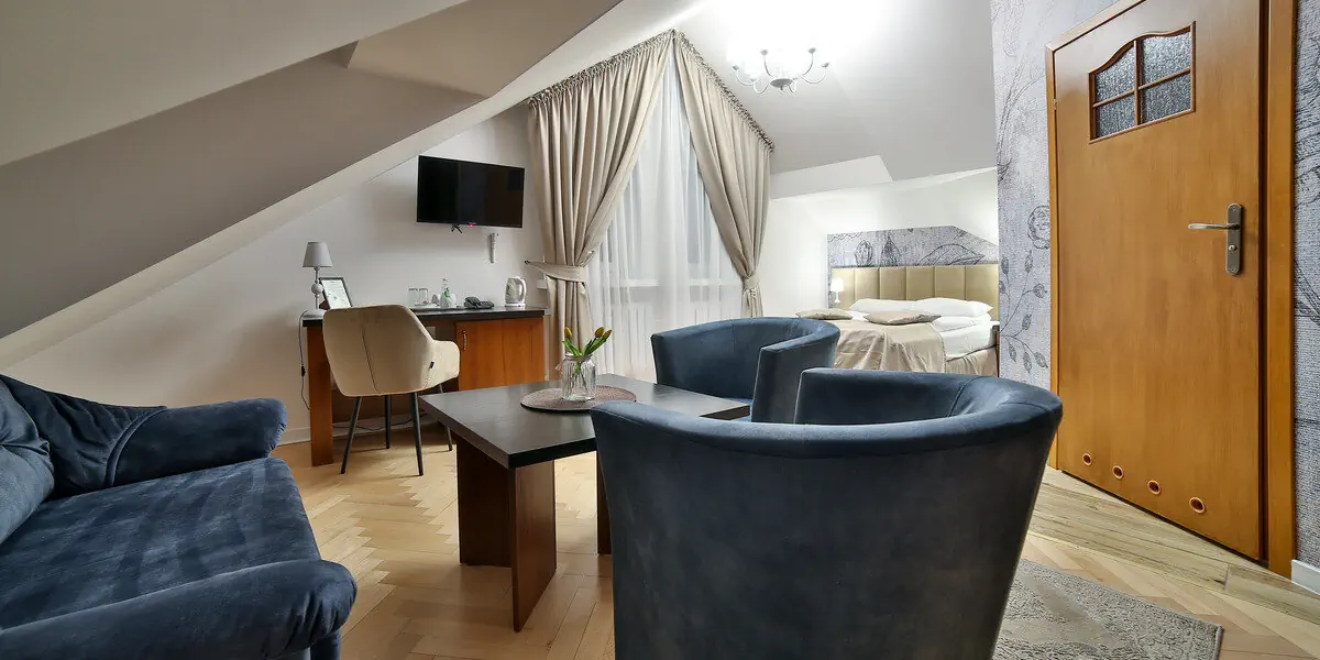 Komfortowy trzyosobowy apartament wyposażony w telewizor z płaskim ekranem, bezprzewodowy internet, czajnik bezprzewodowy i lodówkę. Każdy pokój dysponuje prywatną łazienką z kabiną prysznicową i suszarką do włosów.