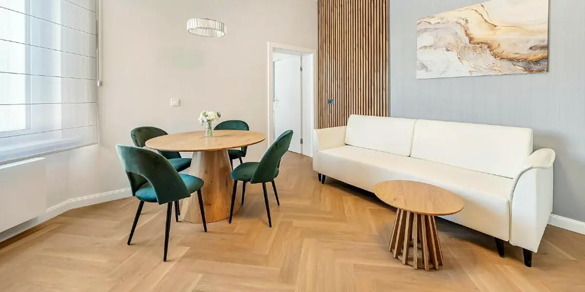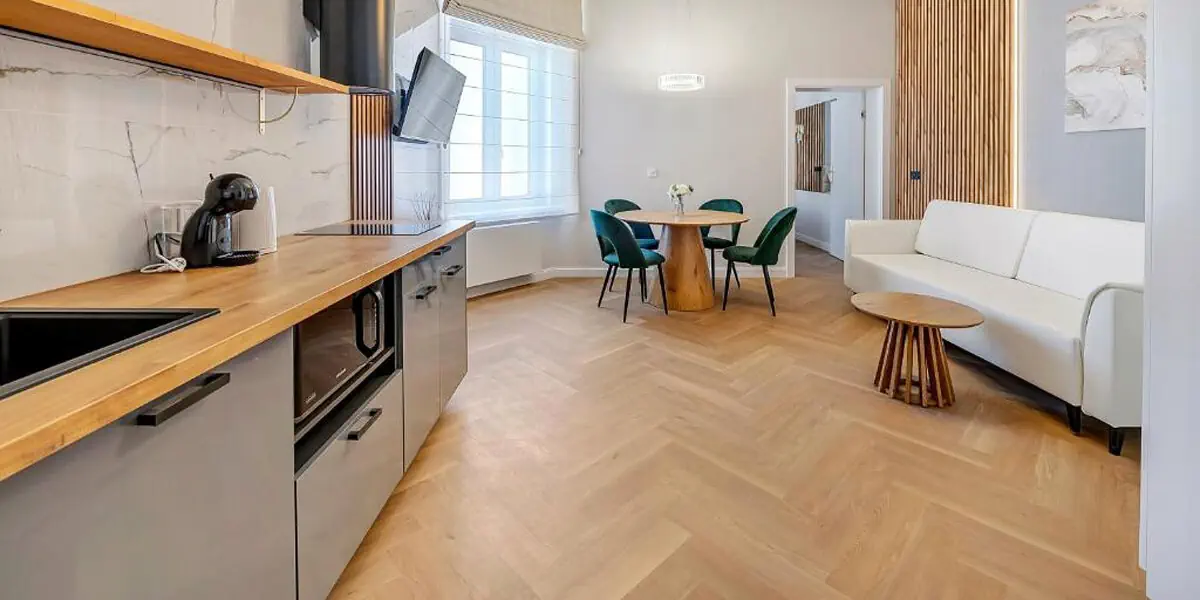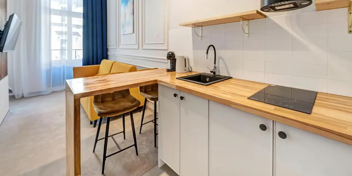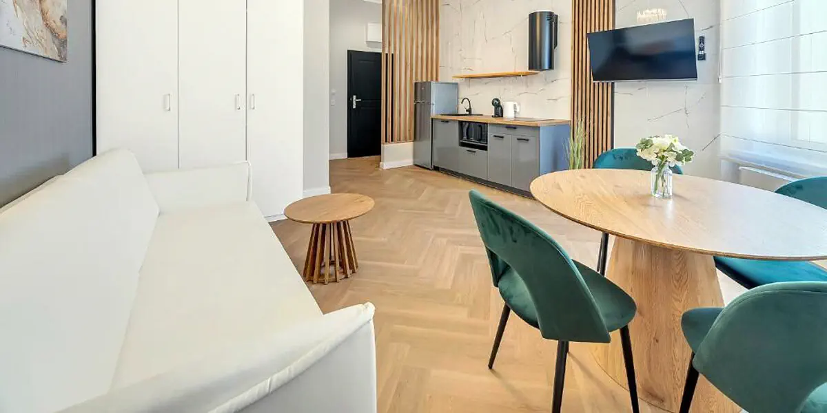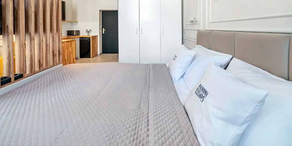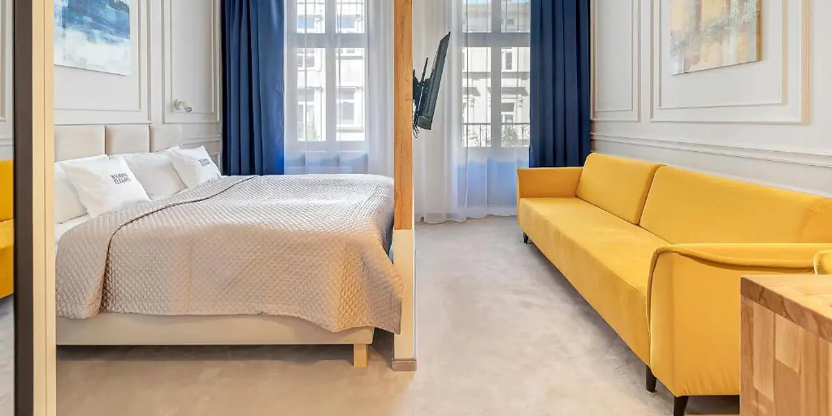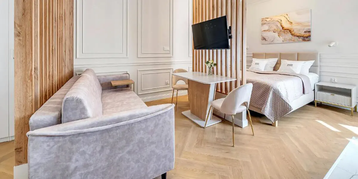 Ten nowoczesny i przytulny pokój w stylu art deco to idealne miejsce na relaks w sercu miasta. Studio posiada balkon, rozkładaną kanapę dla 2 osób i dodatkowo aneks kuchenny