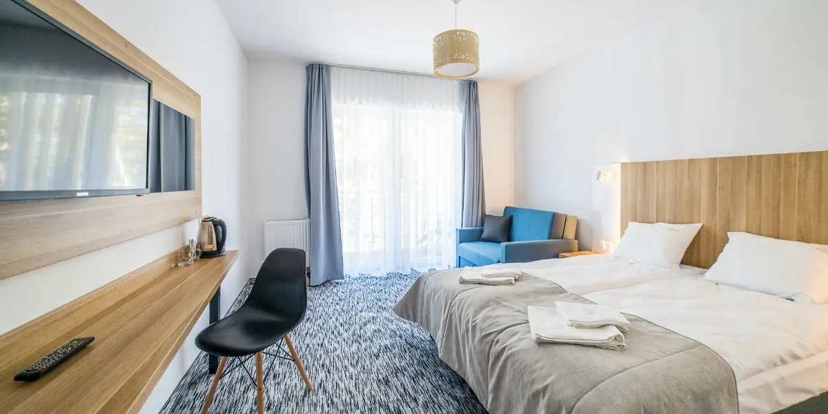 - Codzienne śniadanie w formie bufetu - Codzienna obiadokolacja - Nielimitowane korzystanie z basenu solankowego i jacuzzi (zgodnie z dostępnością) - Dla pobytów do 06.12.2025 wejście do komory normobarycznej co drugi dzień dla każdej z osób (2 godziny, jeden seans) - Dla pobytów powyżej 3 noclegów od 07.12.2025 wejście do komory normobarycznej raz na pobyt dla każdej z osób (2 godziny, jeden seans) - Wypożyczenie kijków nordic walking - Kącik i plac zabaw dla dzieci - Podatek VAT - Internet Wi-Fi