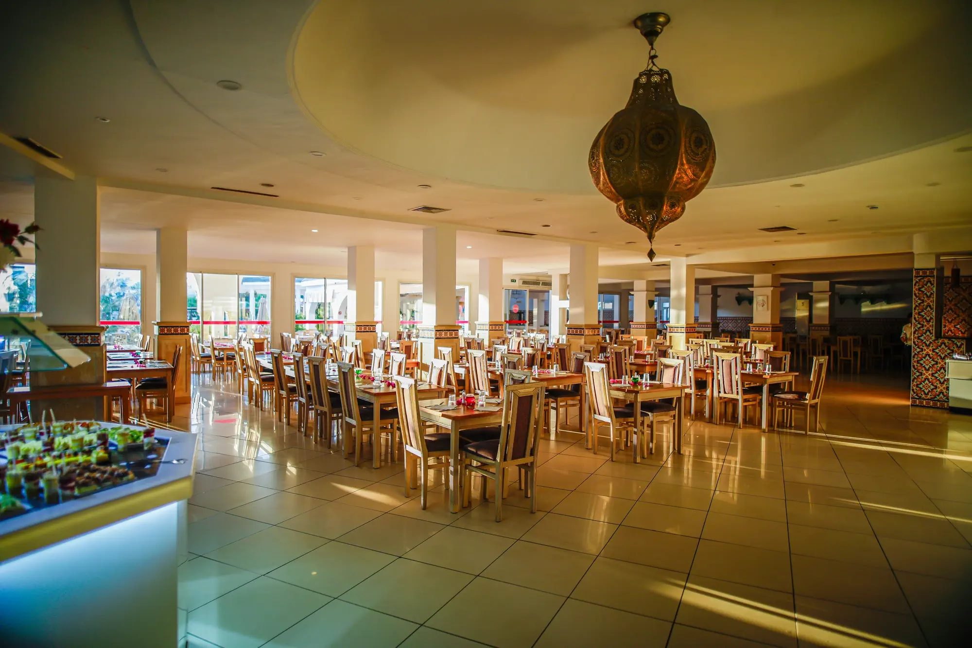 Śniadanie (07:00 - 10:00) - Main Restaurant, stół szwedzki, Obiad (12:30 - 14:00) - Main Restaurant, stół szwedzki, Kolacja (19:00 - 21:00) - Main Restaurant, stół szwedzki, Lobby Bar (10:00 - 23:00), Napoje: alkohole lokalne (10:00 - 23:00), Pool Snack-Bar (15:00 - 17:30), Napoje: alkohole lokalne (15:00 - 17:30), napoje bezalkoholowe, alkohole lokalne, wybrane alkohole importowane ¹⁾, lody ¹⁾ - dodatkowo płatne