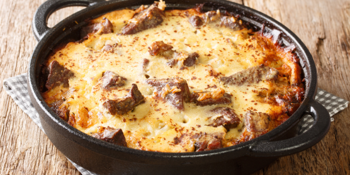 Musaka to jedno z najbardziej znanych i lubianych dań kuchni bałkańskiej, szczególnie popularne w Albanii, Grecji i innych krajach tego regionu. Jest to warstwowa zapiekanka, która łączy w sobie bogate smaki i aromaty, tworząc bardzo sycącą potrawę. Podstawą dania są plastry bakłażana, przekładane mieszanką mielonego mięsa, podsmażonego z cebulą, czosnkiem i przyprawami. Na wierzchu znajduje się kremowy sos beszamelowy, który tworzy złocistą i lekko chrupiącą skórkę po upieczeniu. To danie jest nie tylko pyszne, ale także niezwykle sycące i doskonałe na chłodniejsze dni. Musaka to prawdziwa klasyka kuchni bałkańskiej, która zachwyca zarówno wyglądem, jak i smakiem, będąc doskonałym przykładem, jak proste składniki mogą stworzyć coś wyjątkowego.