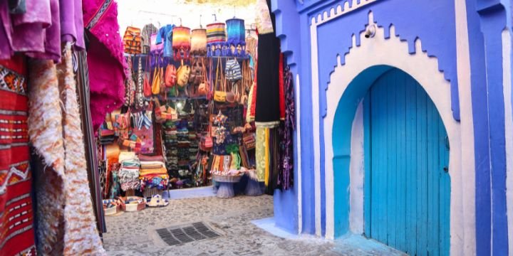 Szafszawan to jedno z najlepszych miejsc w Maroku na spokojne, autentyczne zakupy. W przeciwieństwie do zgiełku Marrakeszu czy Fezu, handel tutaj ma bardziej przyjazny charakter – sprzedawcy nie są nachalni, a większość produktów powstaje lokalnie, często w małych rodzinnych warsztatach.